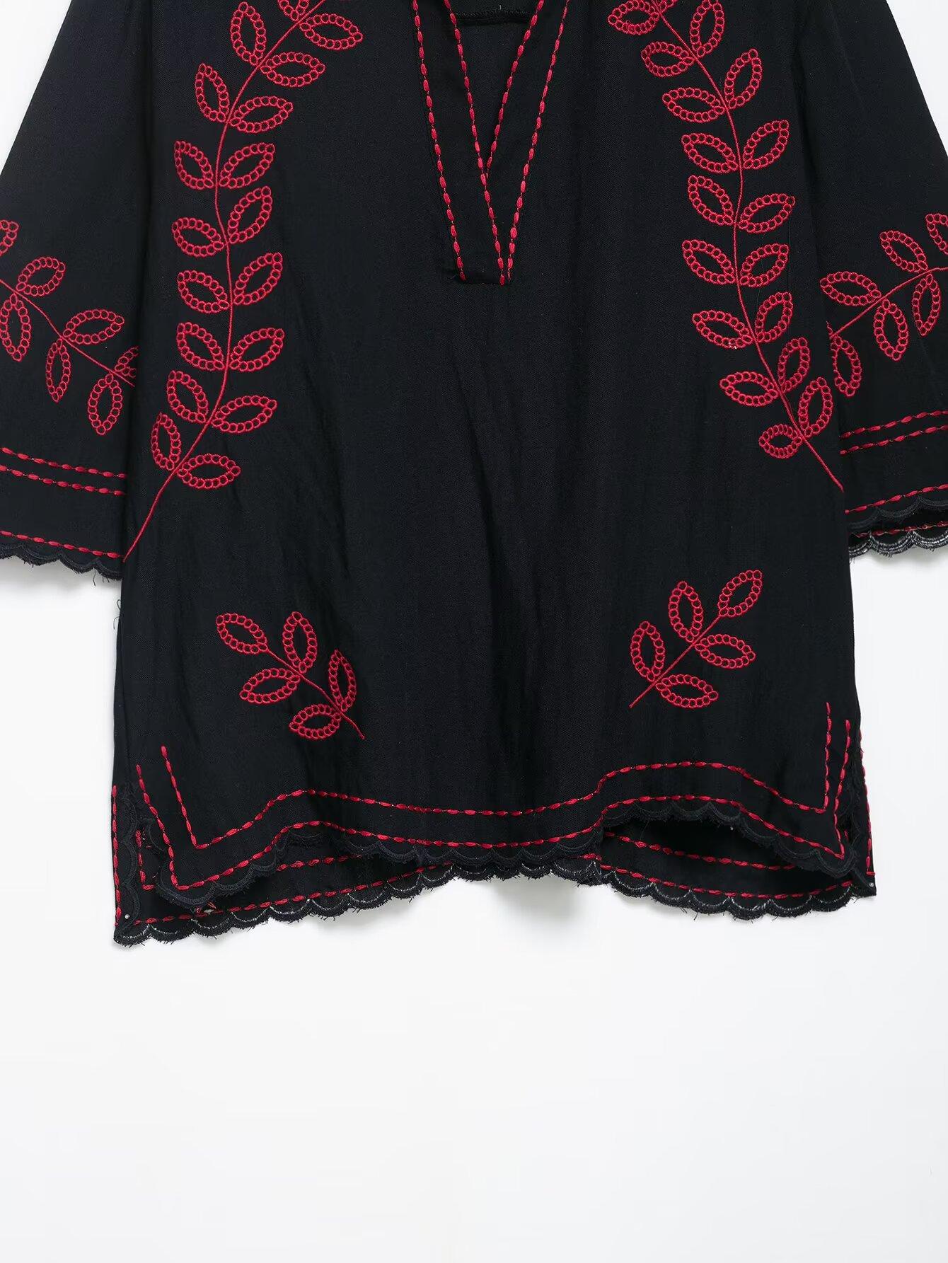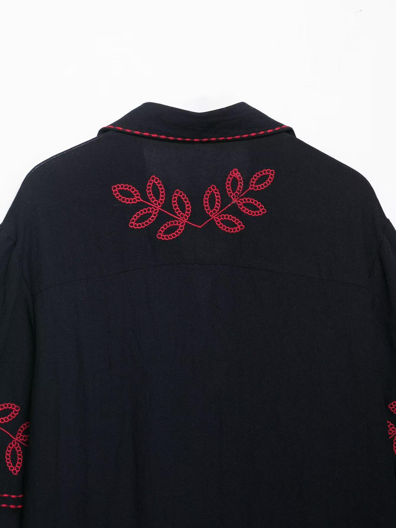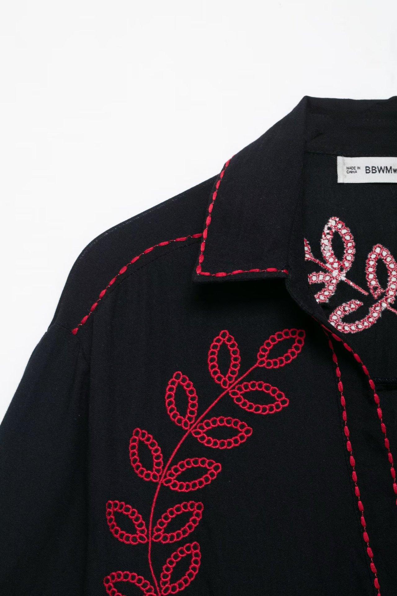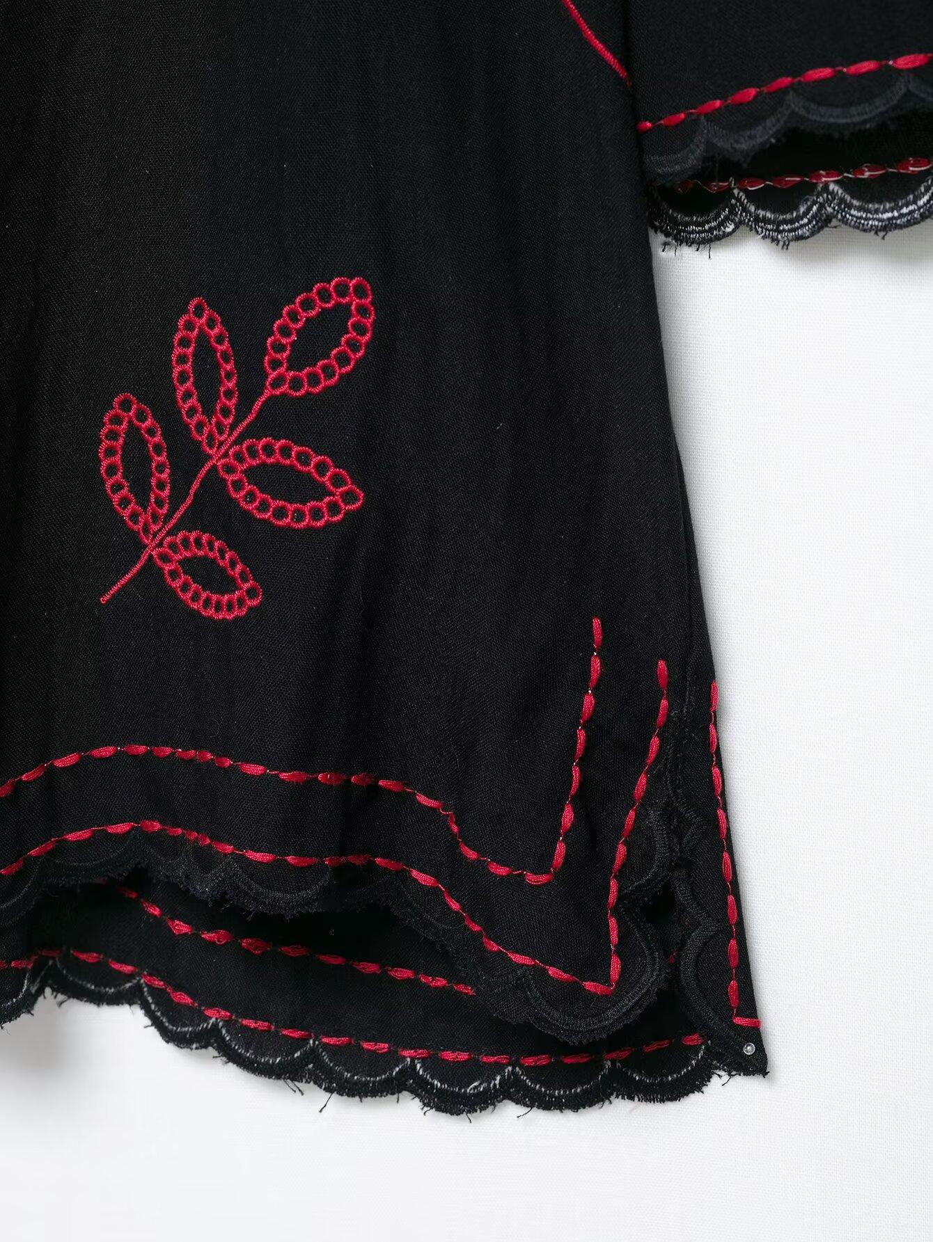 Venta al por mayor de comercio exterior transfronterizo 2025 Verano Estilo europeo y americano Camisa de encaje calado de solapa bordada holgada de manga corta para mujer