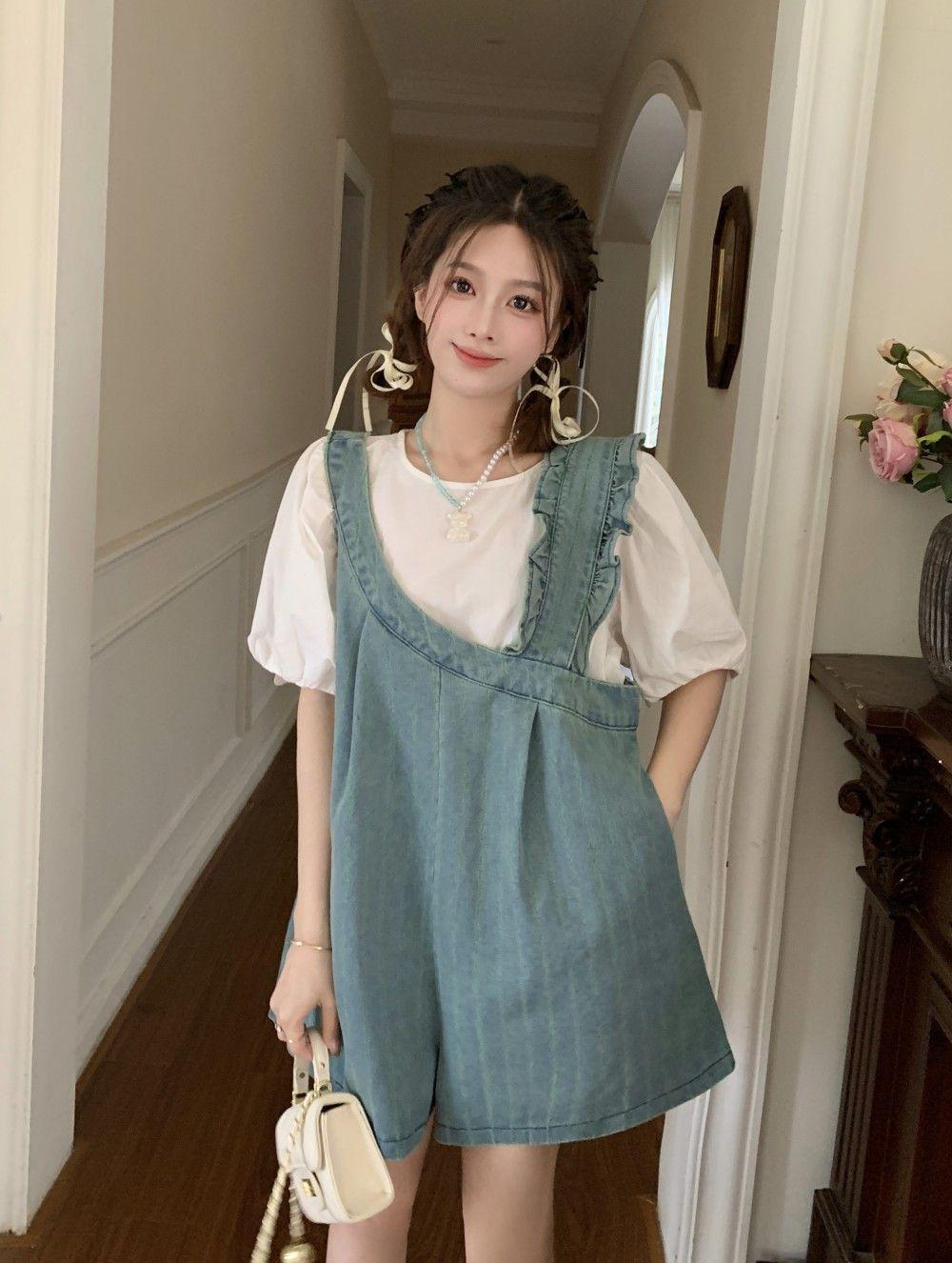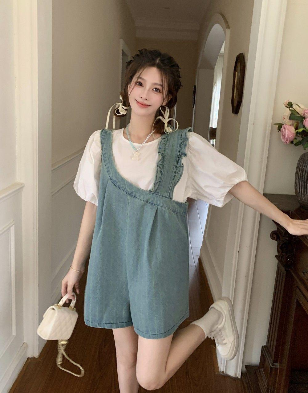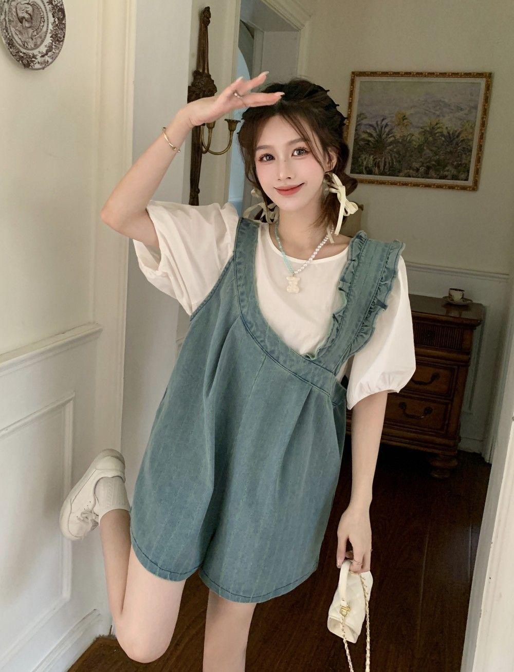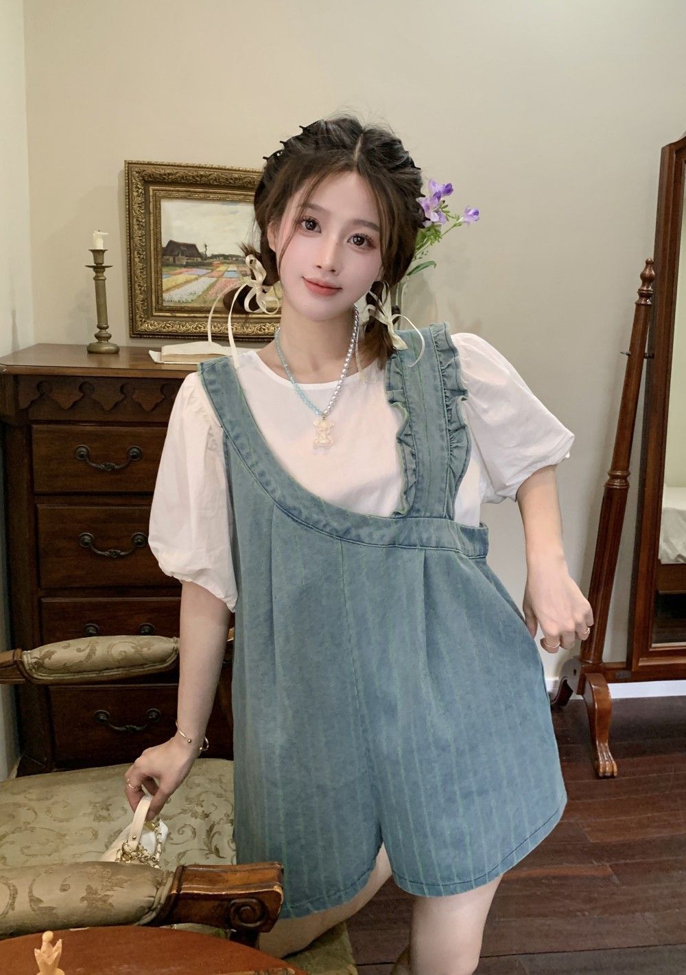 White top [huaduoduo selection] good quality, Denim overalls [huaduoduo selection] good quality, Top + overalls