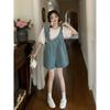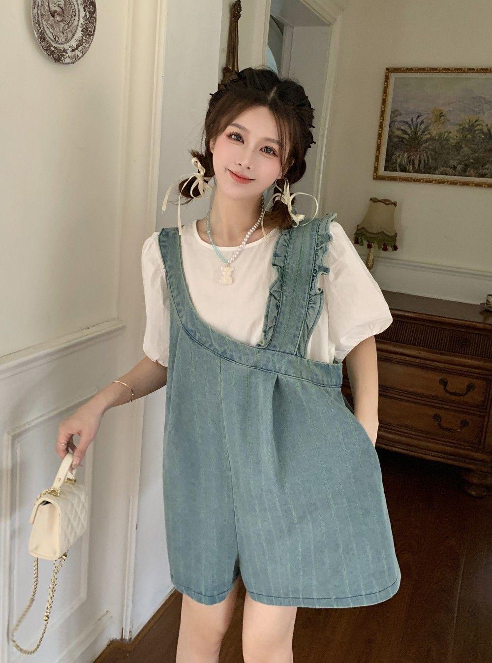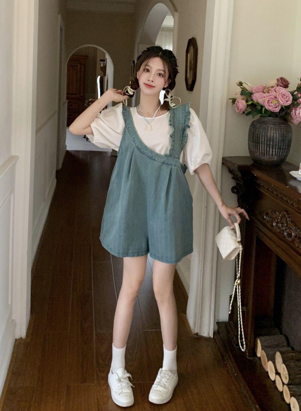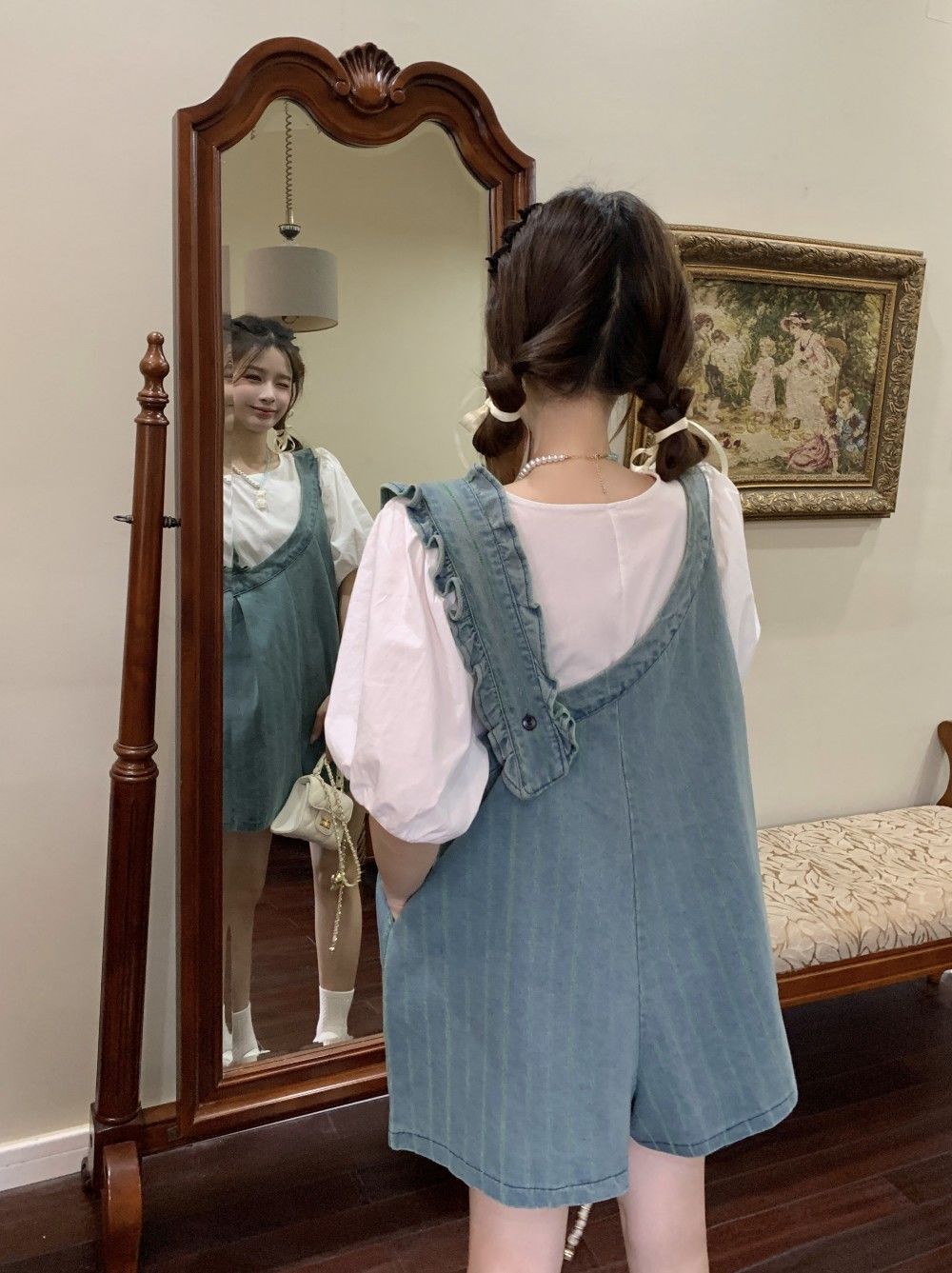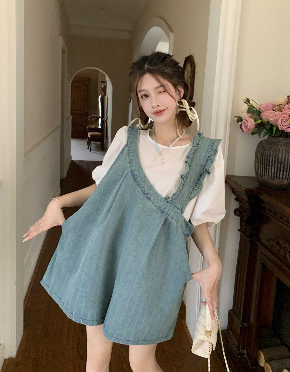 White top [huaduoduo selection] good quality, Denim overalls [huaduoduo selection] good quality, Top + overalls