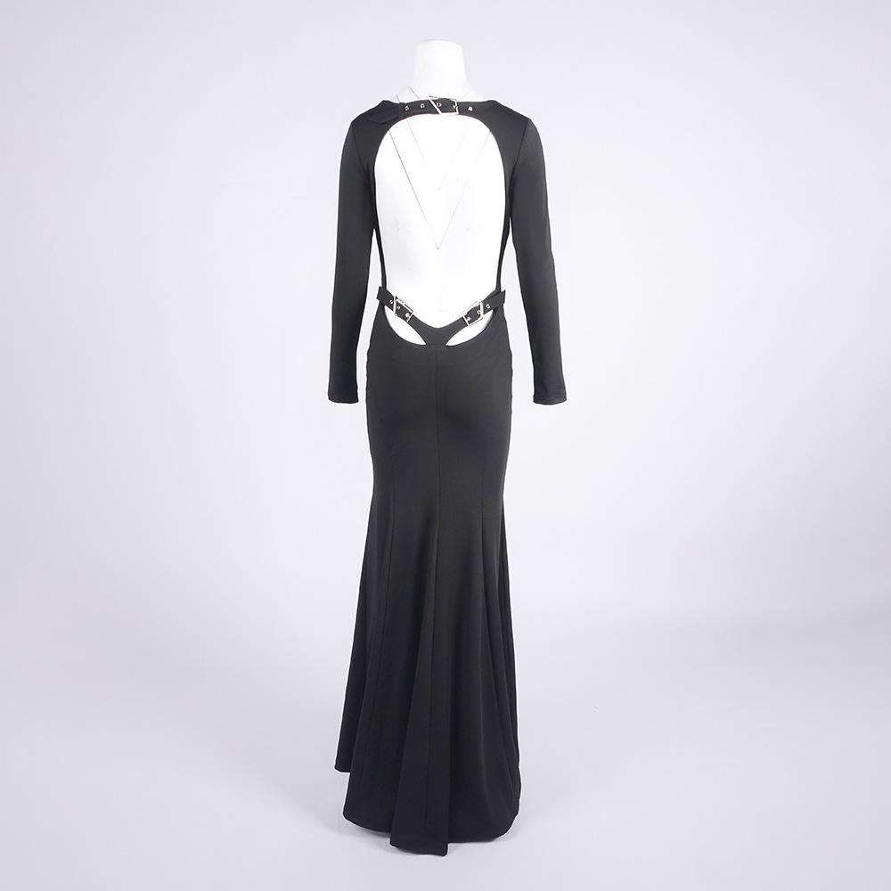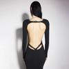 Ropa Europea y Americana Wish Nuevo Verano Sexy Manga Larga Espalda Descubierta Cordones Falda a la Cadera Elástico Metal Decorativo Vestido