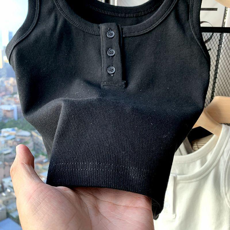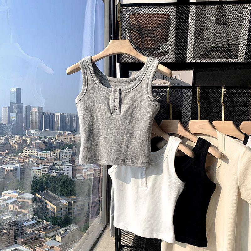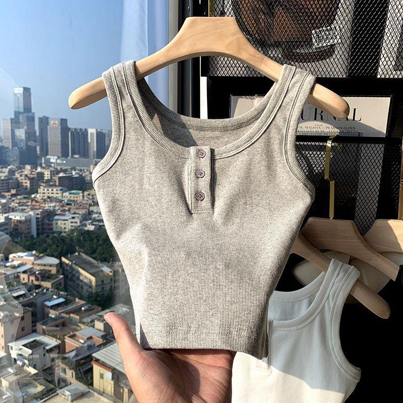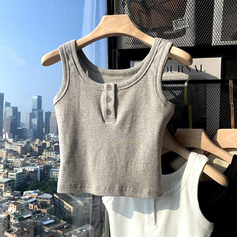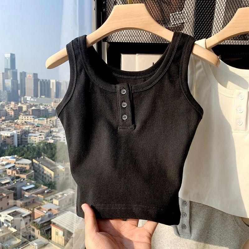 Camisola de Botones Nicho de Moda para Mujer, Estilo Dulce y Picante de Verano, Tank Top Corto Ajustado