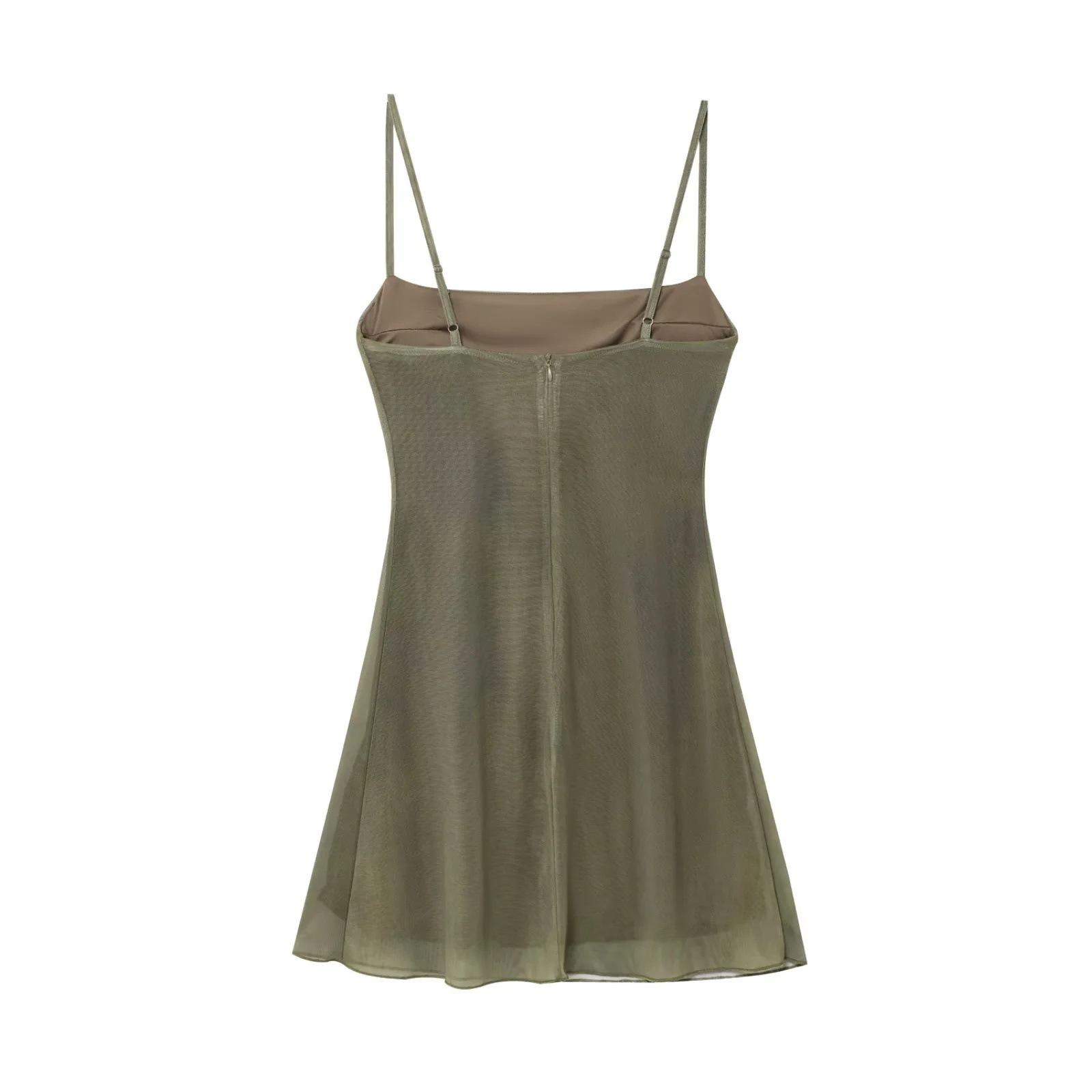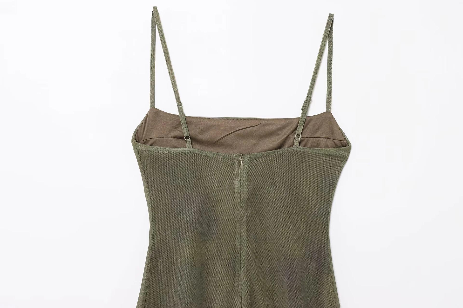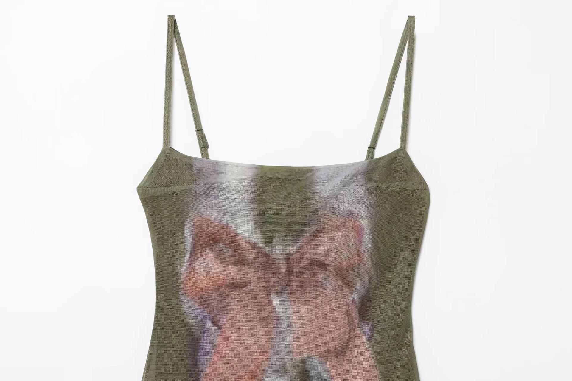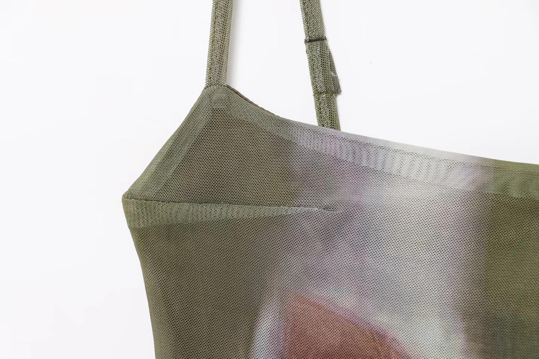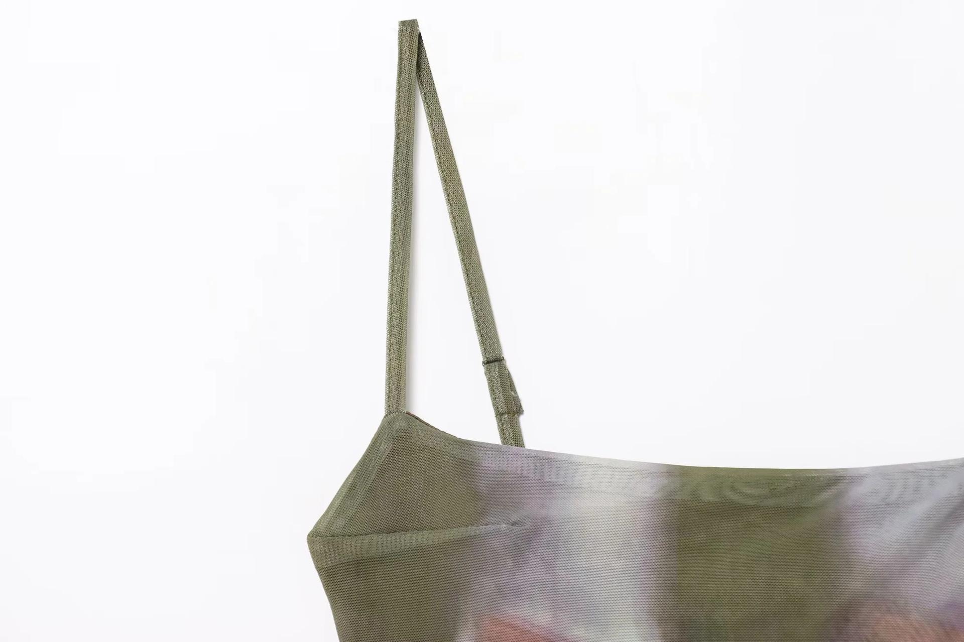 Estilo Europeo y Americano Sexy Hottie Retro Estampado de Lazo Vestido Falda con Tirantes Verano 2025 Falda de Malla Ajustada