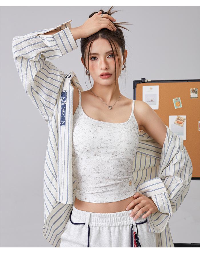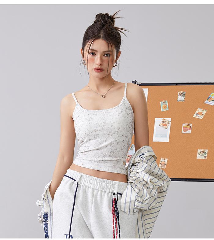 Camisola corta de estilo europeo y americano puro y sexy, nuevo top tie-dye para chica guapa, sexy, de ajuste ceñido, adelgazante, chaleco deportivo para mujer