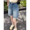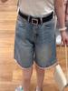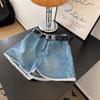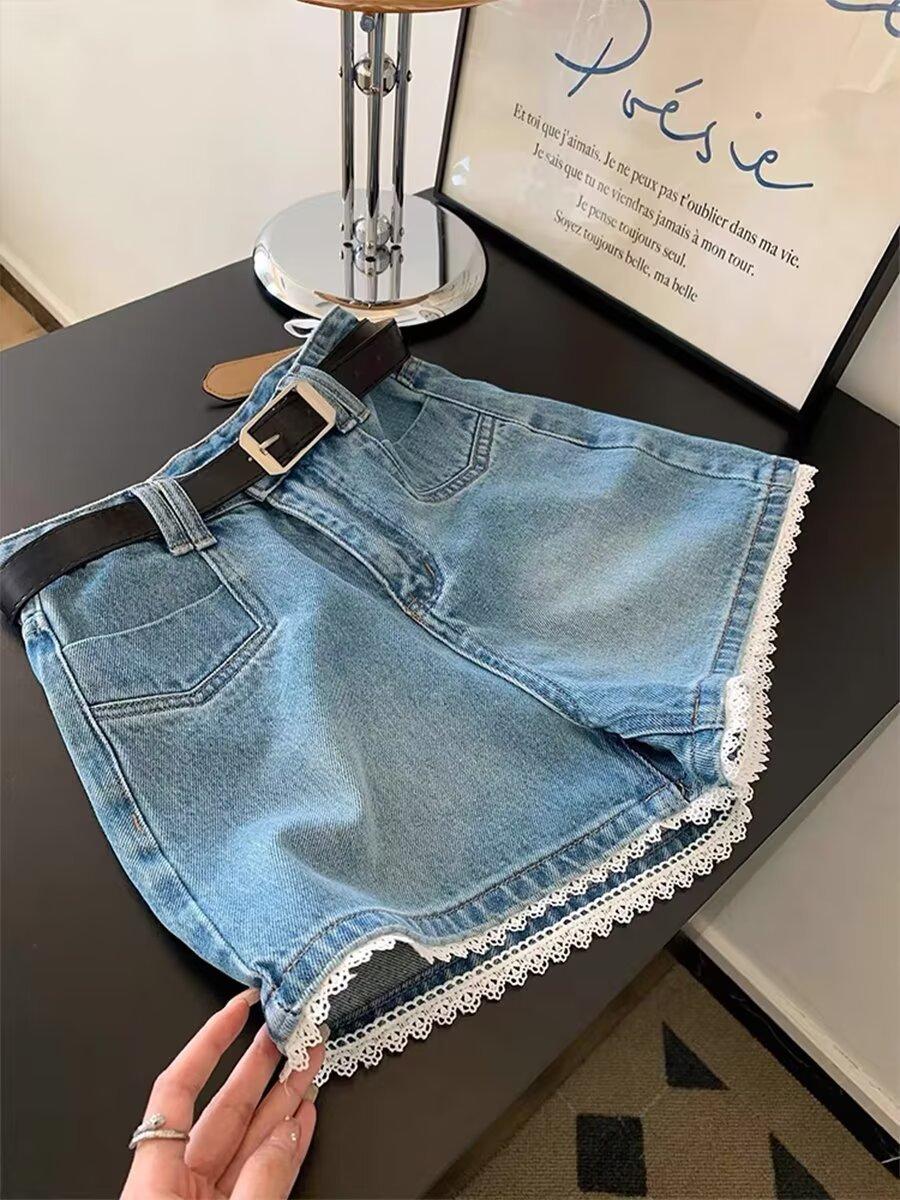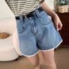 Shorts de mezclilla con encaje para mujer, Verano Delgados Estilo Europeo y Americano, Shorts holgados de pierna ancha corte A, Pantalones cortos adelgazantes para talla grande forma de pera