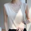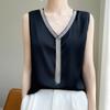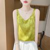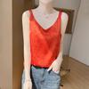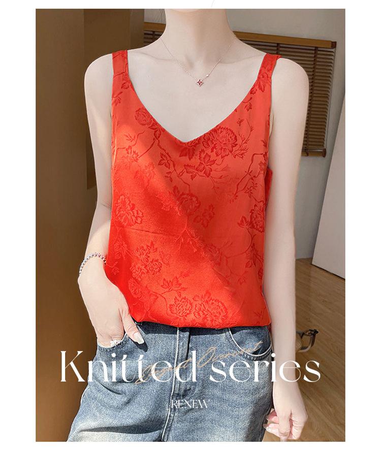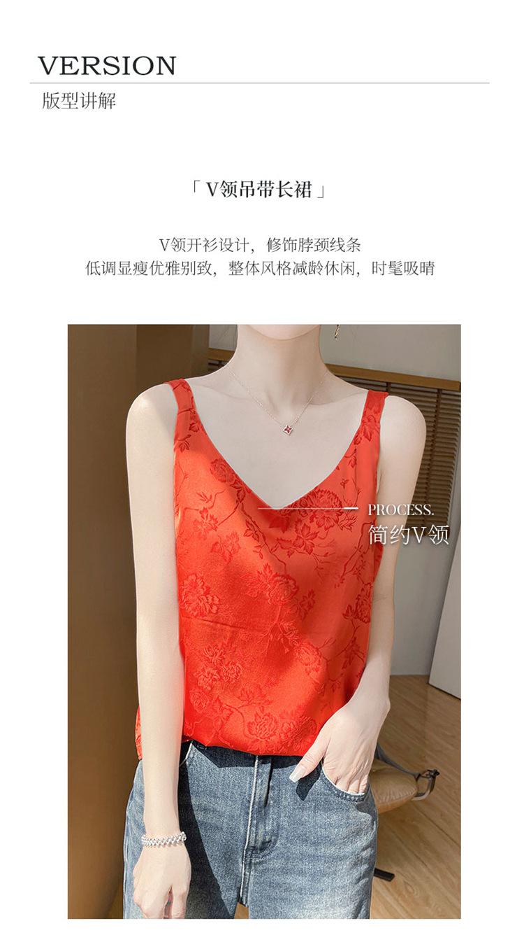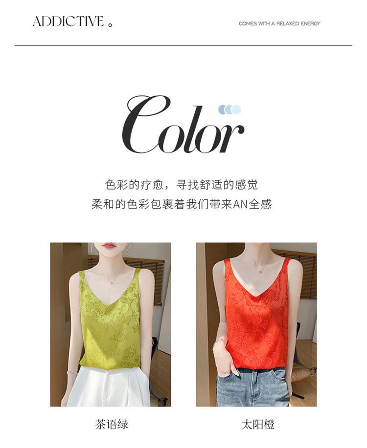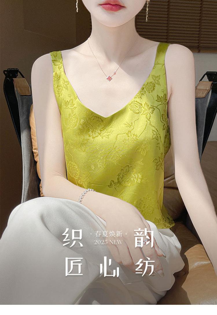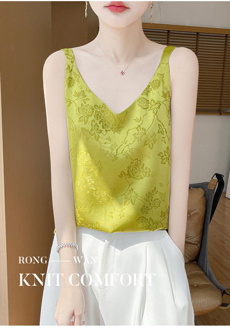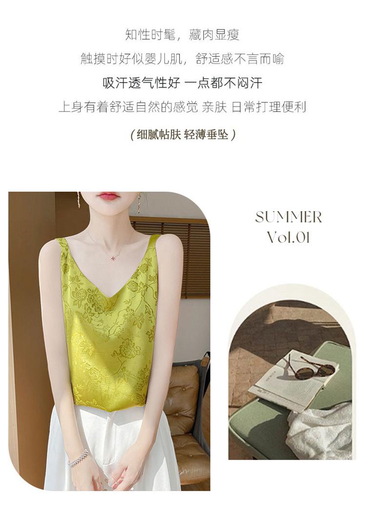 Verano Nuevo Cuello en V Satén Tirantes Traje de Mujer Chaleco de Seda Suelto Adelgazante Jacquard Top Base