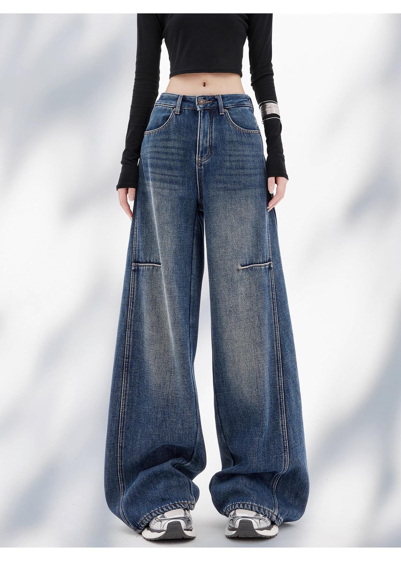 Jeans Retro de Pierna Ancha de Talla Grande para Mujer, Modernos, Versátiles, Nuevos, de Cintura Alta, Sueltos, Adelgazantes, Rectos, Pantalones Largos