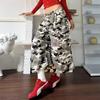 Pantalones Cargo de Mezclilla Cortos Retro Americanos con Camuflaje y Bolsillos Múltiples para Mujer, Diseño Recto Holgado de Verano, Pantalones de Pierna Ancha de Largo Medio