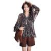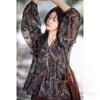 Camisa de Verano de Alta Gama Ligera de Lujo Reductora de Edad Estilo Occidental Romántica Retro Floral de Chifón Protección Solar para Mujer