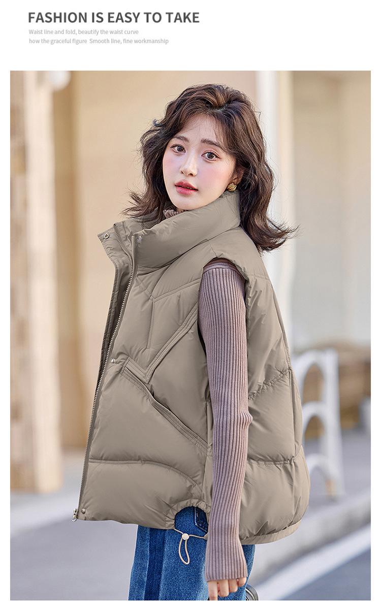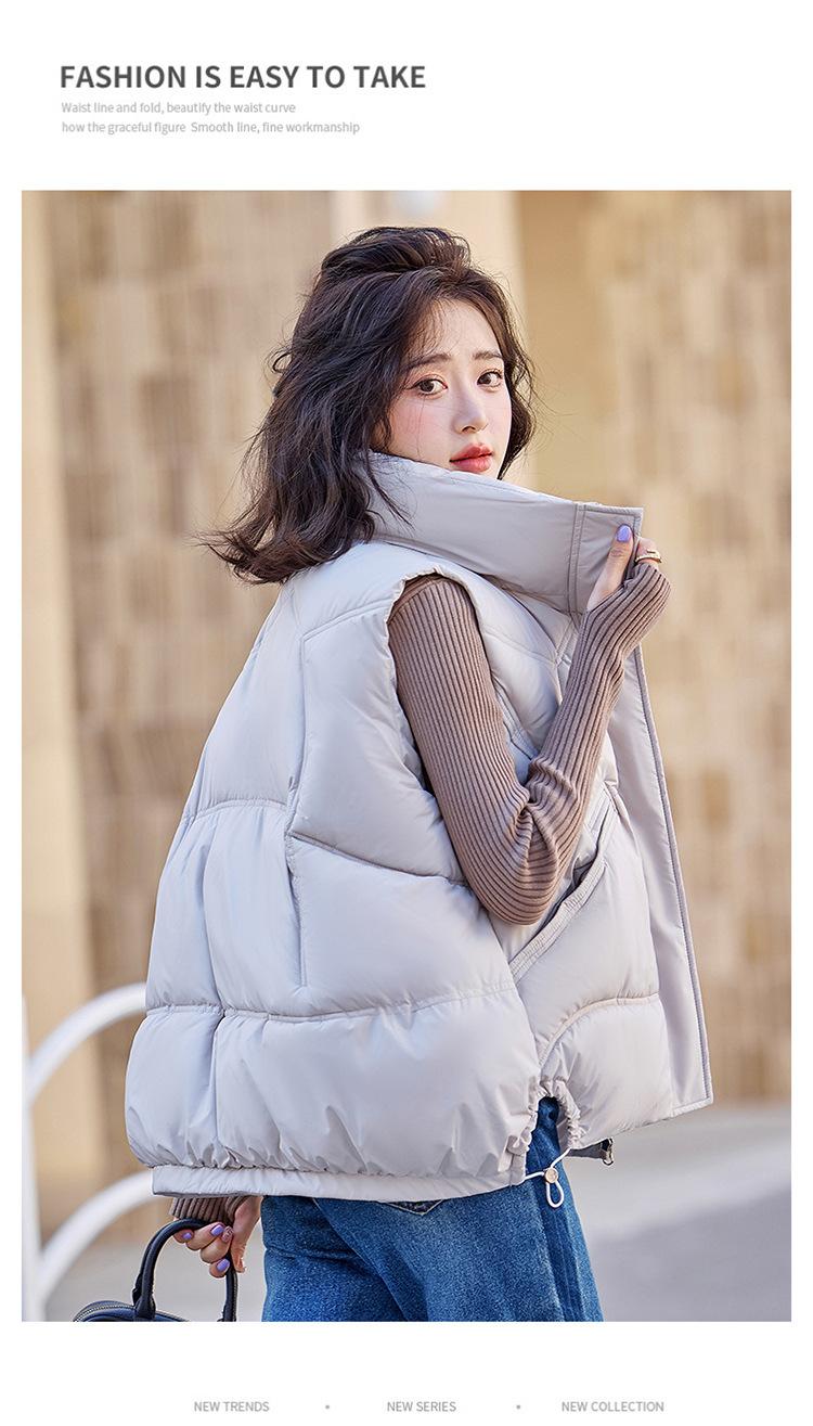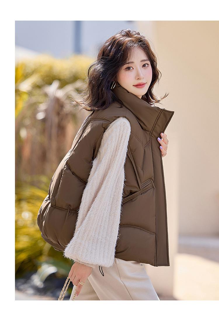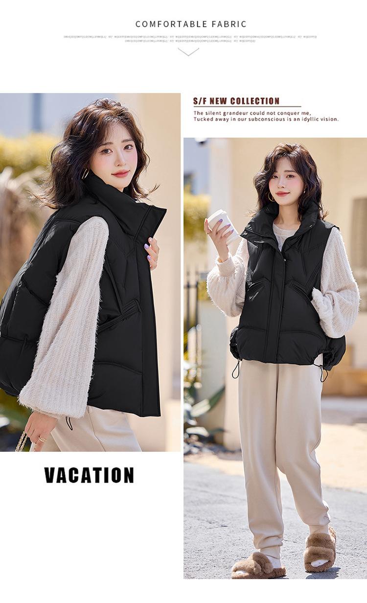 Chaleco de Algodón Nuevo para Invierno 2024 para Mujer con Cuello Alto, Chaleco Cálido sin Mangas a la Moda para Exterior