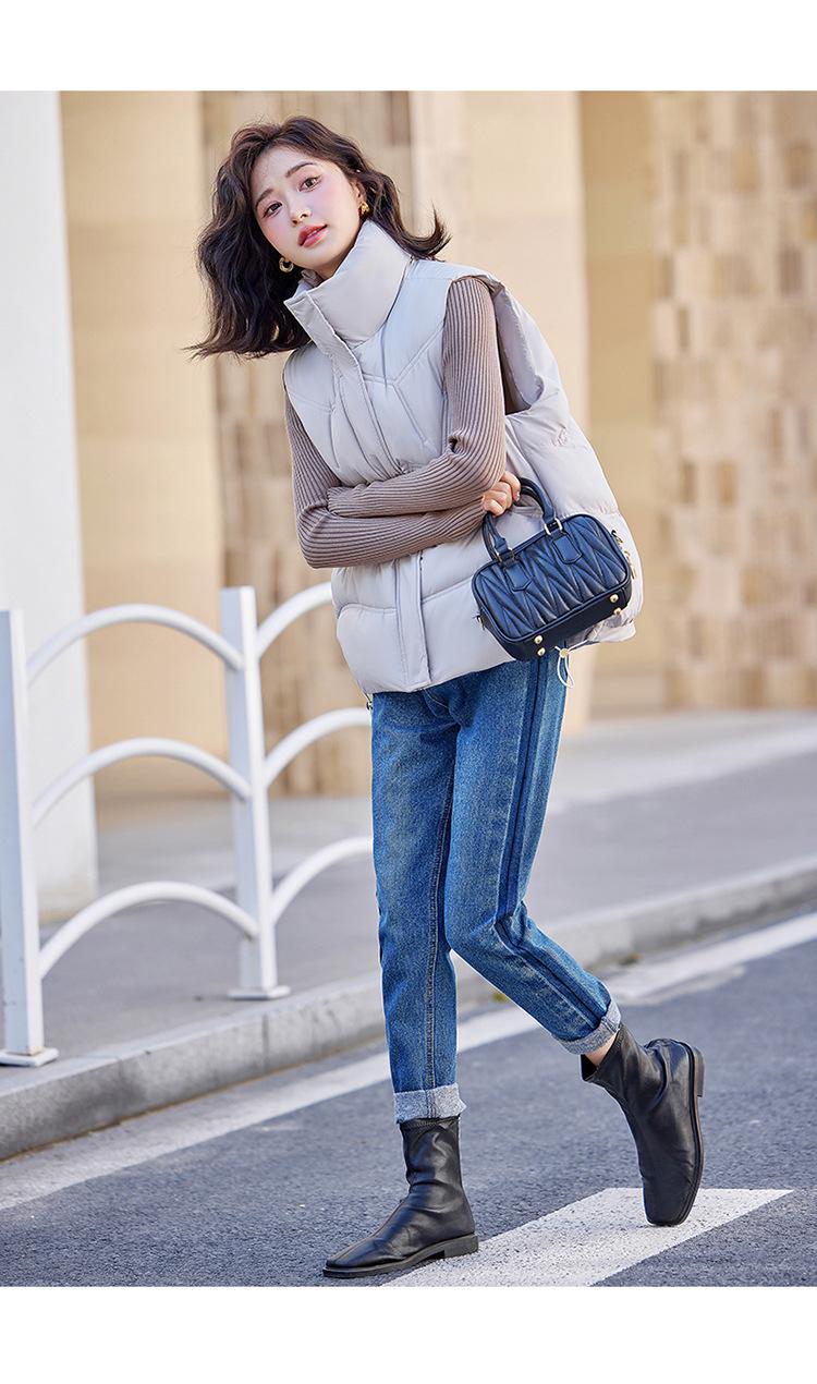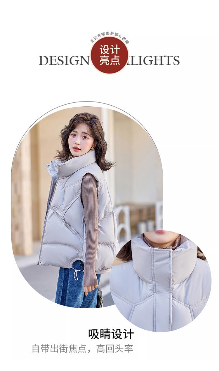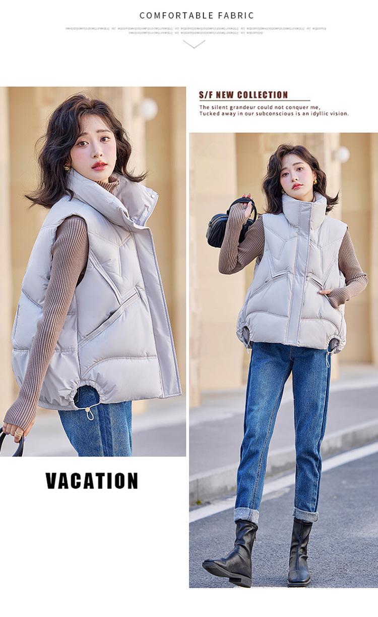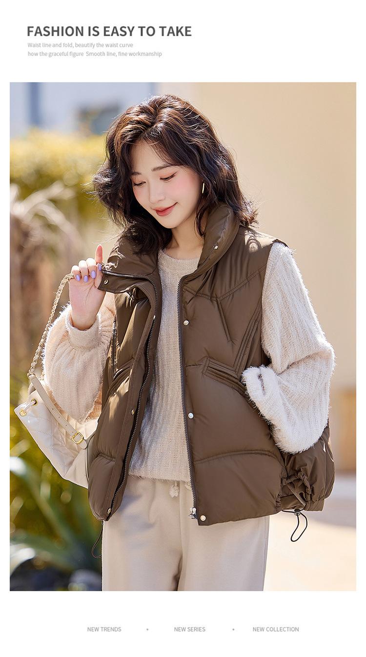 Chaleco de Algodón Nuevo para Invierno 2024 para Mujer con Cuello Alto, Chaleco Cálido sin Mangas a la Moda para Exterior