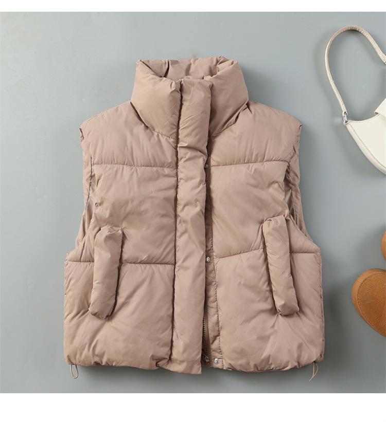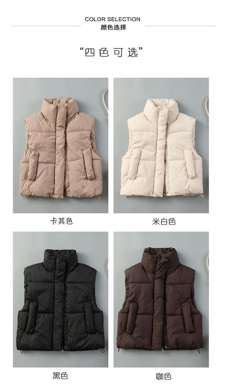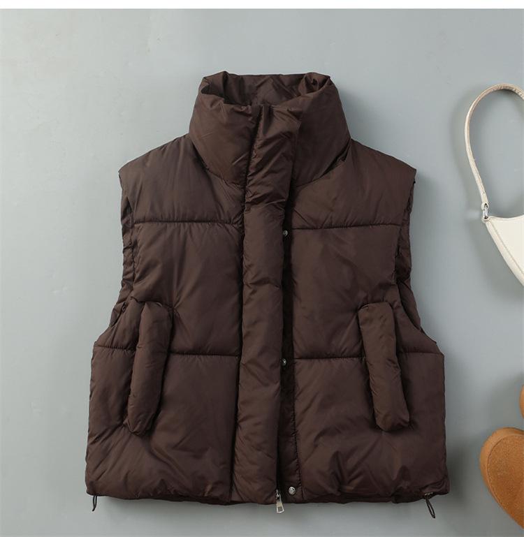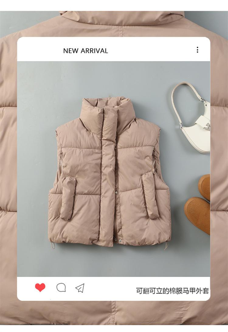 Chaleco Corto de Algodón Plumón con Cuello Alto 2024 Otoño e Invierno Nuevo Chaleco de Algodón Casual Engrosado de Estilo Coreano Holgado
