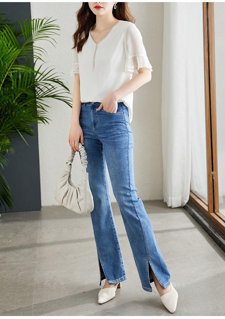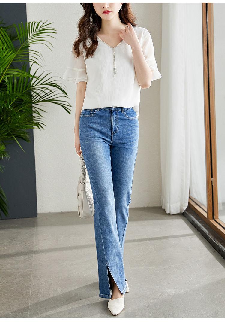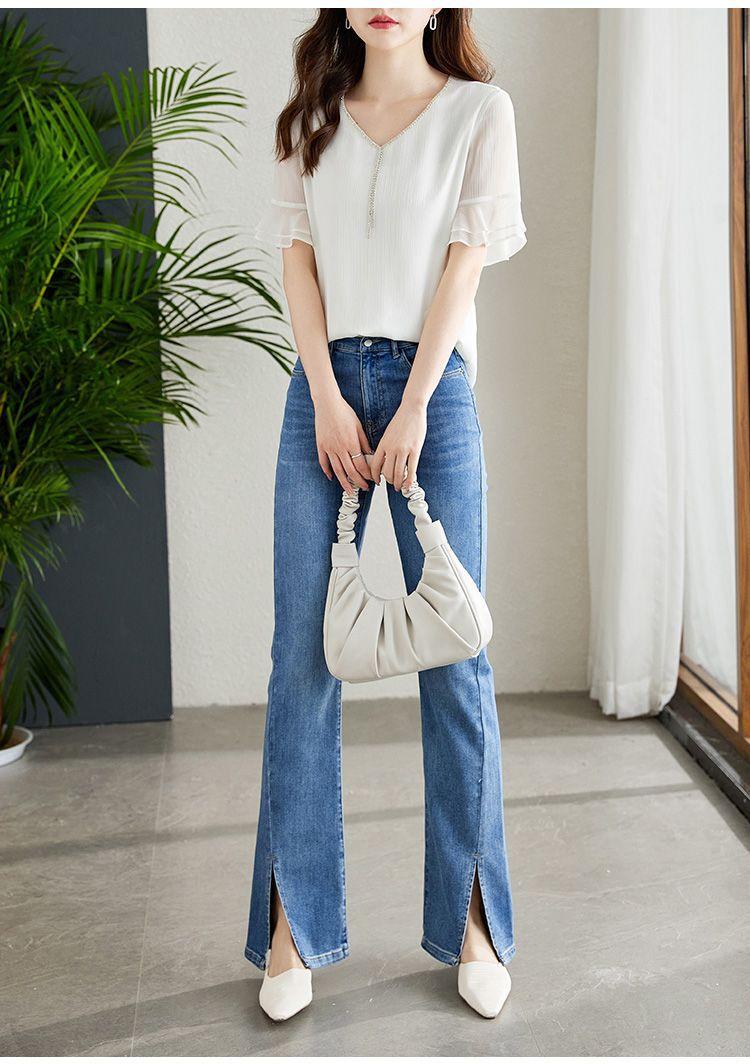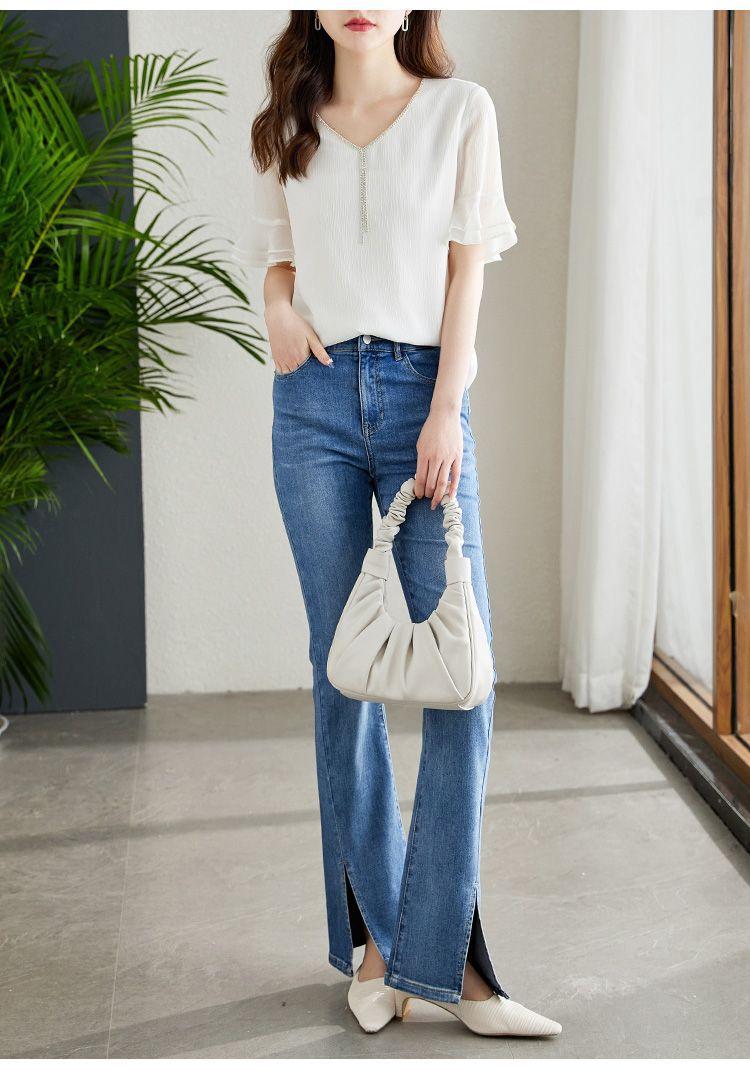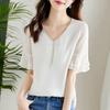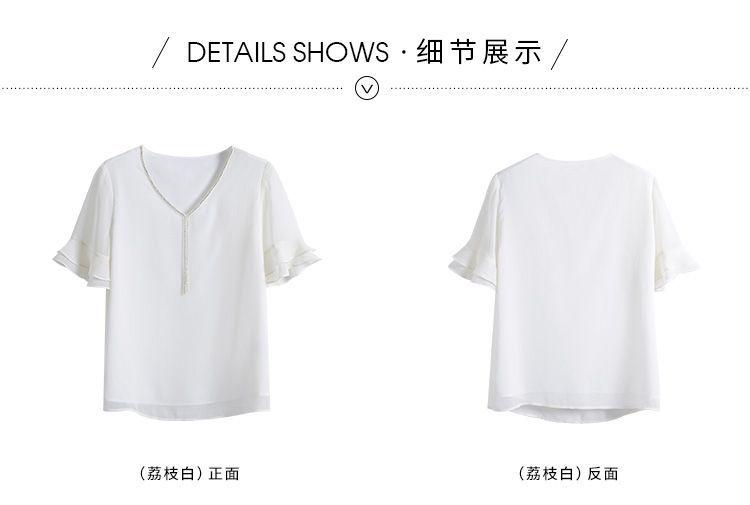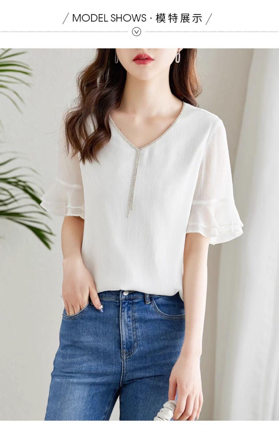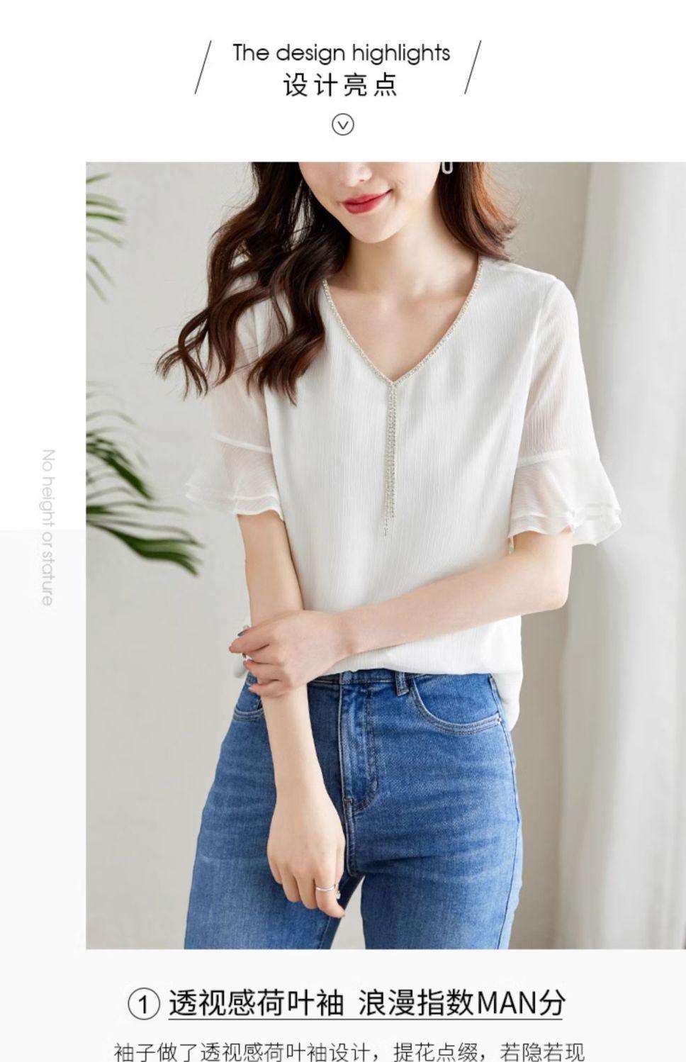 Camisa de Gasa con Cuello en V y Manga con Volantes para Mujer Verano 2025 Nueva Holgada Cubre Vientre Adelgazante Top Blanco Super Hada Camisa Trendy