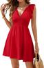 Ropa de Mujer Transfronteriza Europea y Americana 2025 Amazon Primavera y Verano Nuevo Blusa Plisada de Cuello en V con Manga Volante Vestido Falda de Playa