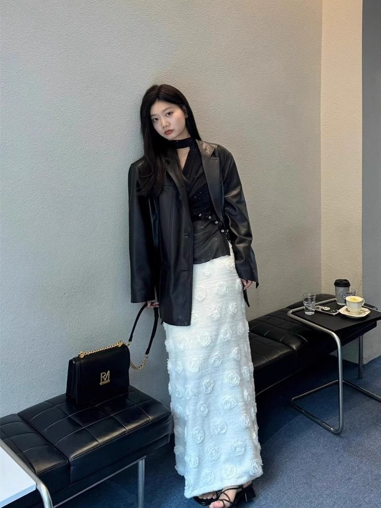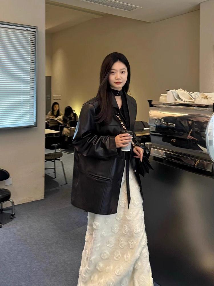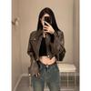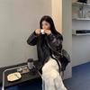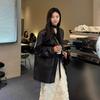 Chaqueta de Cuero Negra Tipo Traje para Mujer 2025 Otoño Nuevo Diseño Retro Americano de Alta Gama Suelta Chaqueta de Cuero Trendy