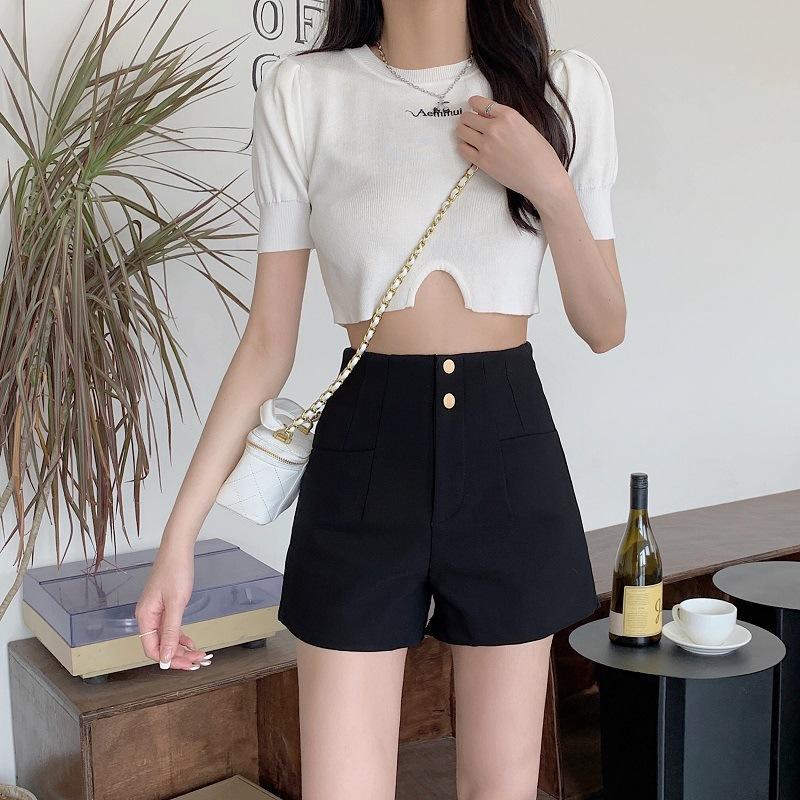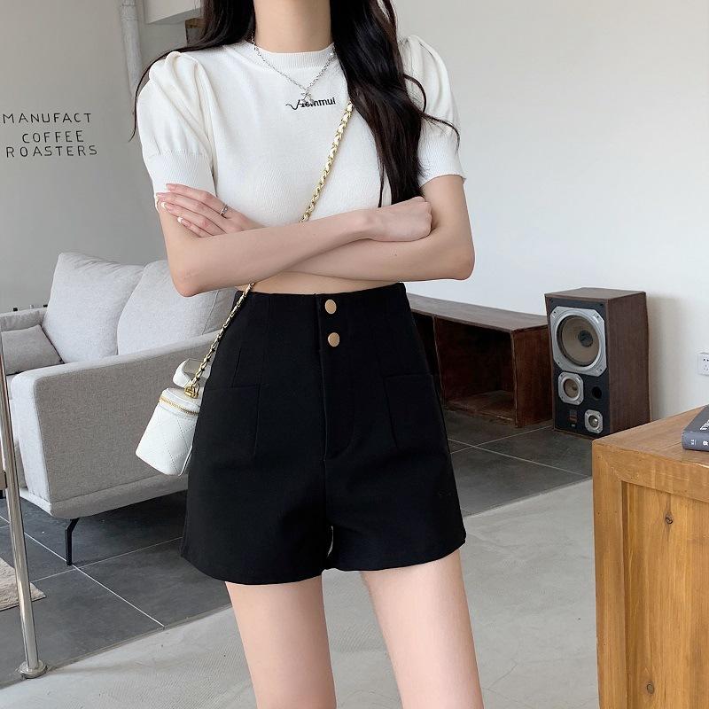Verano nuevo versátil pantalón casual adelgazante línea A hot pants talla grande mm gordita cintura alta negro shorts de pierna ancha mujer