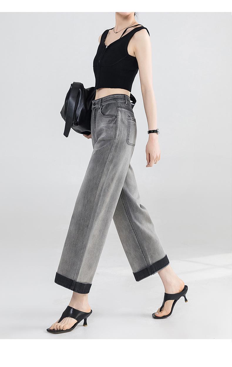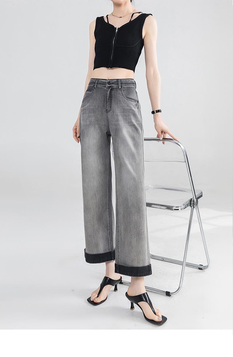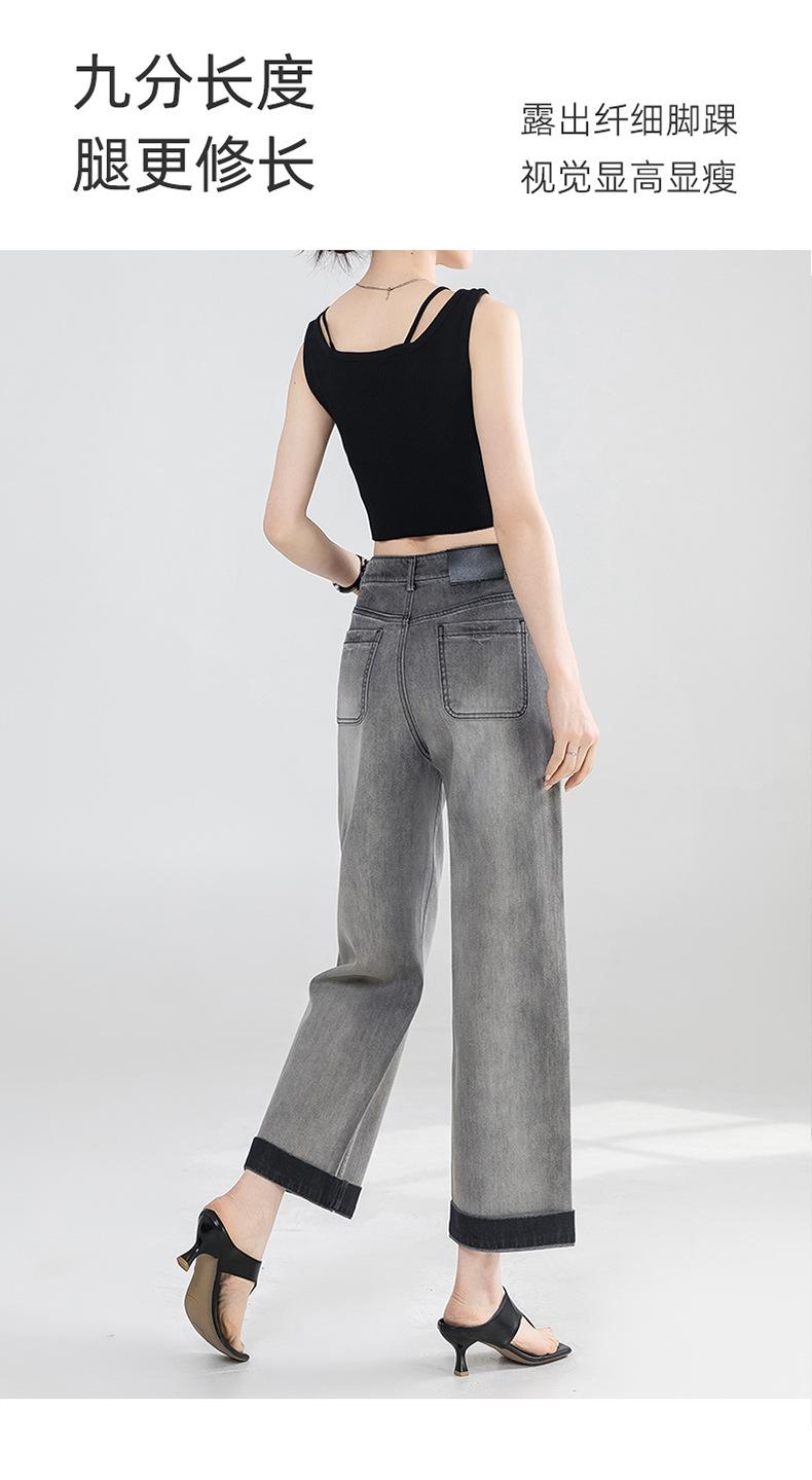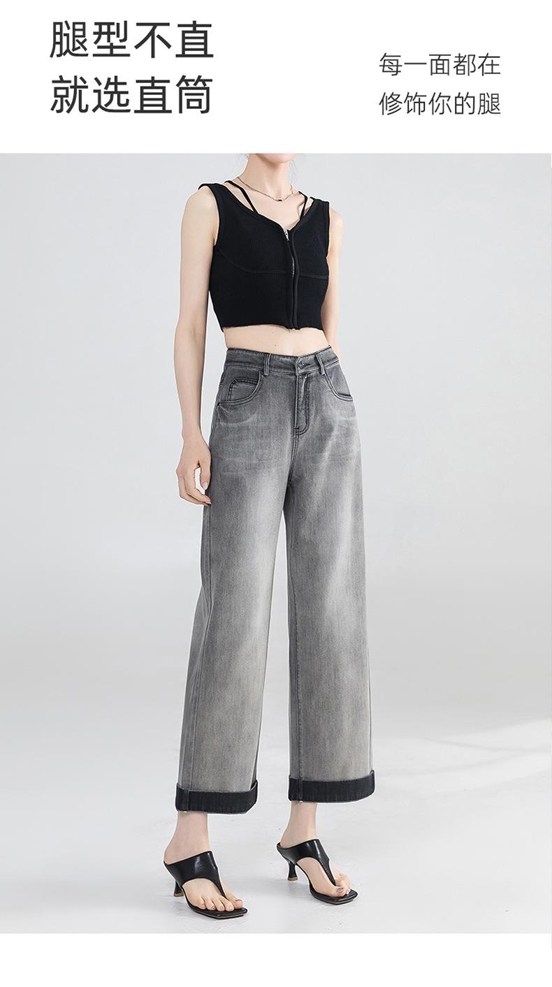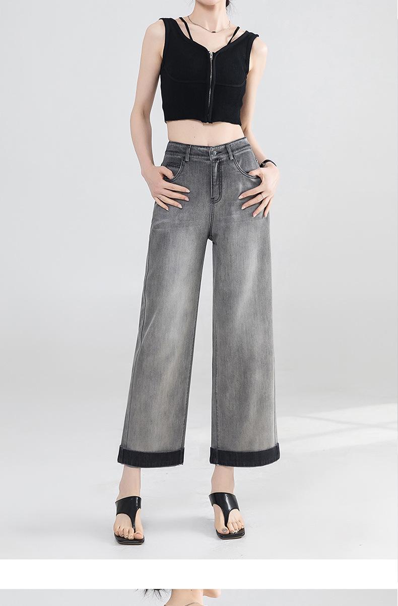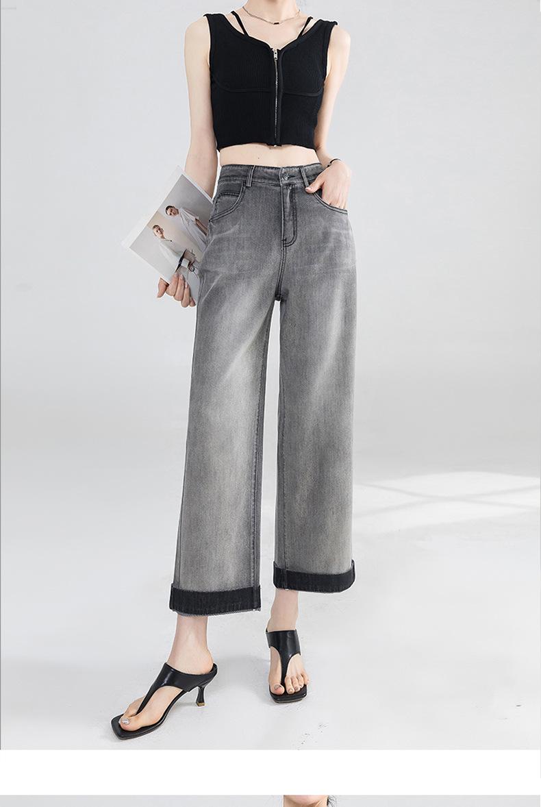Jeans Grises Fríos Cortos de Pierna Ancha para Mujer Verano 2025 Nuevos Pantalones Sueltos Adelgazantes Pequeños Rectos