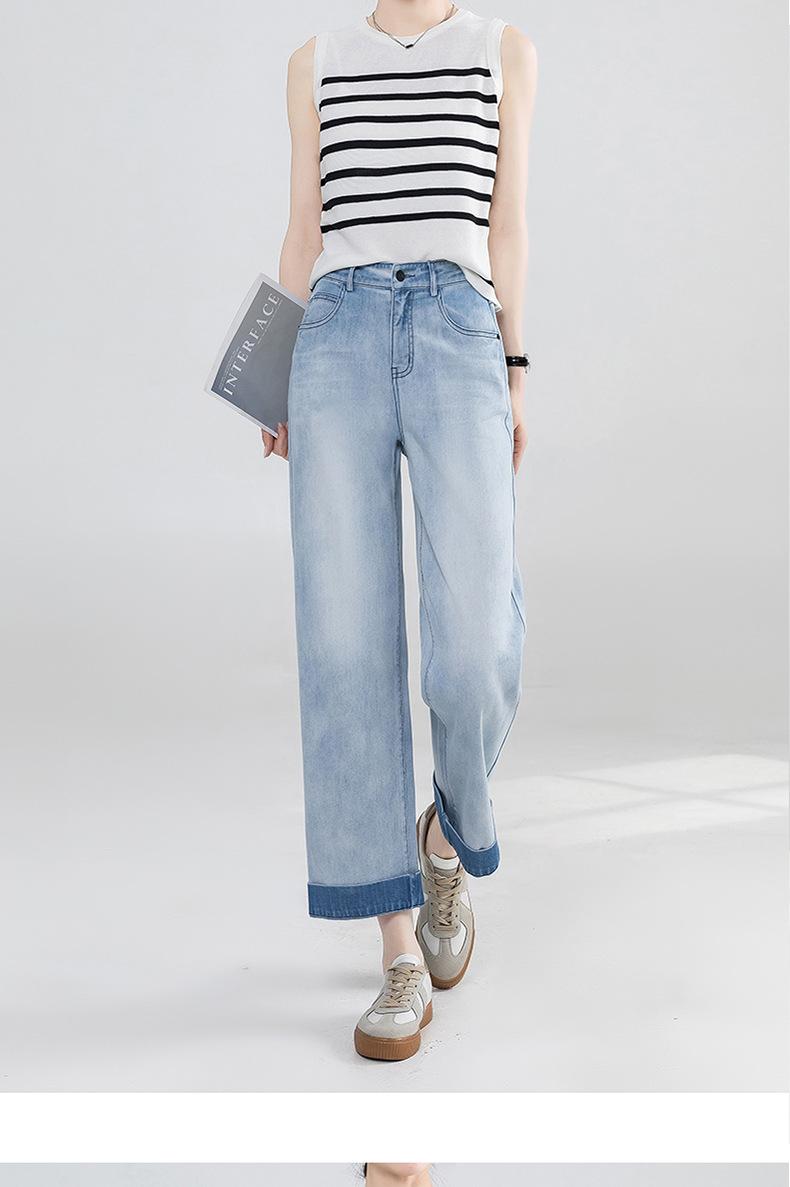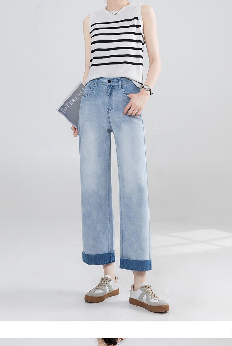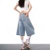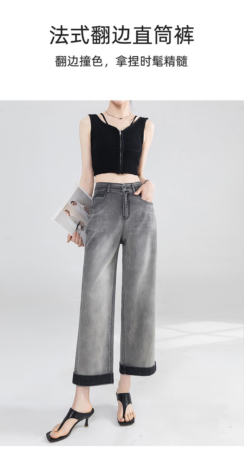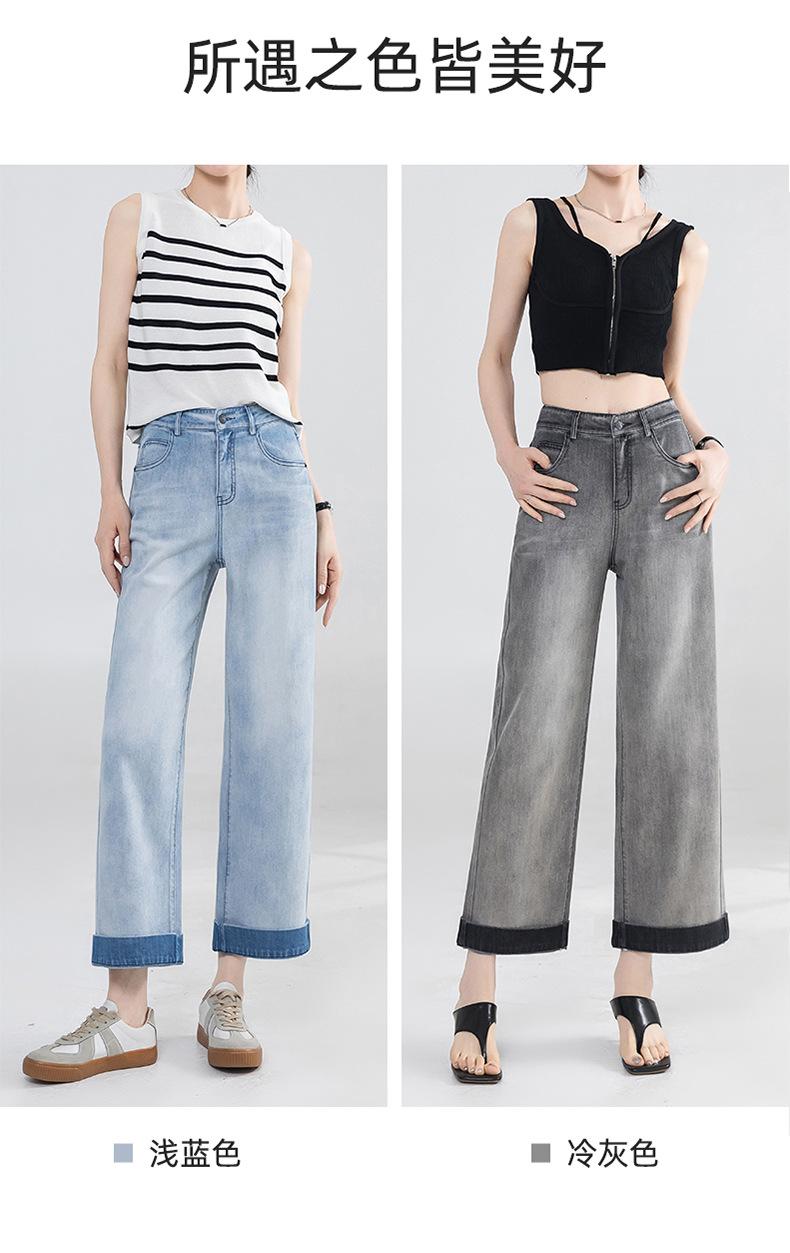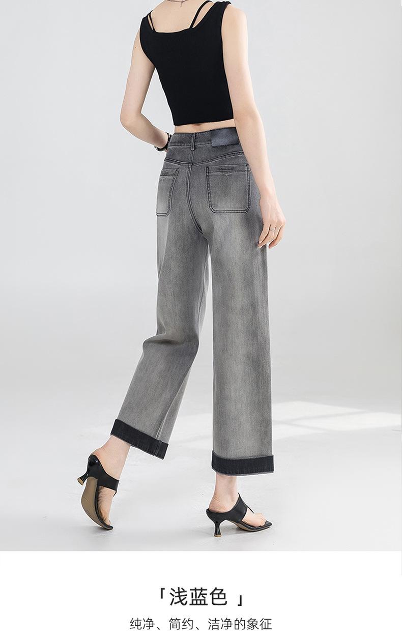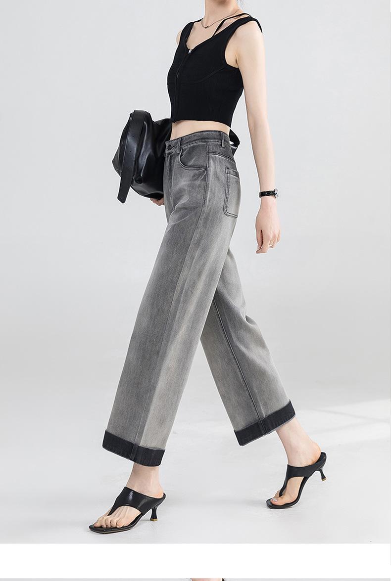 Jeans Grises Fríos Cortos de Pierna Ancha para Mujer Verano 2025 Nuevos Pantalones Sueltos Adelgazantes Pequeños Rectos