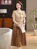 Nuevo Estilo Chino Vestido de Verano para Mamá 2025 Nueva Moda para Mujeres de Mediana Edad y Mayores Falda de Cintura de Manga Corta de Dos Piezas Falsas