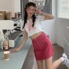 Falda de mezclilla rosa para mujer, verano, nueva moda, versátil, falda corta, cintura alta, falda de cadera