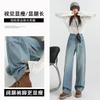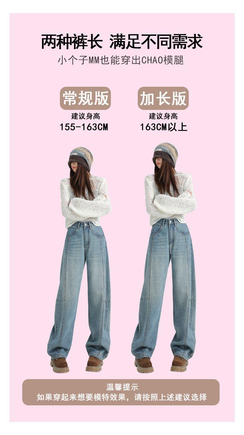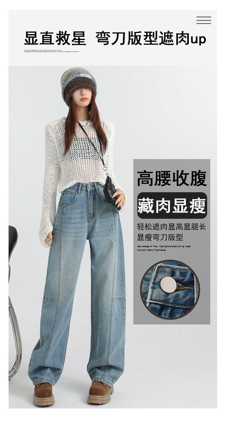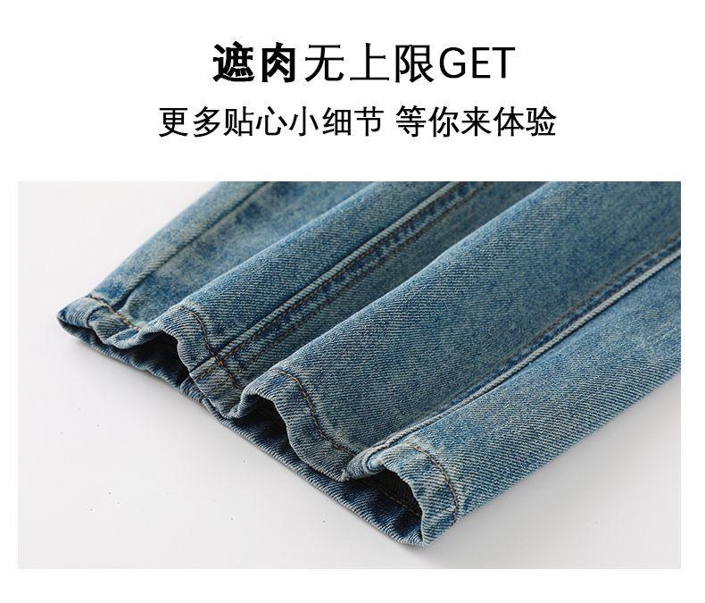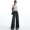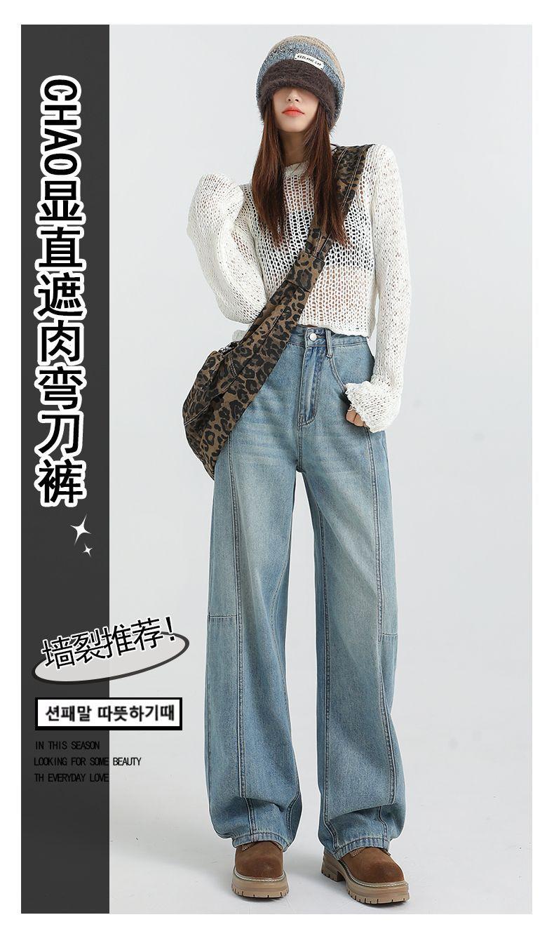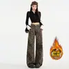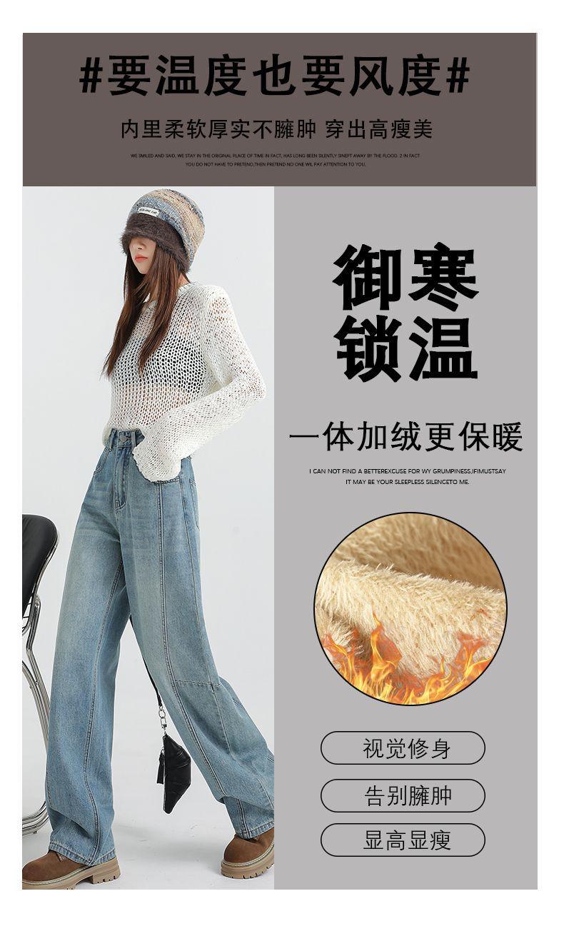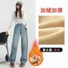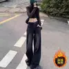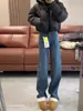 Jeans Retro de Pierna Ancha para Mujer 2025 Otoño e Invierno Largo Hasta el Piso Nuevo Tiro Alto Recto Adelgazante Look Suelto Pantalones de Hoz Forrados de Polar