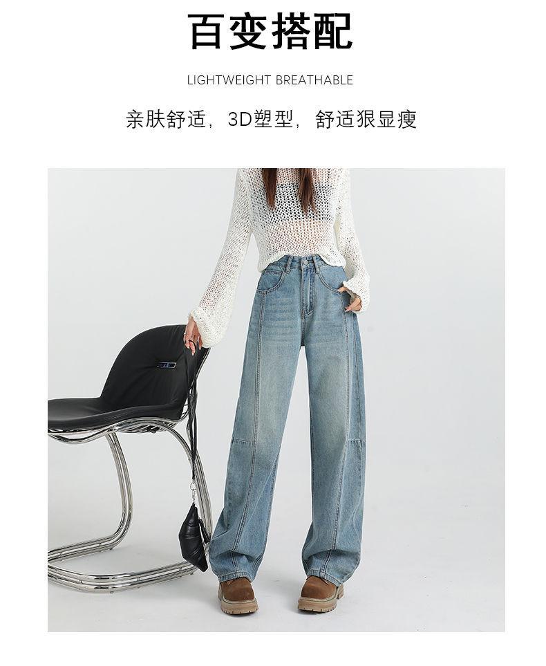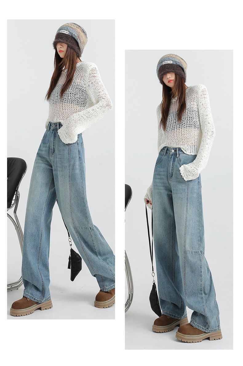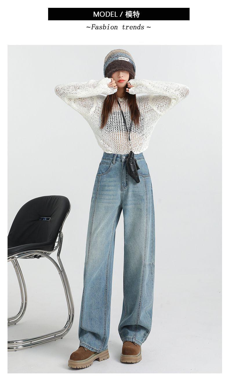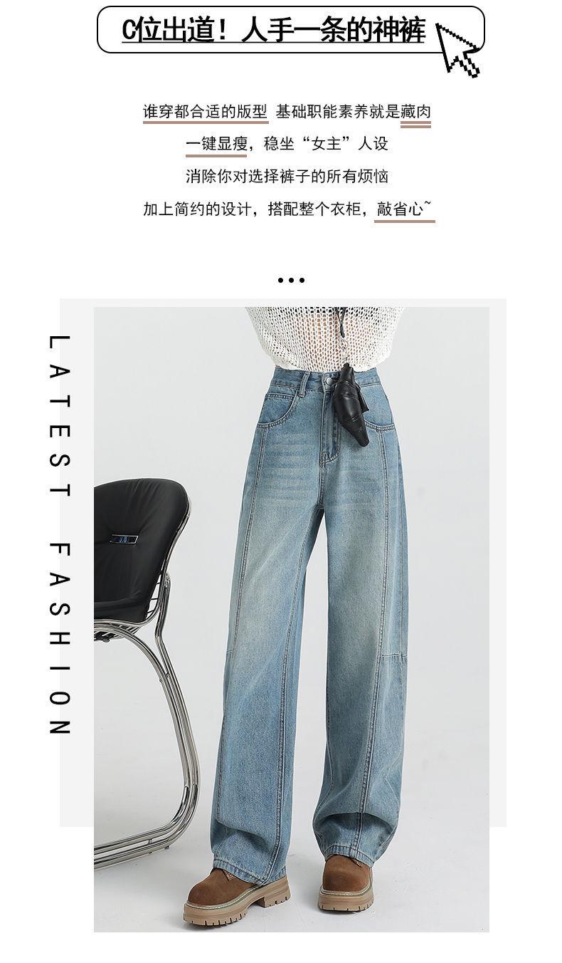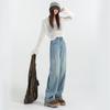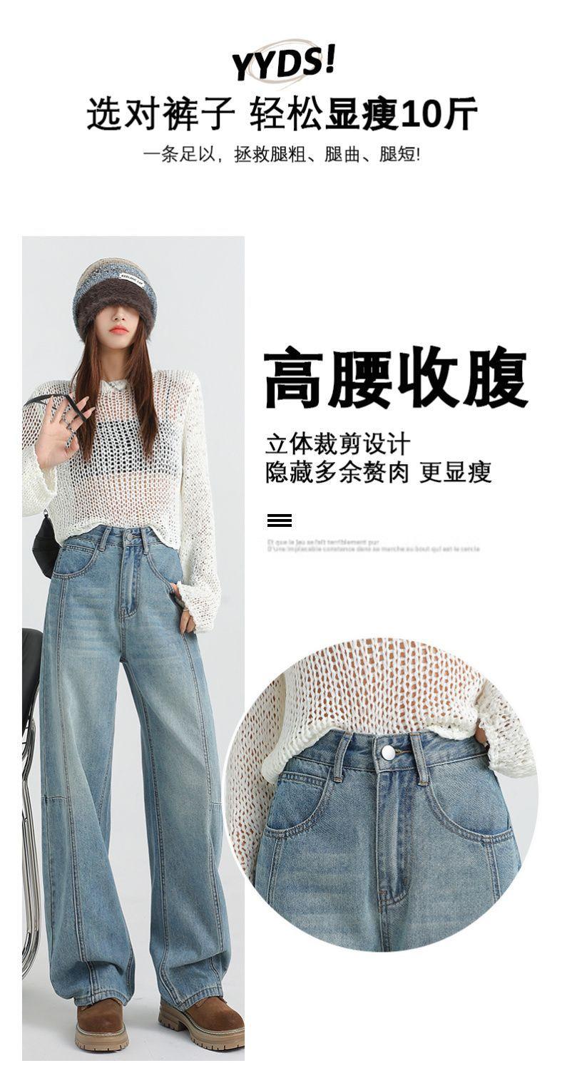 Jeans Retro de Pierna Ancha para Mujer 2025 Otoño e Invierno Largo Hasta el Piso Nuevo Tiro Alto Recto Adelgazante Look Suelto Pantalones de Hoz Forrados de Polar