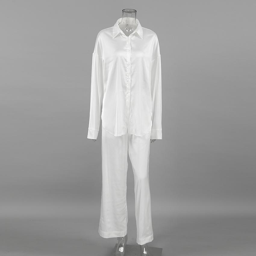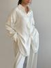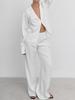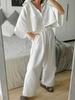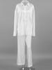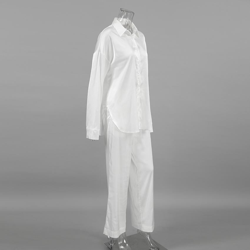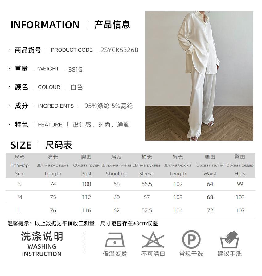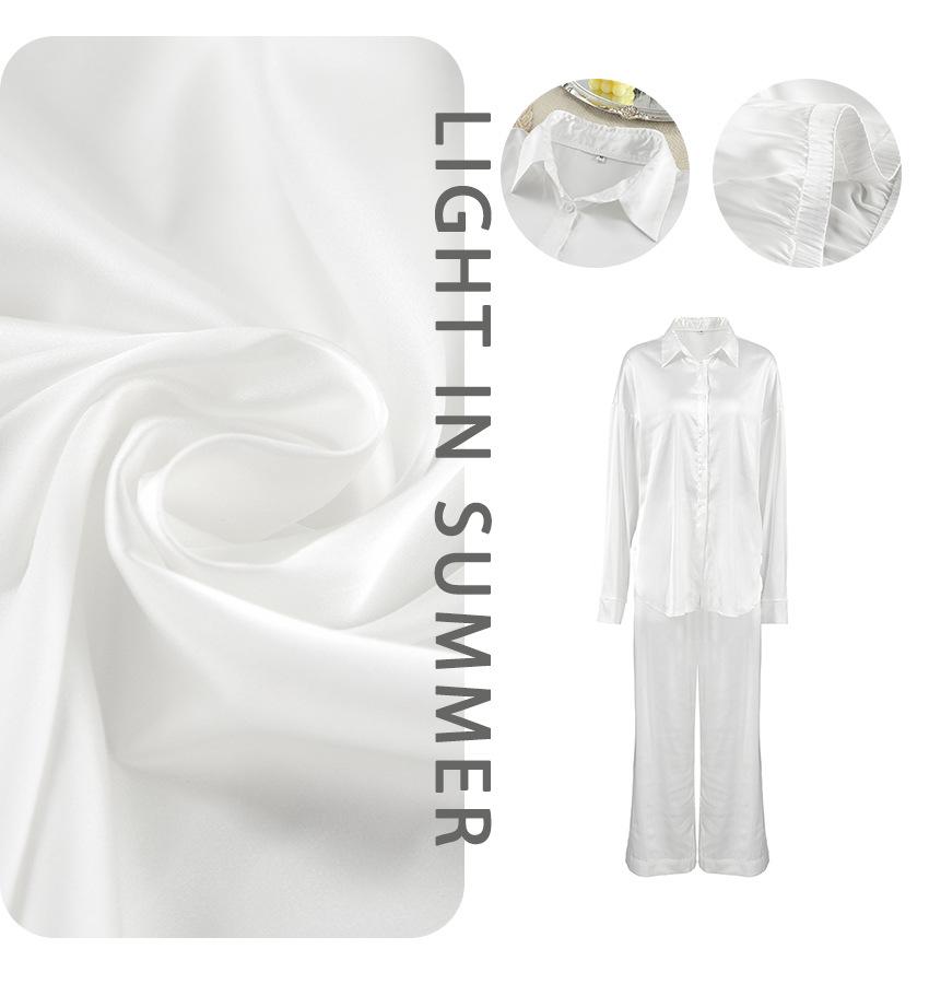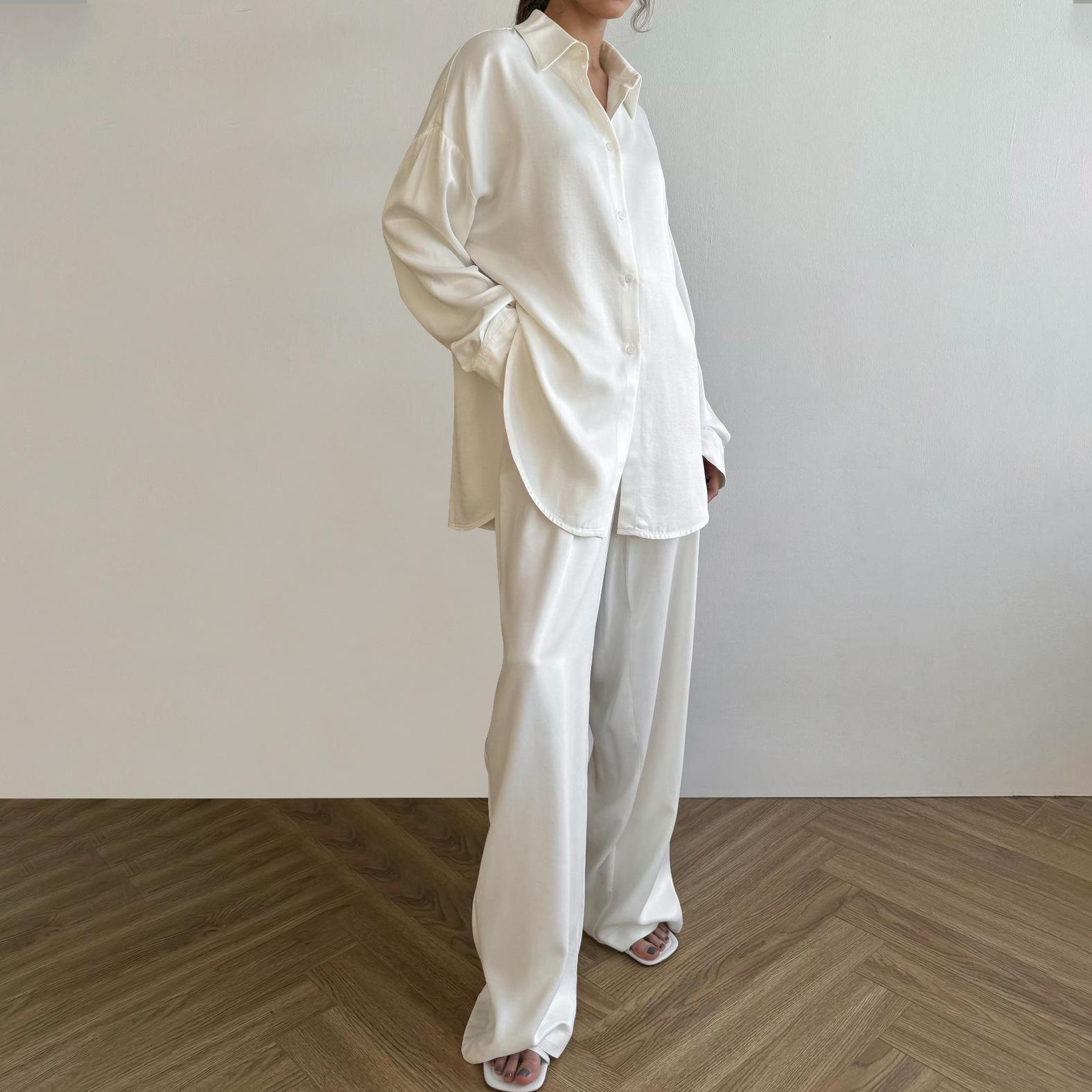 2025 verano nuevo camisa de manga larga con cuello alto pantalones de pierna ancha de cintura alta conjunto de dos piezas para mujer sentido del diseño moda casual Europa y Estados Unidos