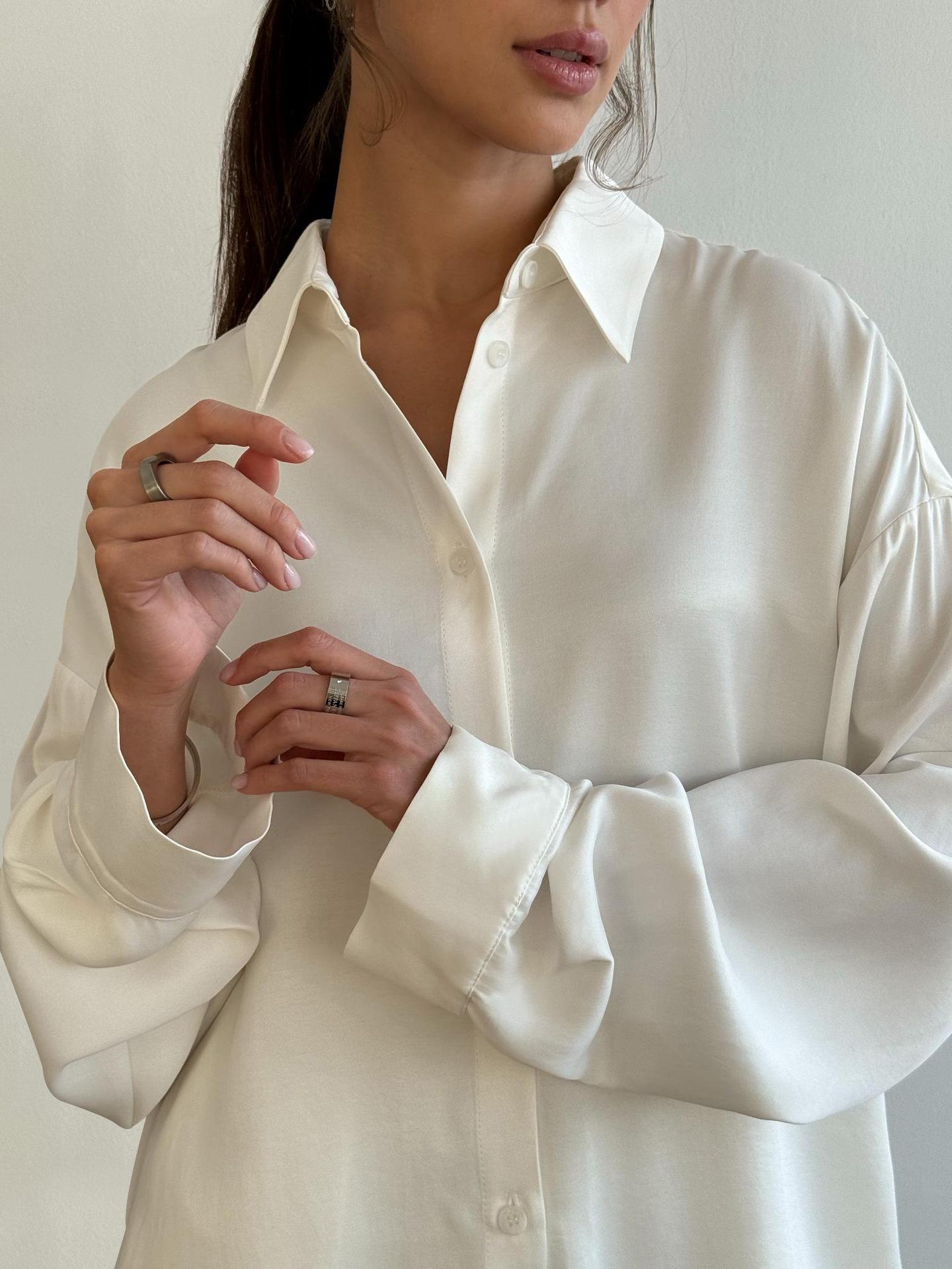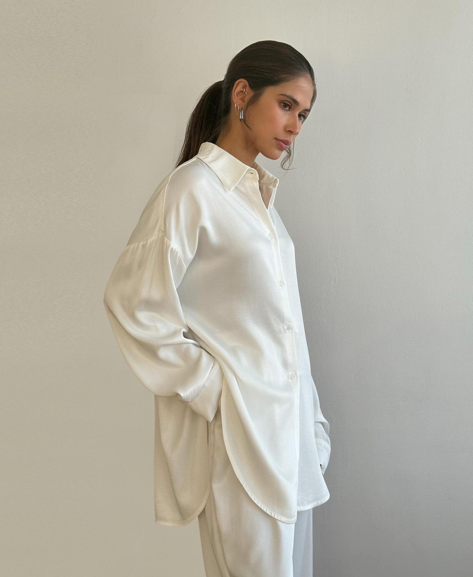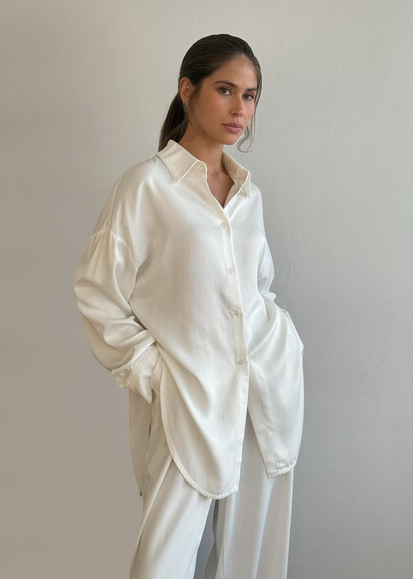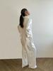 2025 verano nuevo camisa de manga larga con cuello alto pantalones de pierna ancha de cintura alta conjunto de dos piezas para mujer sentido del diseño moda casual Europa y Estados Unidos