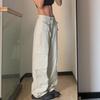 Holgados y Petite 2025 Verano Nuevo Jeans de Trabajo High Street Jeans Americanos Pantalones Versátiles de Pierna Ancha para Mujer