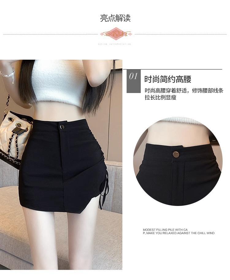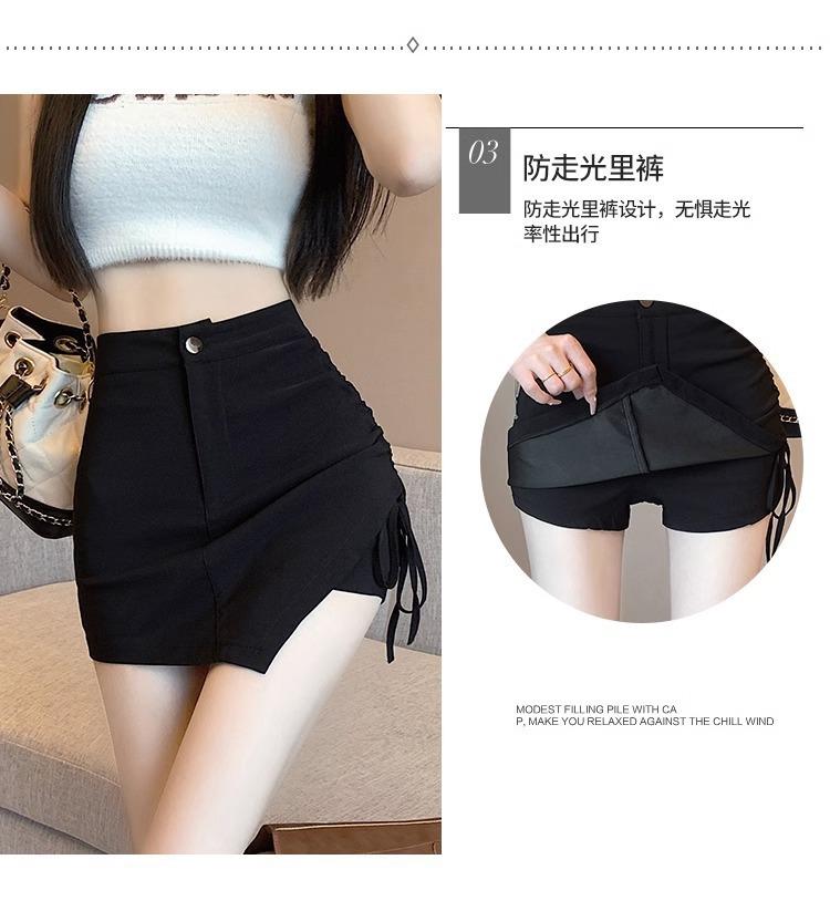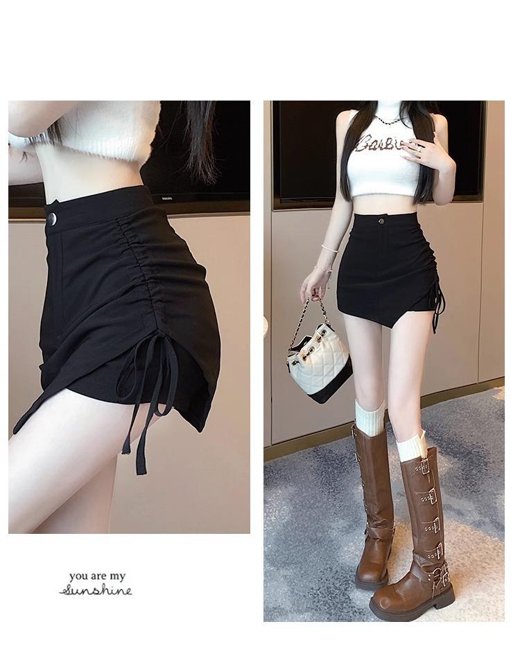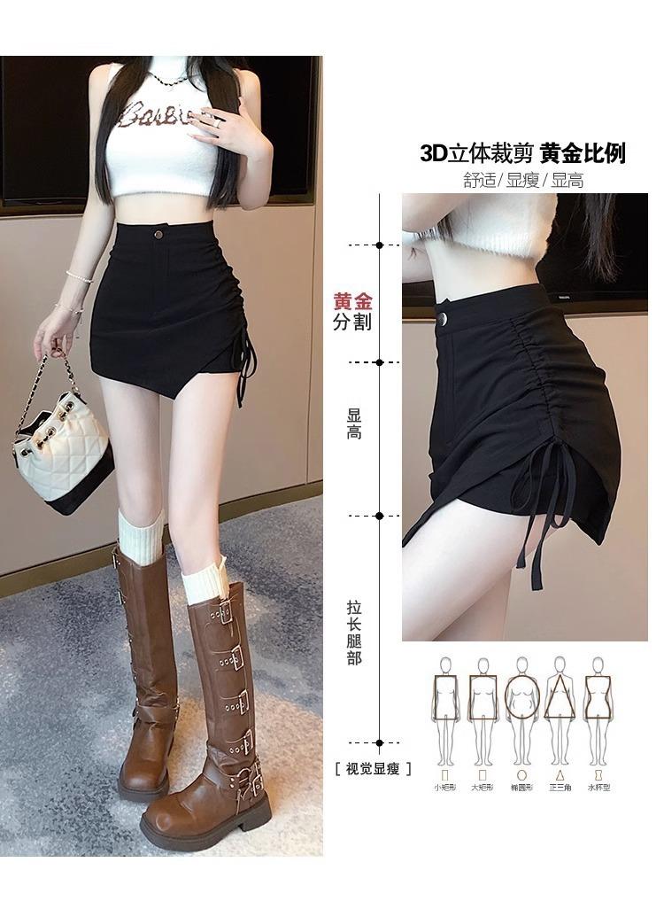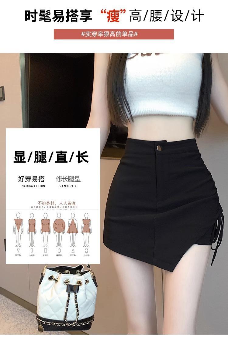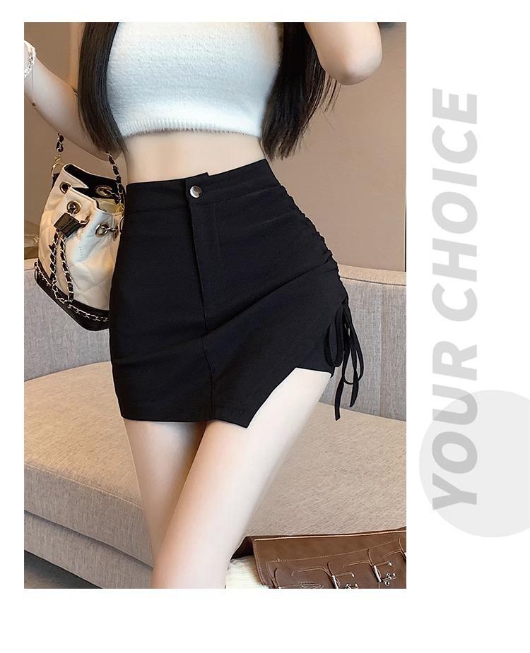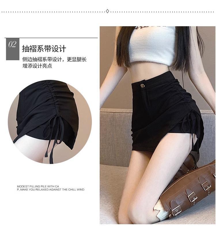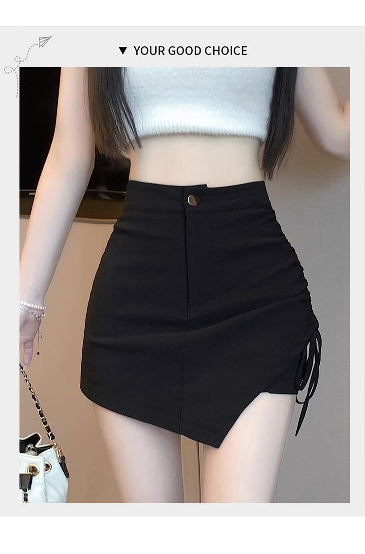 Falda Negra Irregular con Cordón para Mujer en Verano, Falda de Traje Sexy de Cintura Alta con Corte en A, Look Adelgazante y Falda Corta Ajustada a las Caderas