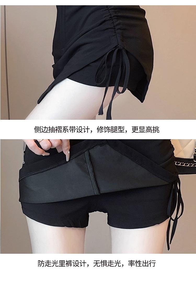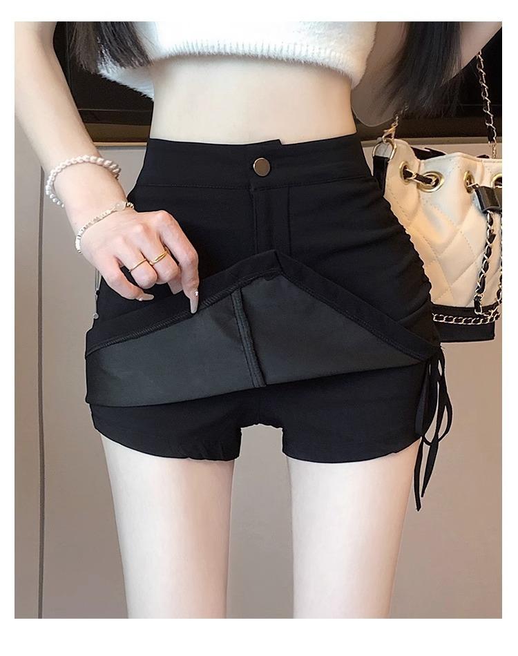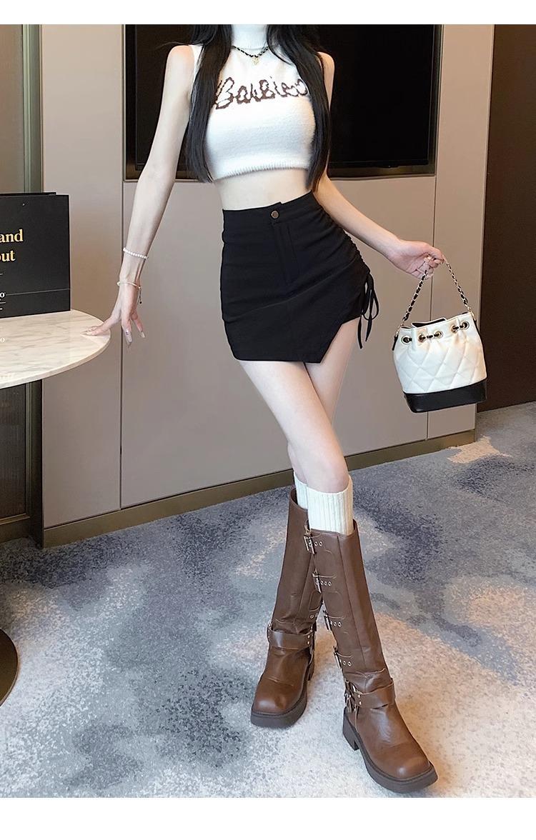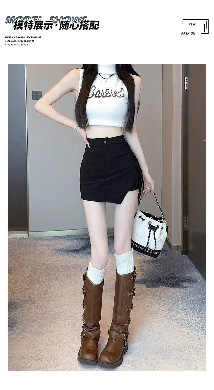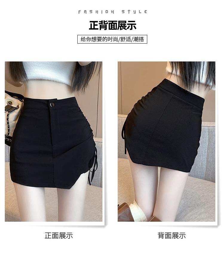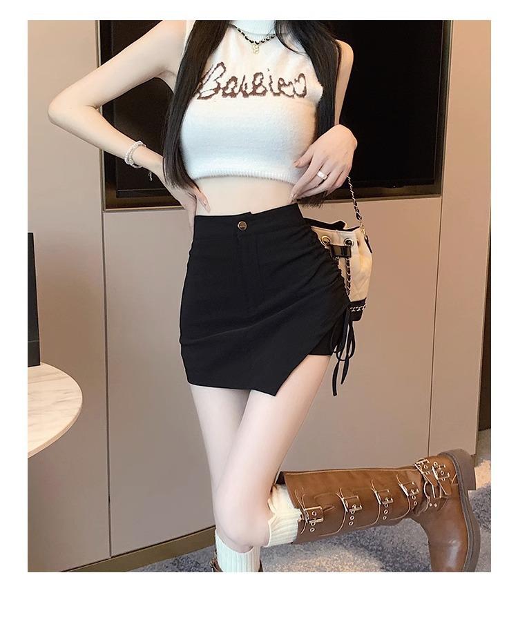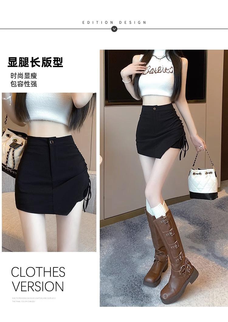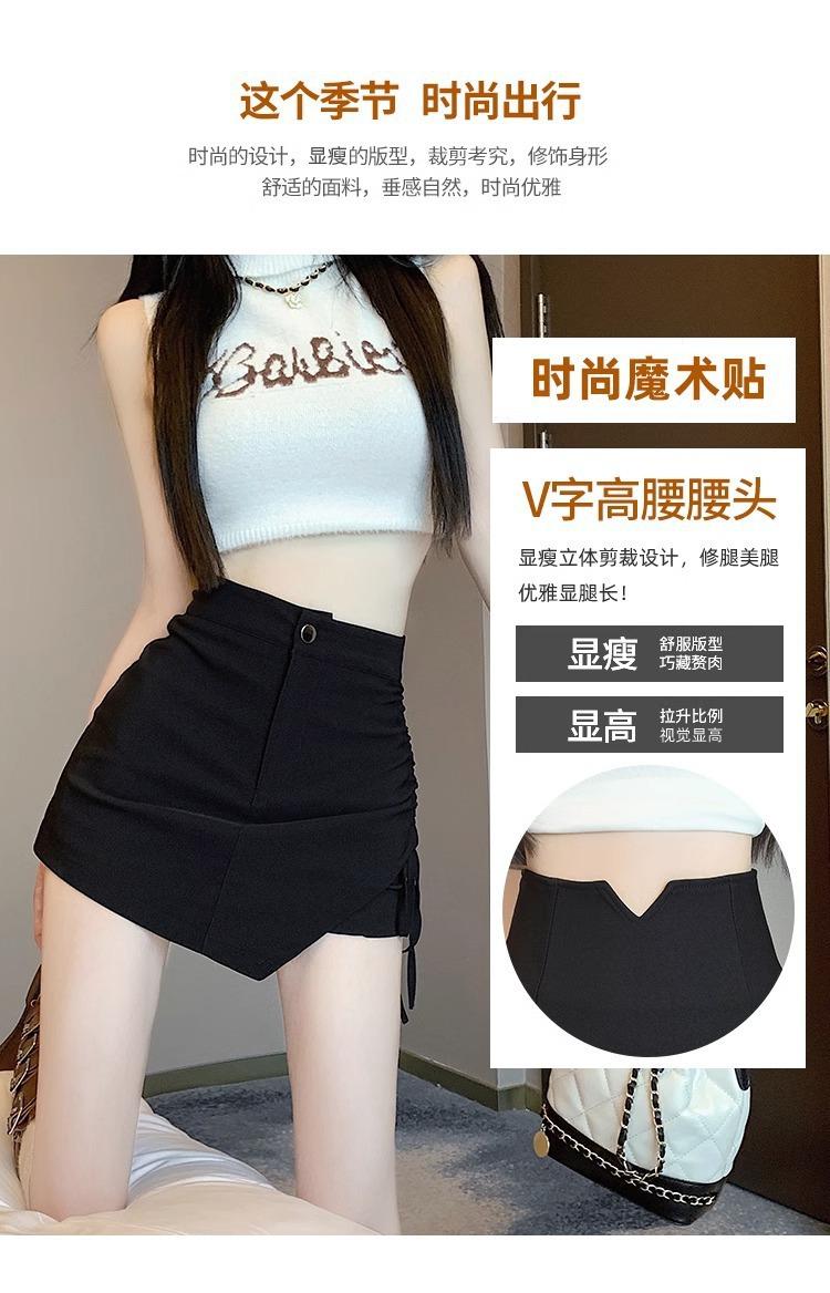 Falda Negra Irregular con Cordón para Mujer en Verano, Falda de Traje Sexy de Cintura Alta con Corte en A, Look Adelgazante y Falda Corta Ajustada a las Caderas