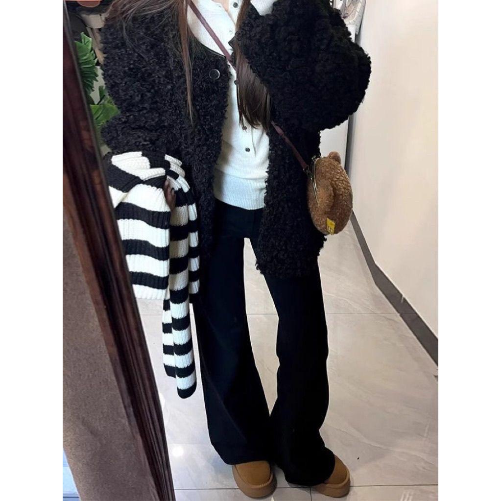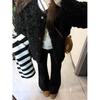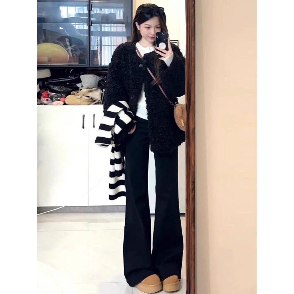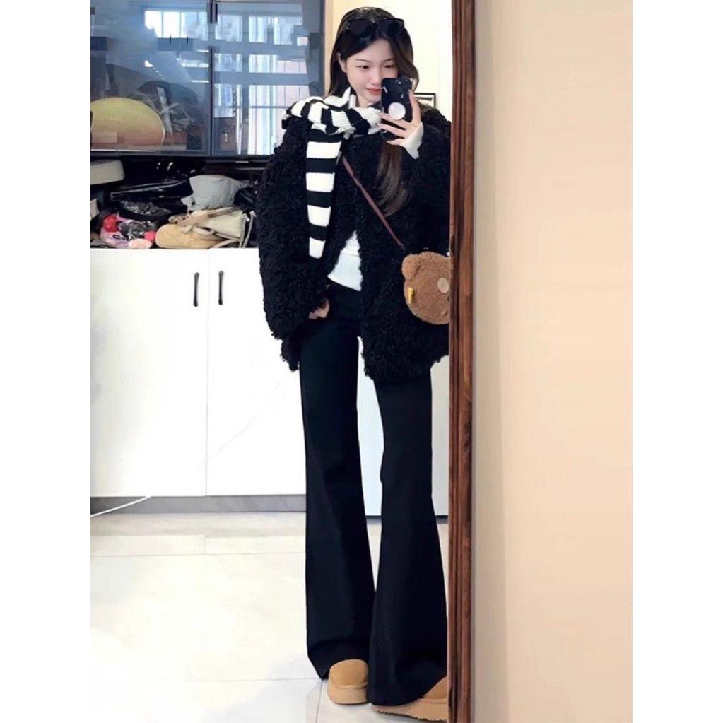Jeans acampanados microamericanos negros para mujer 2025 primavera y otoño nuevos de talle alto corte ajustado adelgazantes no ajustados pantalones acampanados de pierna