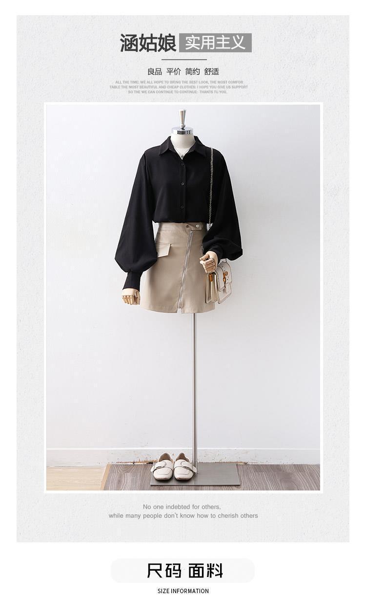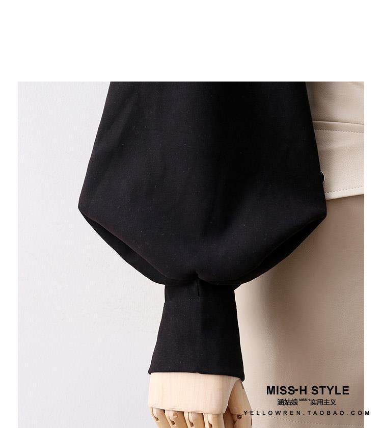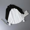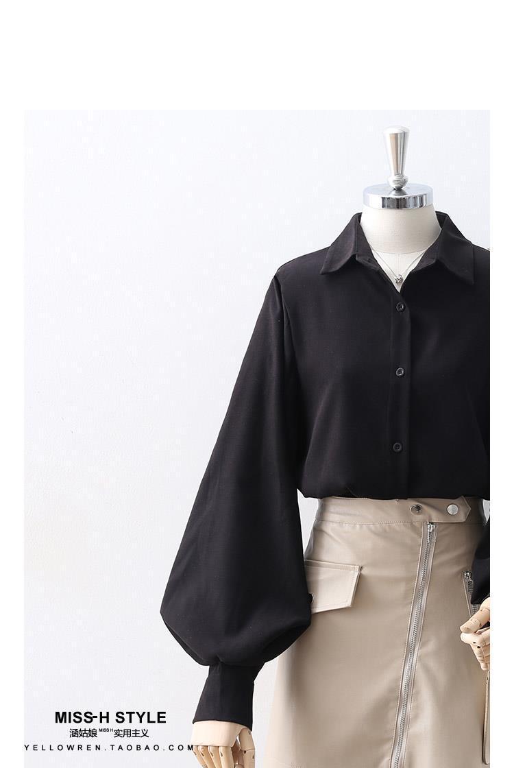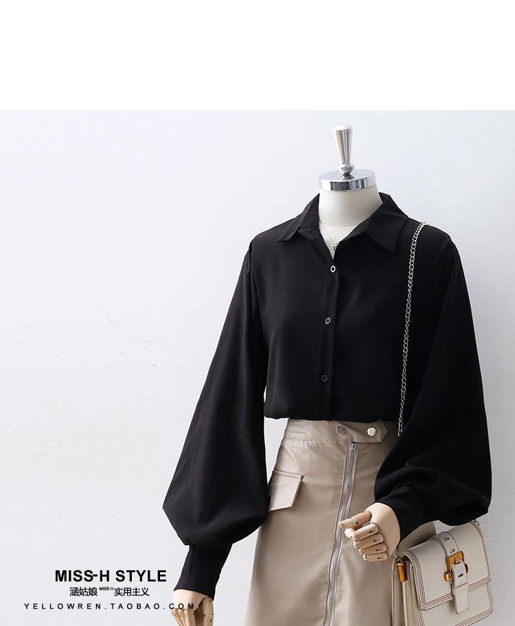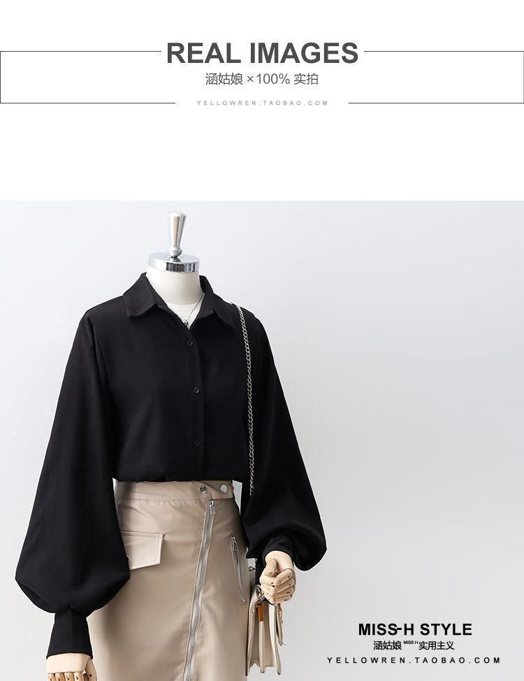 Comercio Exterior Nueva Camisa de Manga Farol Negra para Mujer Estilo Retro Hong Kong Top de Manga Larga Abullonada Diseño Niche Camisa