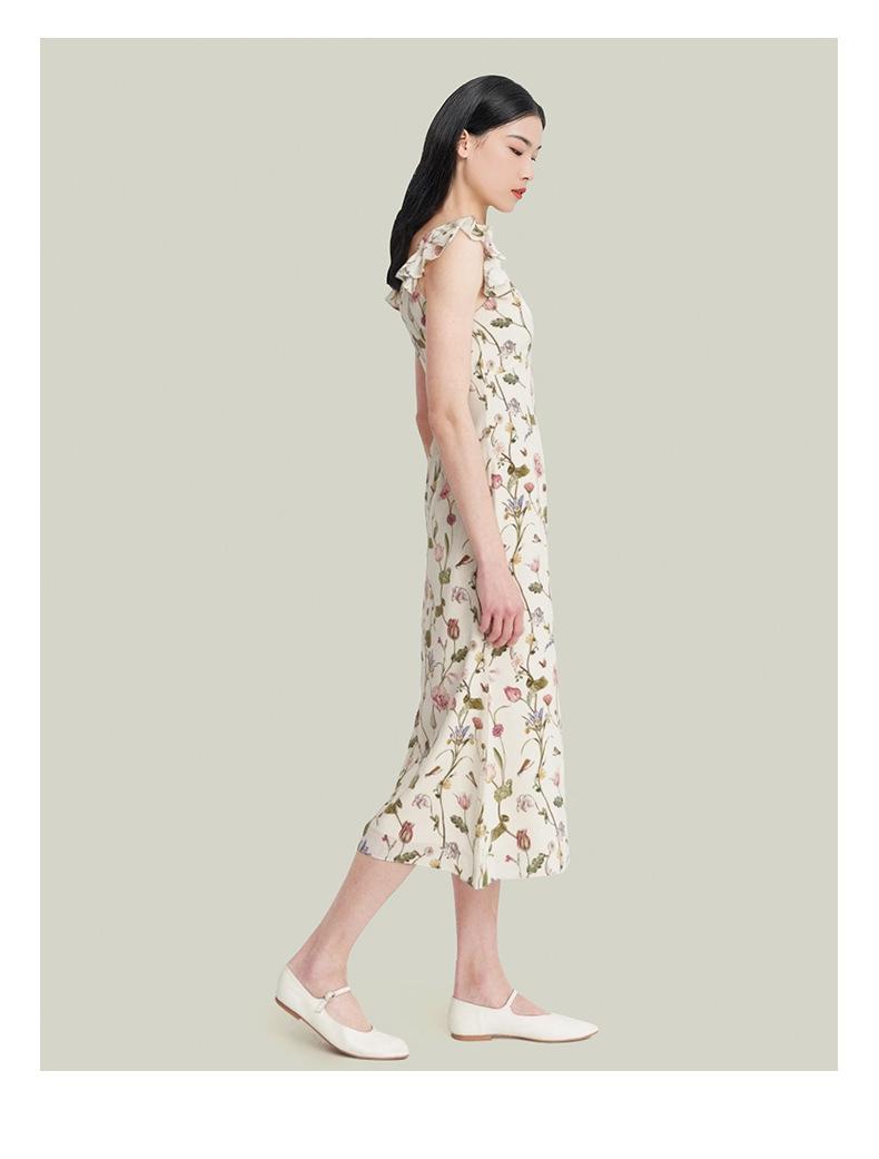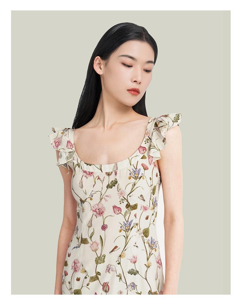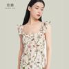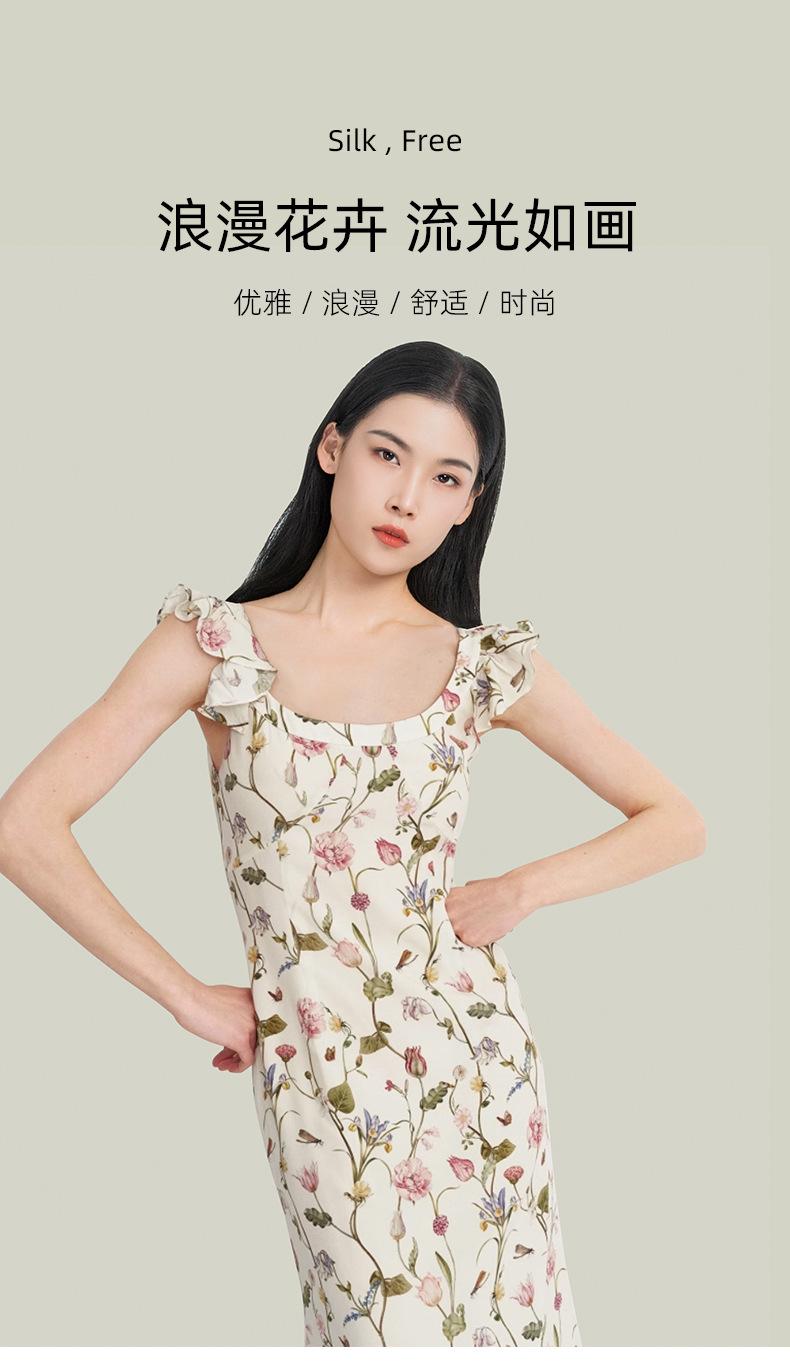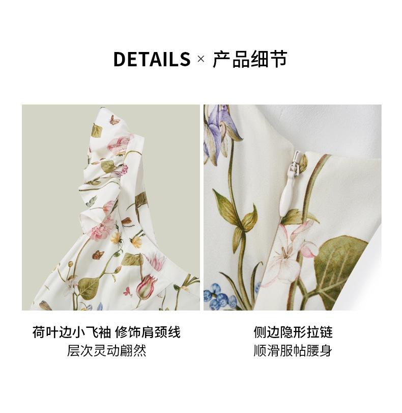 Vestido de Seda para Mujer 2025 Nuevo Estilo de Verano 100% Seda de Morera Estampado Mangas Cortas con Vuelo Elegante Cintura Adelgazante Falda