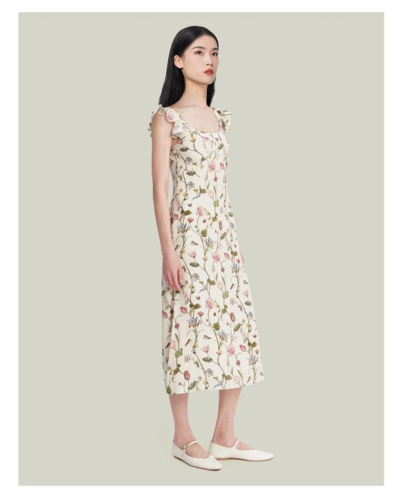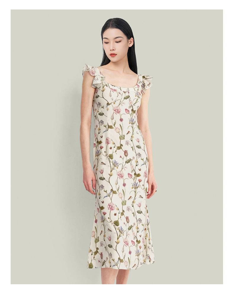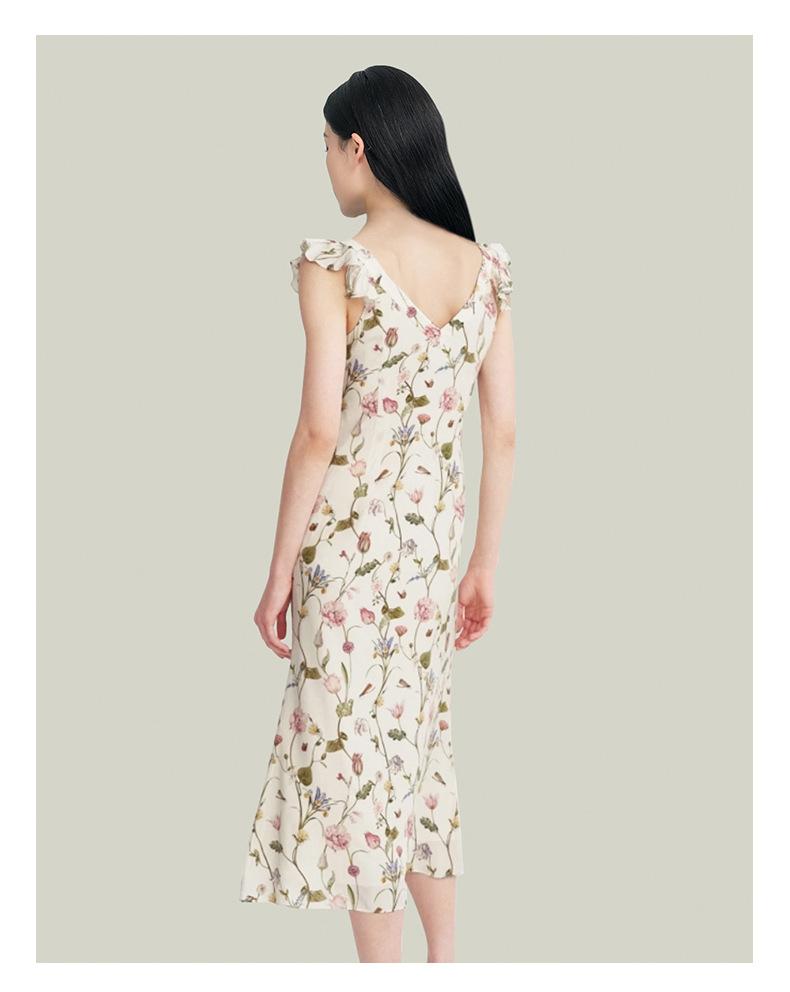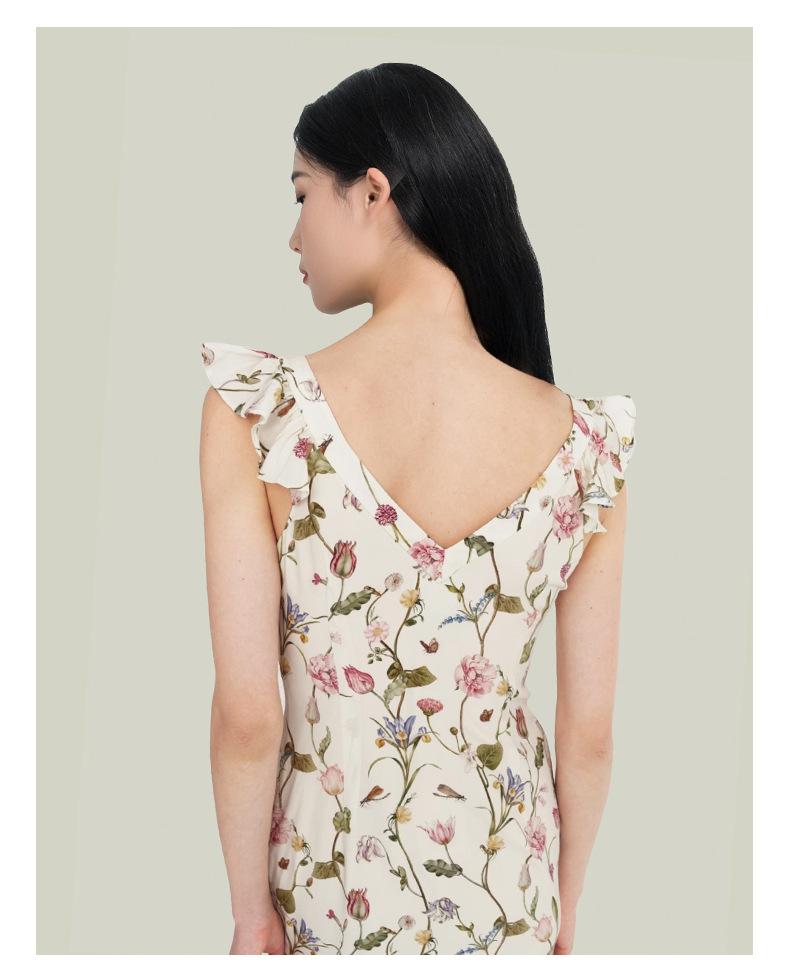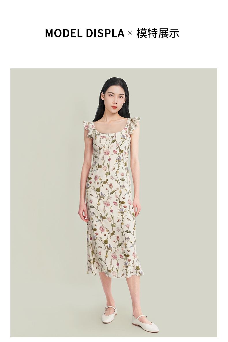 Vestido de Seda para Mujer 2025 Nuevo Estilo de Verano 100% Seda de Morera Estampado Mangas Cortas con Vuelo Elegante Cintura Adelgazante Falda