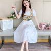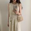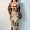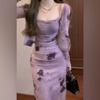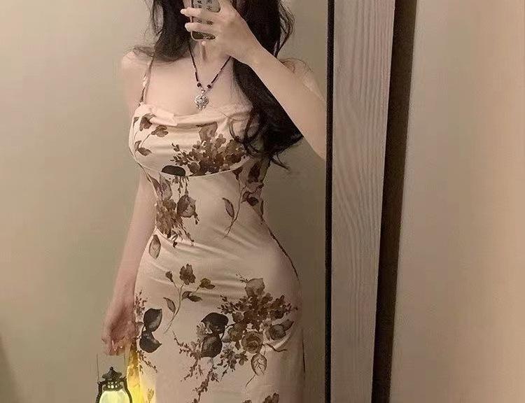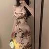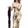 Estilo Francés Ligero Maduro Pintura Artística al Óleo Vestido Retro con Cuello Vuelto, Cintura Ajustada y Tirantes, Estilo Largo Medio, Estilo Chino Nuevo
