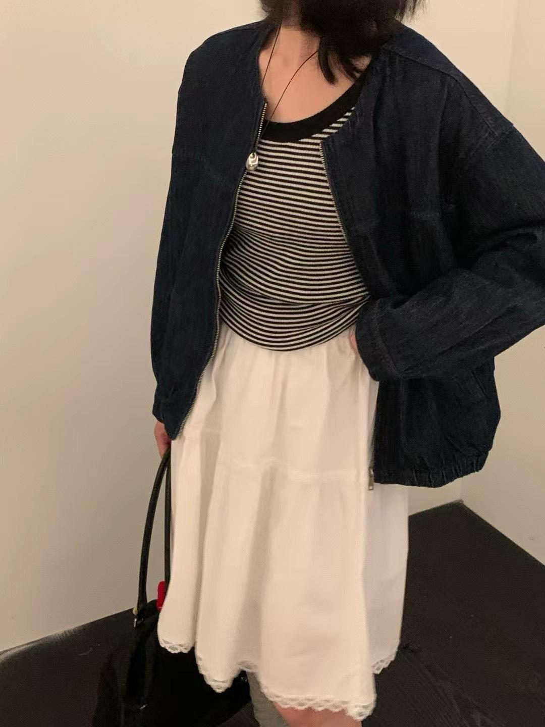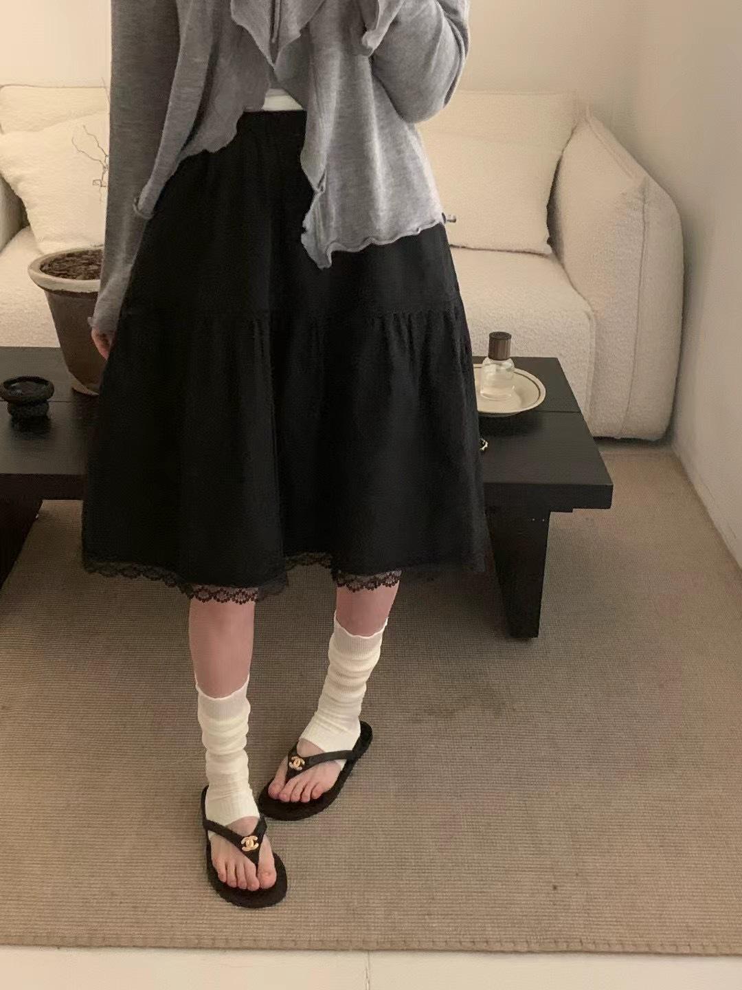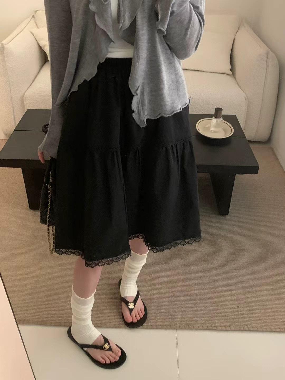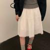 Falda delgada estilo coreano simple con encaje para mujer 2025 verano nuevo cintura alta look adelgazante falda línea A de largo medio