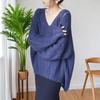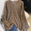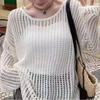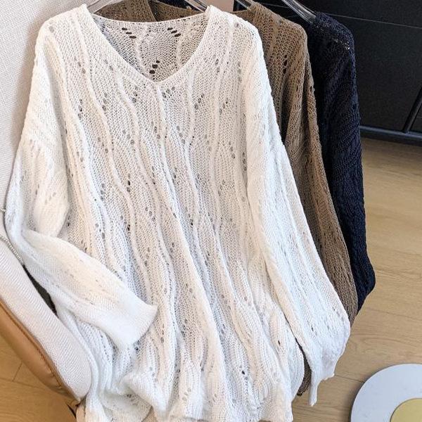 Suéter de manga larga hueco suelto con cuello en V para primavera y verano para mujer de talla grande, abrigo largo de punto con sensación fresca