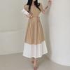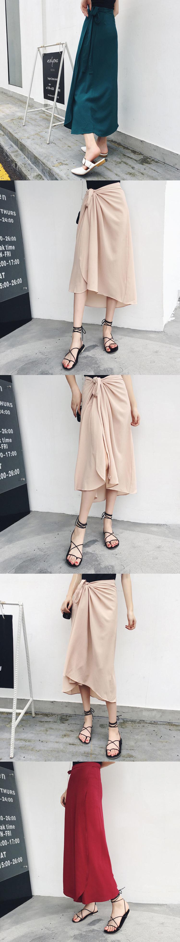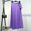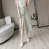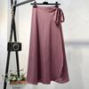 Vestido Largo Coreano de Estilo Primavera/Verano 2025 de Una Pieza con Cinturón de Lazo Cintura Alta Largo Midi Línea A Francés Sobre la Rodilla Falda Wrap de Media Longitud para Mujer