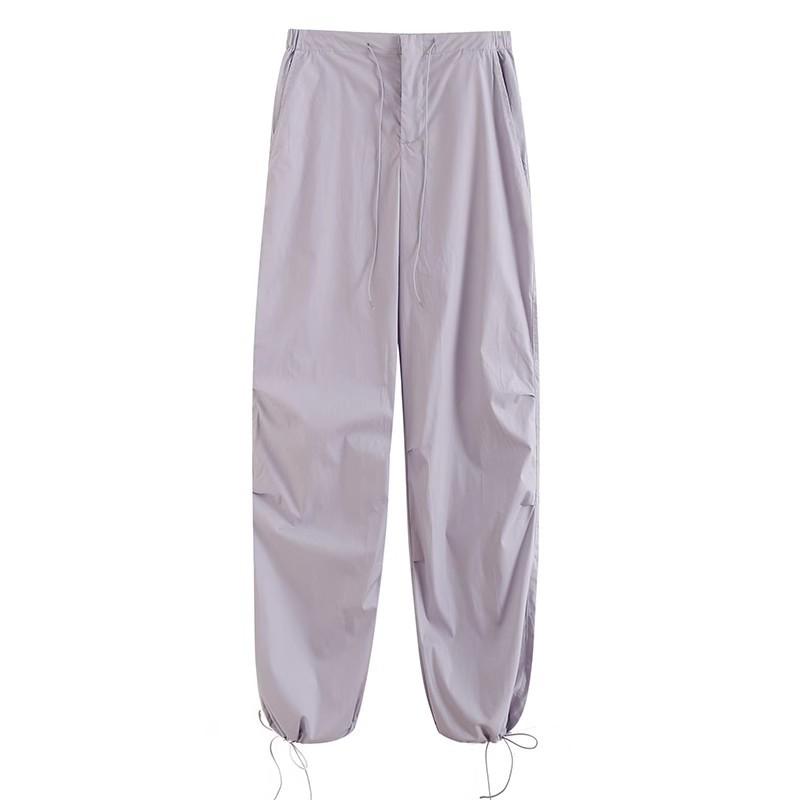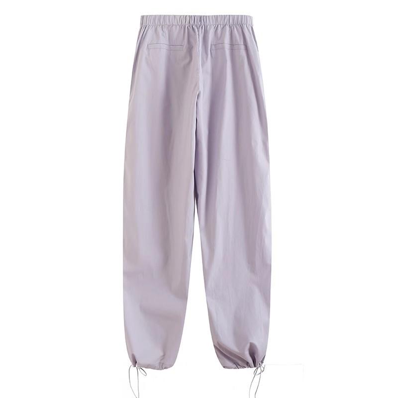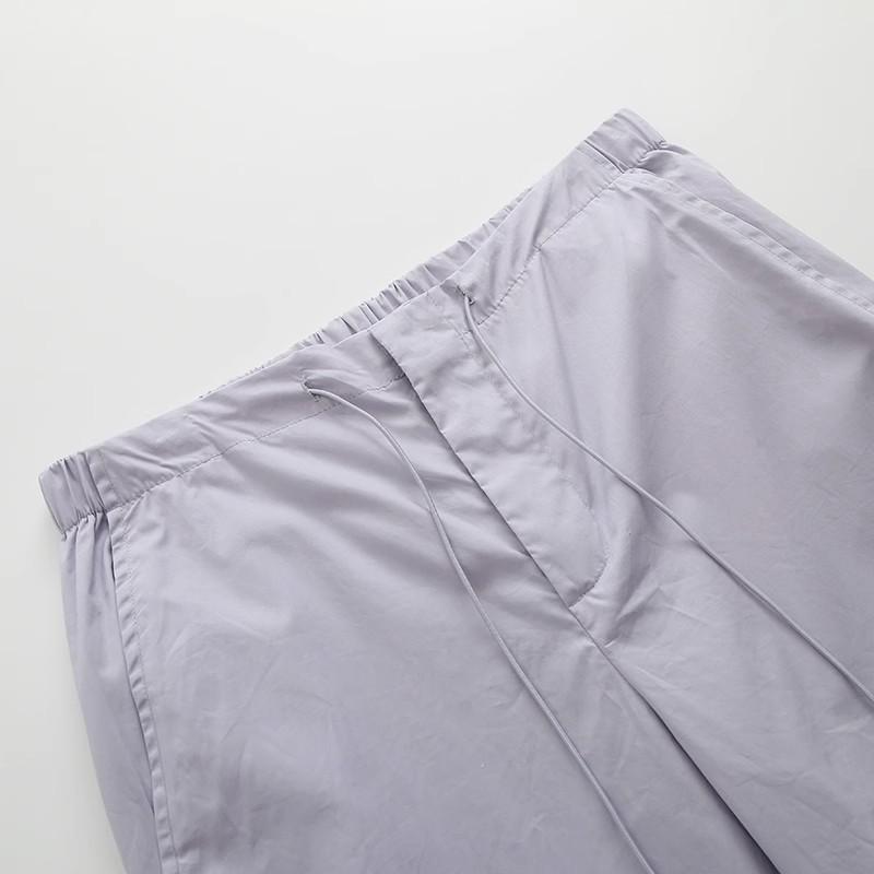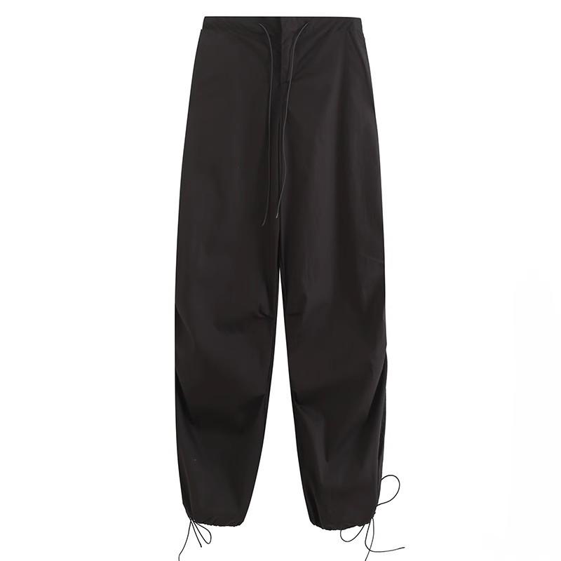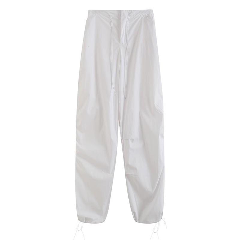 Ropa de Mujer Verano 2024 Nuevo Estilo Europeo y Americano Verano Nuevo Estilo Pantalones Paraguas Elastoelásticos con Cintura Ajustable con Cordones Pantalones Casuales Sencillos Combinables