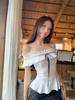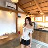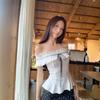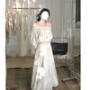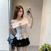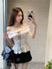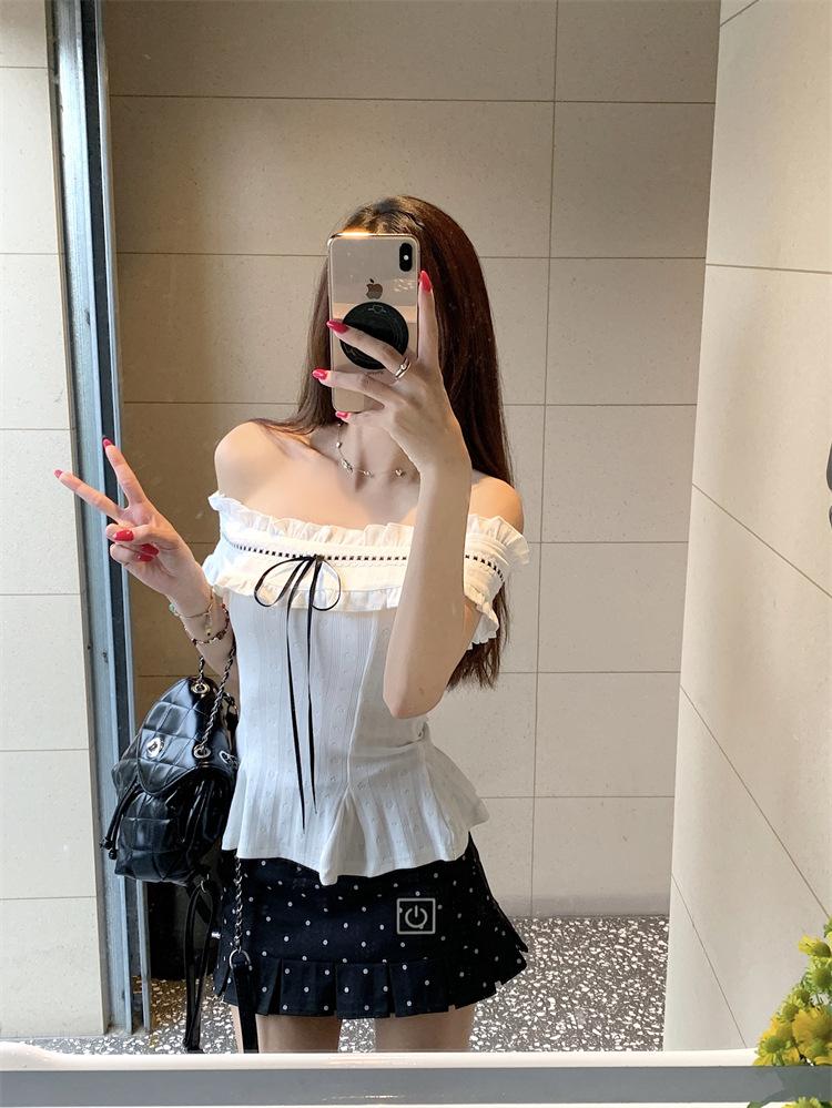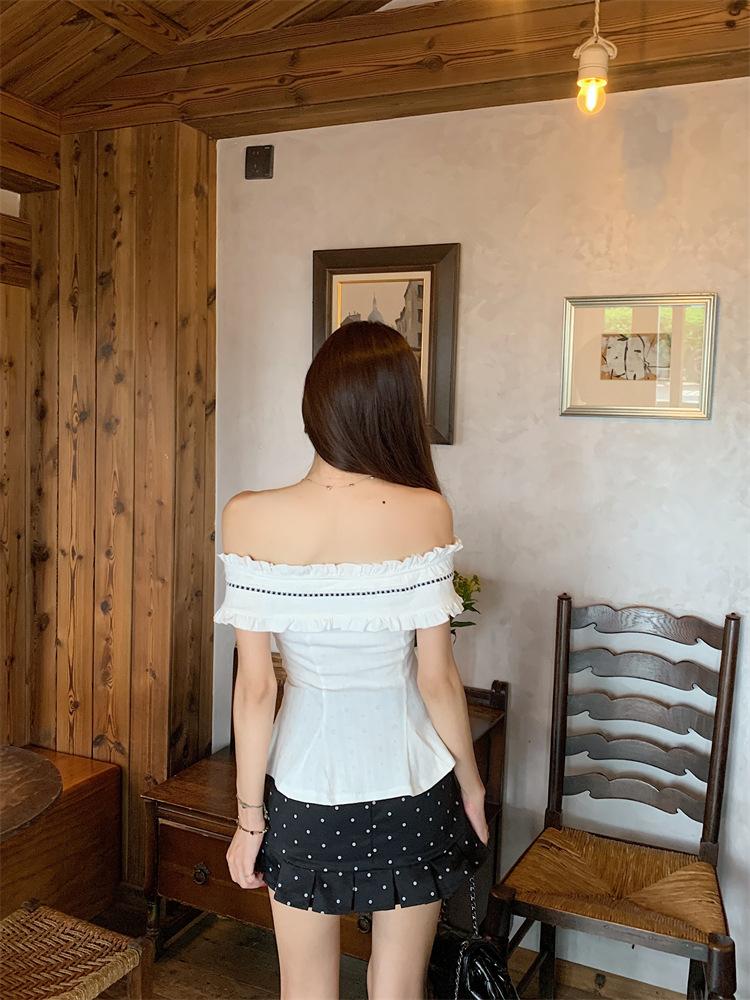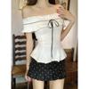 Foto Real de Verano Romántico Francés Hombro Descubierto Un Hombro Diseño Perezoso Top + Traje Casual de Falda de Lunares