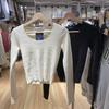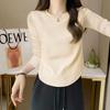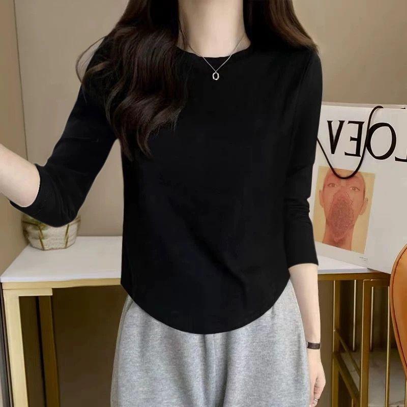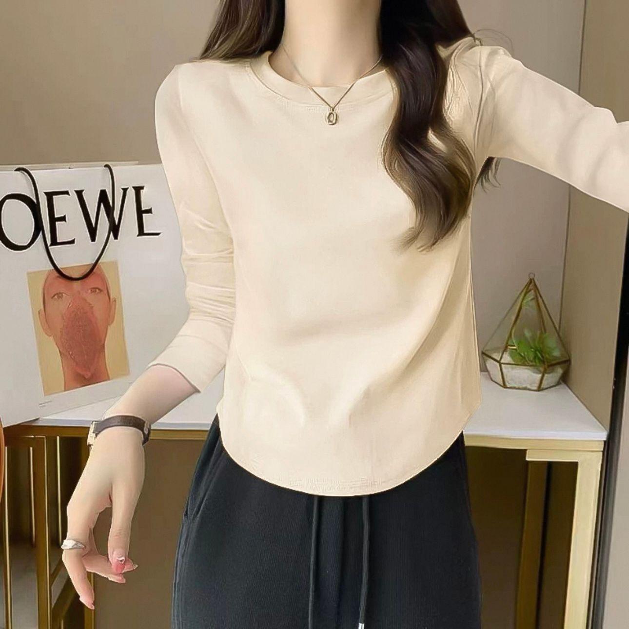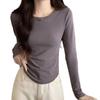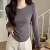 40 algodón canalé espalda bolsa cuello [92 algodón 8 spandex] camiseta de algodón de manga larga para mujer otoño e invierno con capa base ligera
