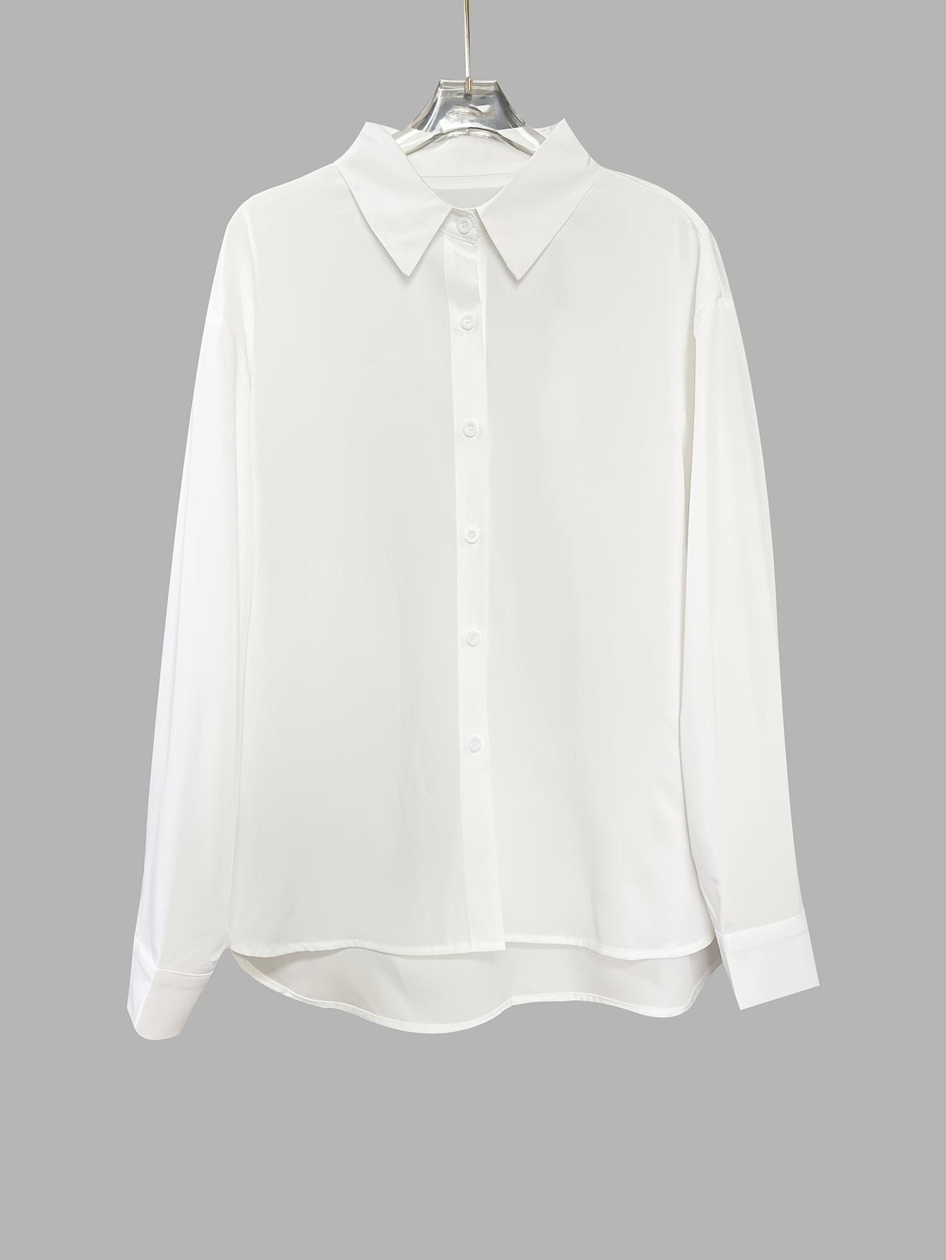 Ropa Europea y Americana Transfronteriza 2025 Amazon Estación Independiente Casual Blusa Vacacional de Manga Larga con Botones de Color Puro para Mujer
