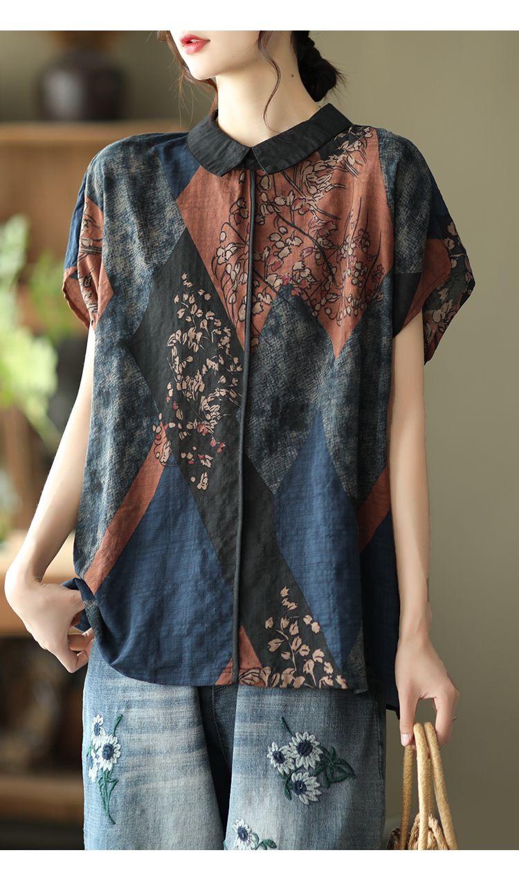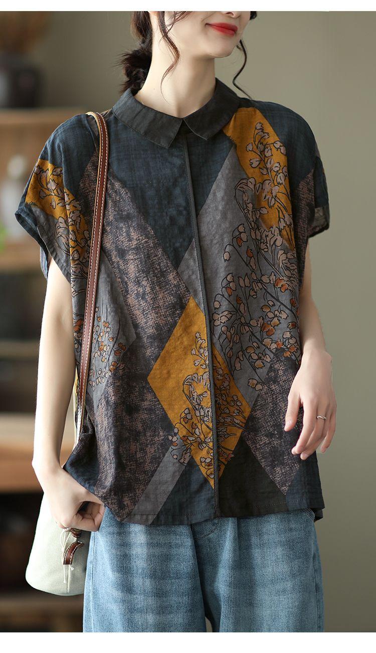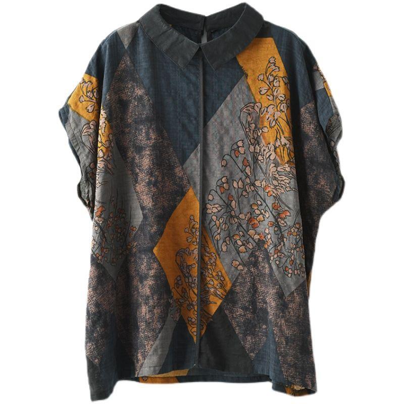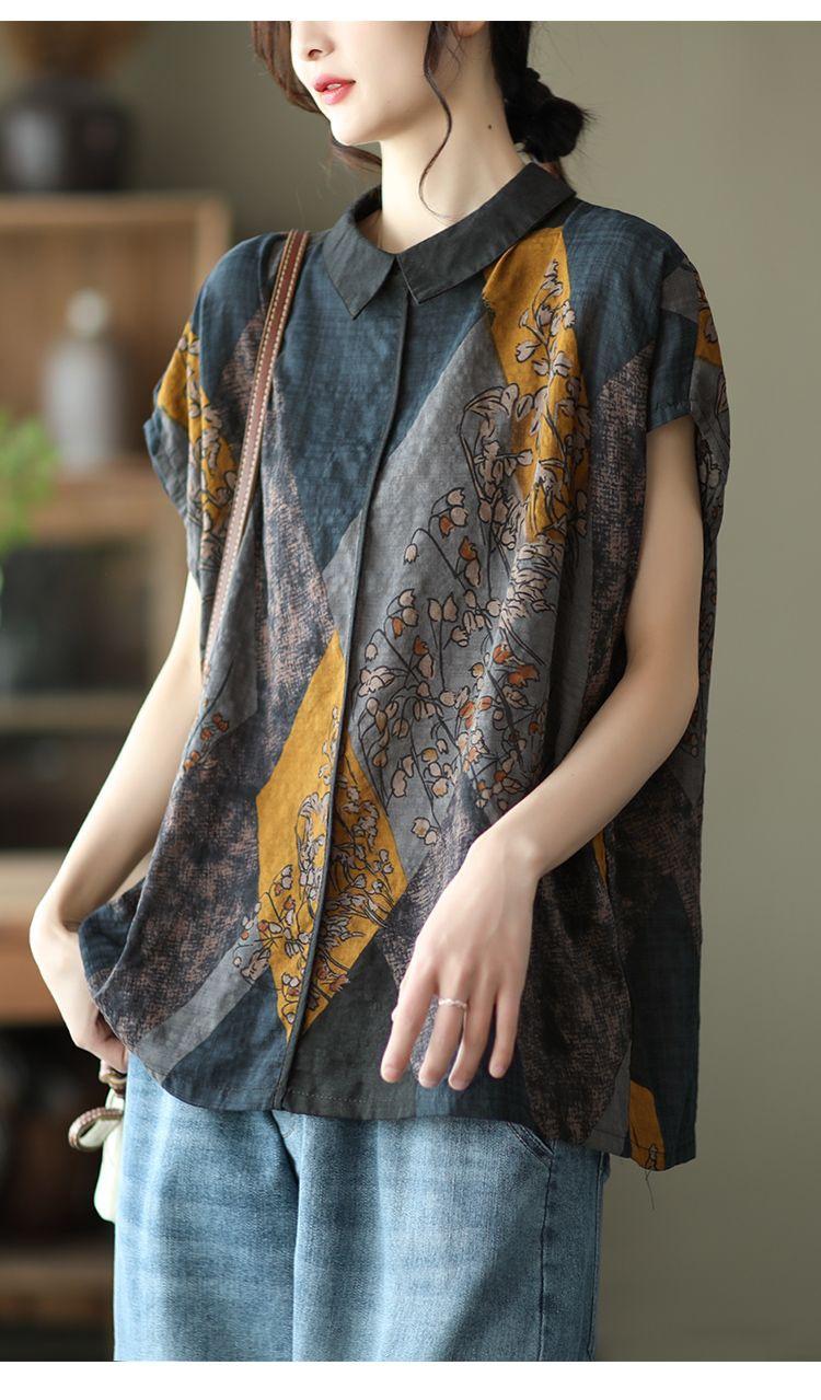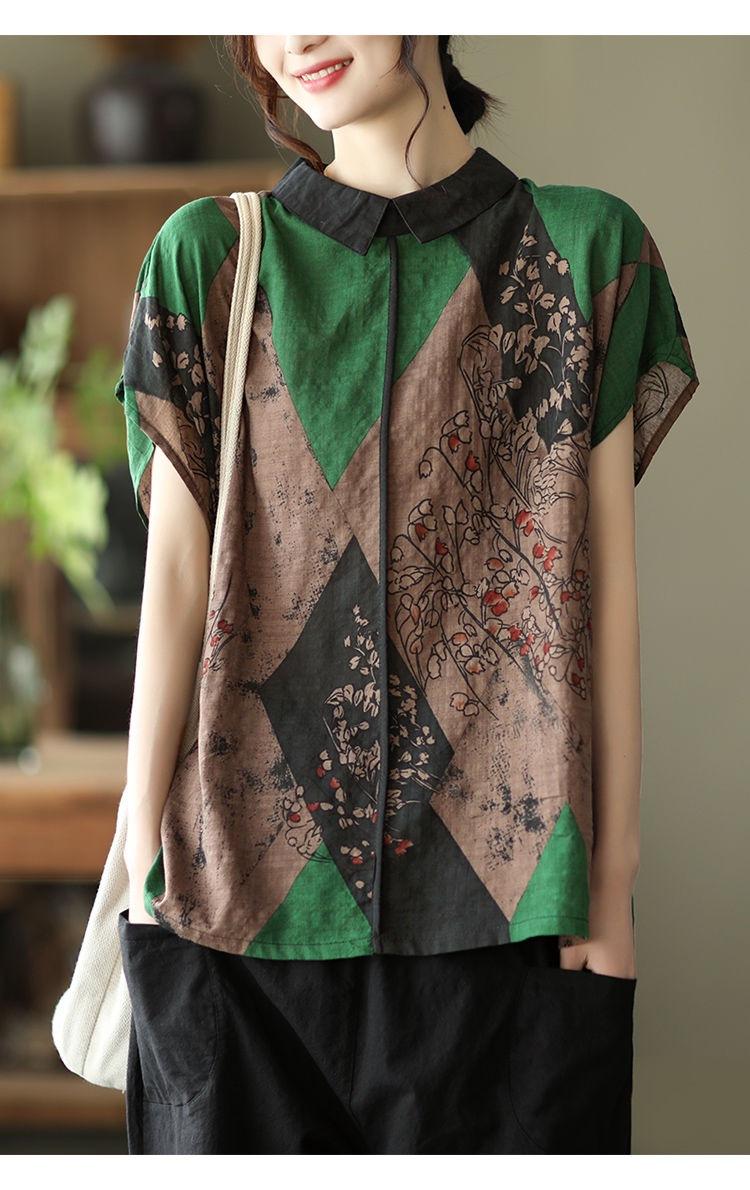 2025 Nuevas Camisas Estampadas de Verano para Mujer de Talla Grande, Tops Casuales Holgados Adelgazantes, Camisas de Manga Corta a la Moda