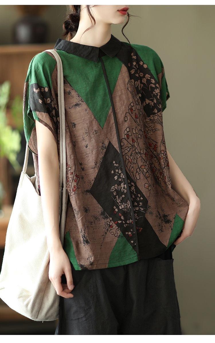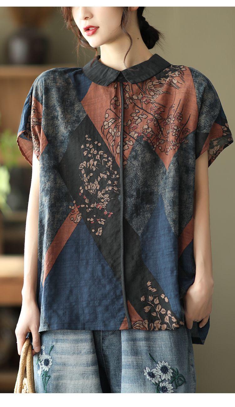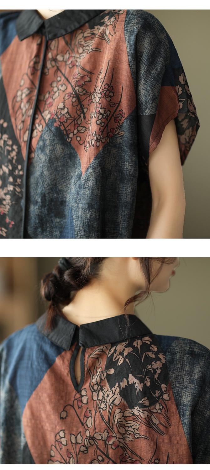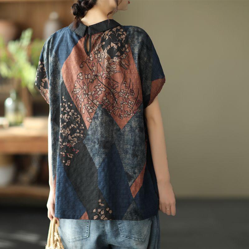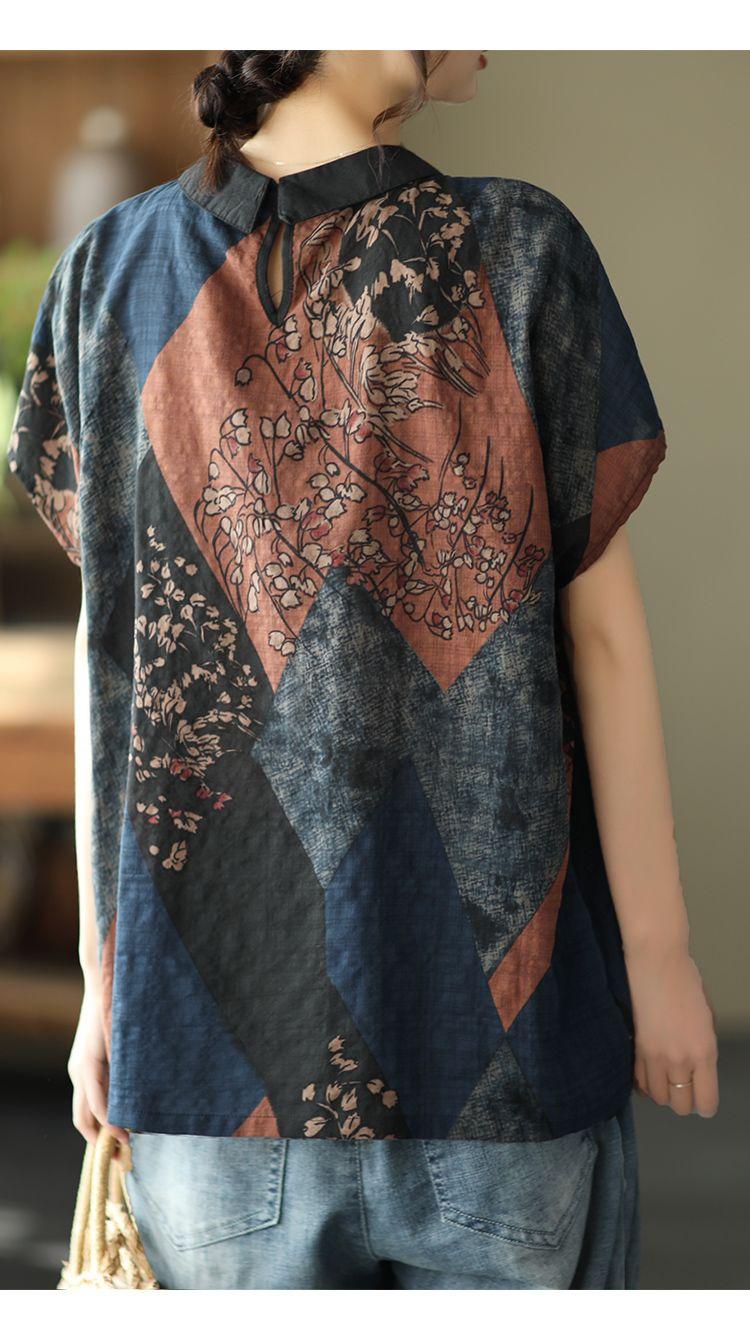 2025 Nuevas Camisas Estampadas de Verano para Mujer de Talla Grande, Tops Casuales Holgados Adelgazantes, Camisas de Manga Corta a la Moda