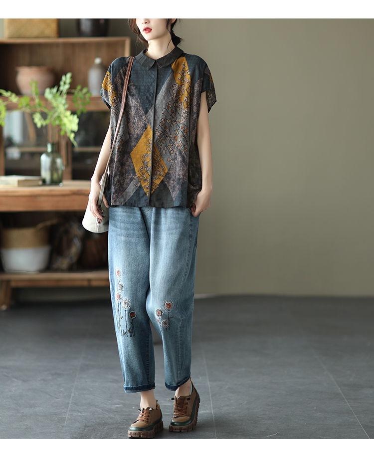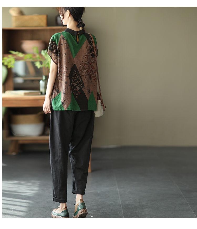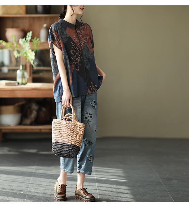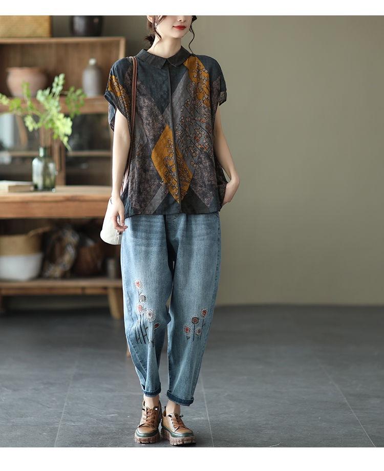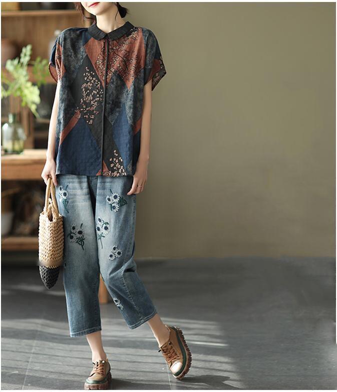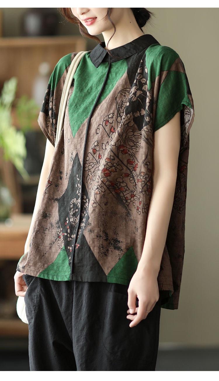 2025 Nuevas Camisas Estampadas de Verano para Mujer de Talla Grande, Tops Casuales Holgados Adelgazantes, Camisas de Manga Corta a la Moda