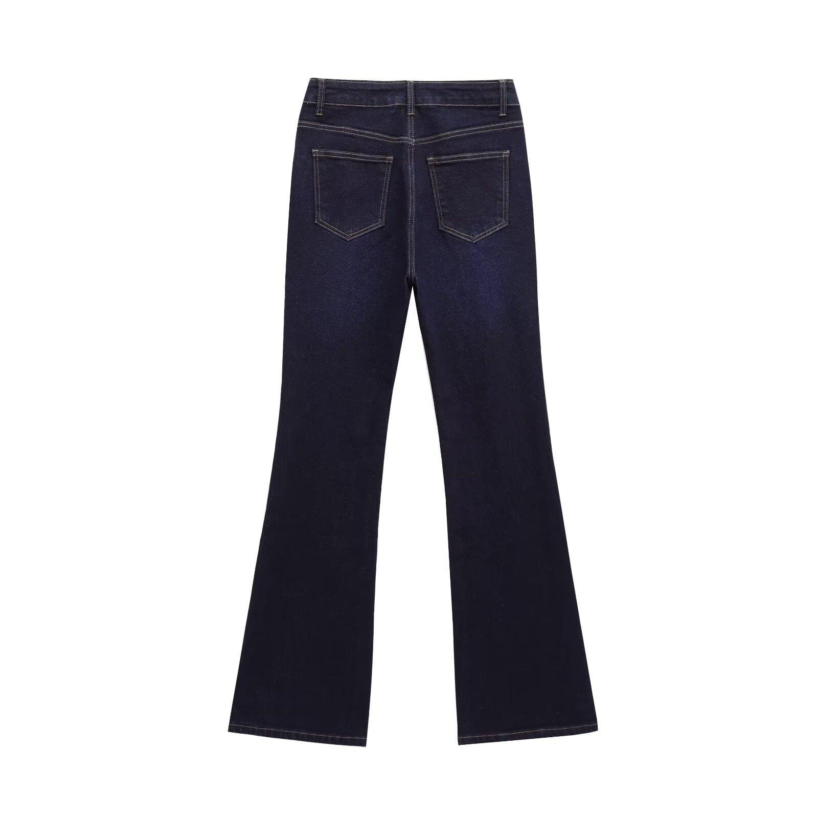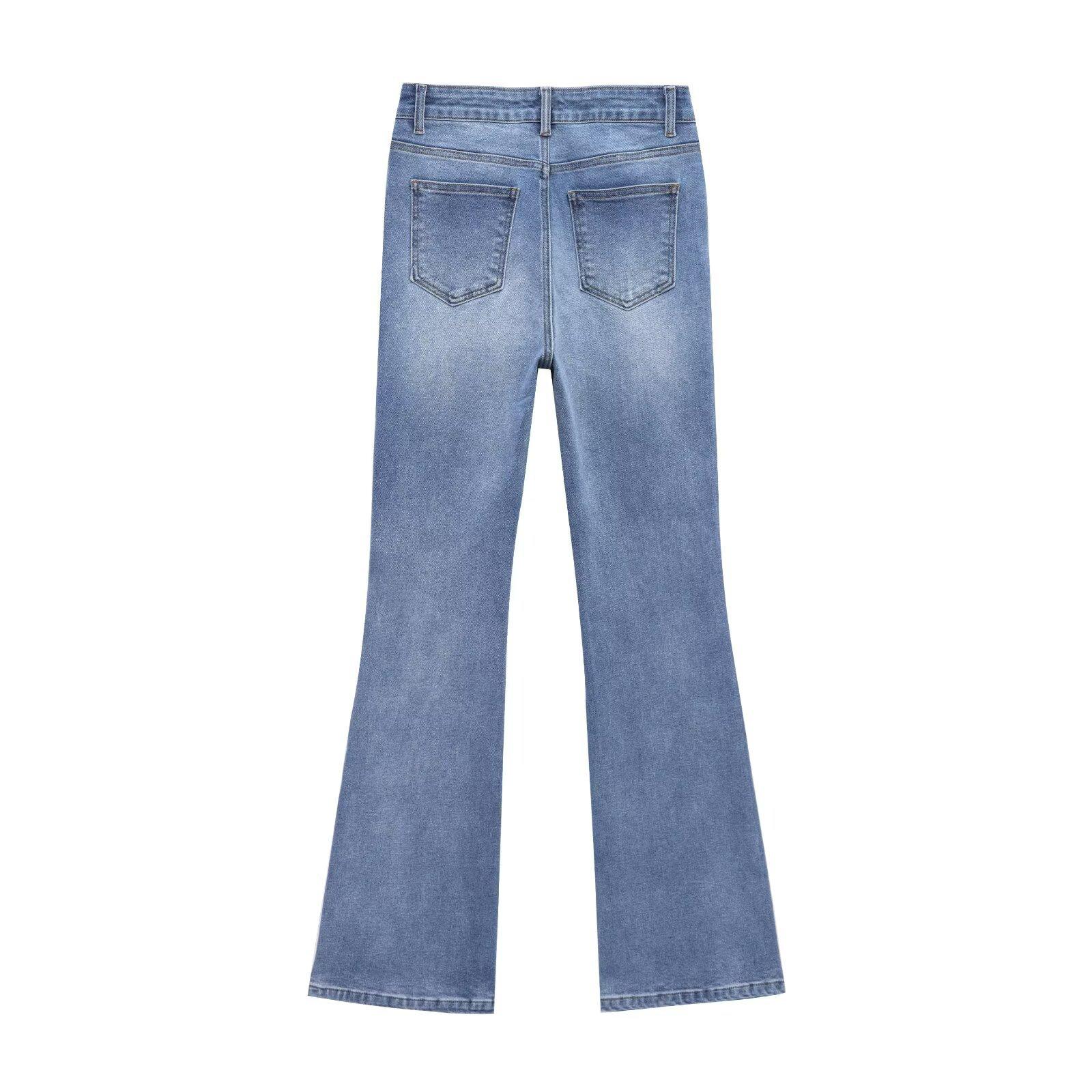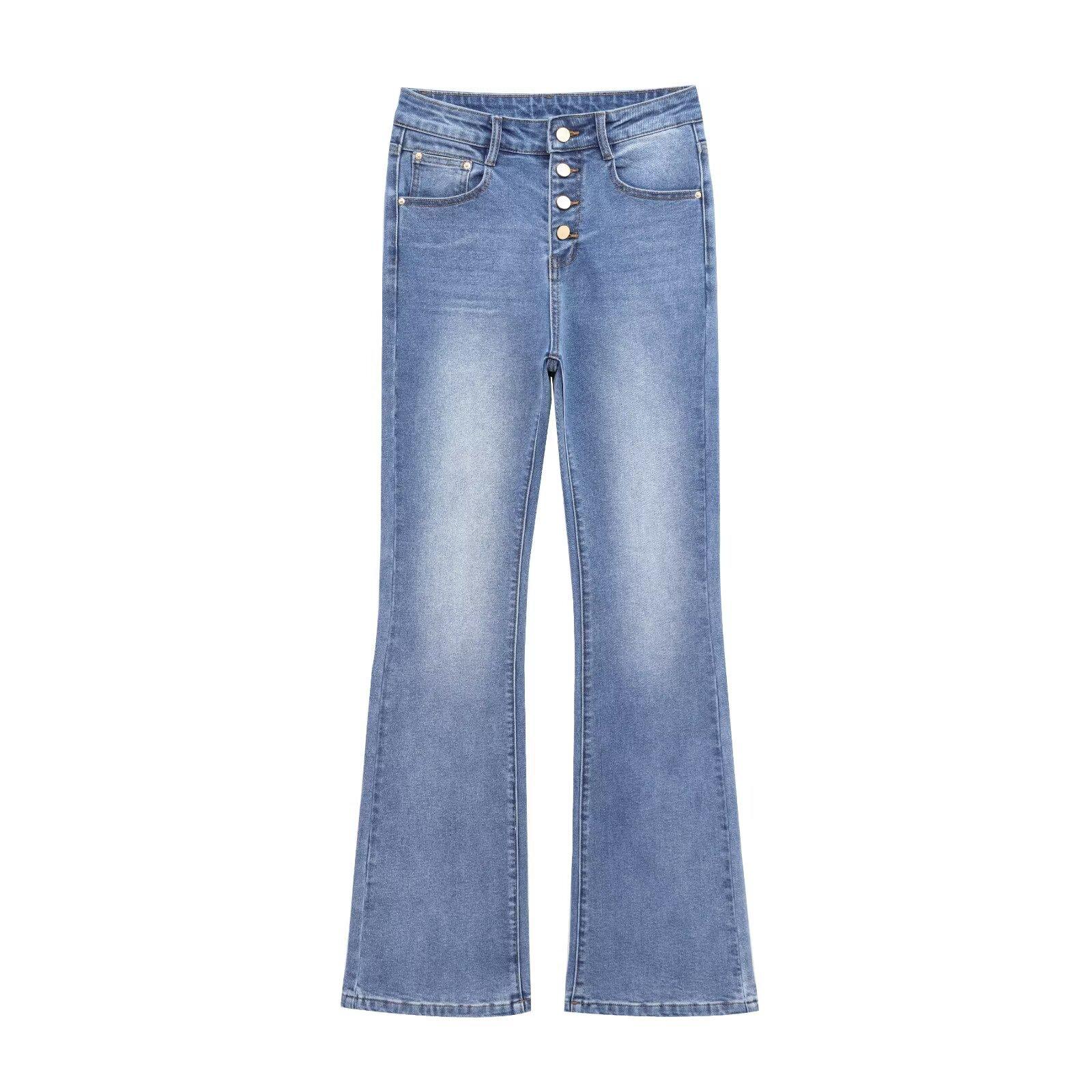 Comercio Exterior Estilo Europeo y Americano Moda Femenina Versátil Jeans Acampanados de Cintura Alta