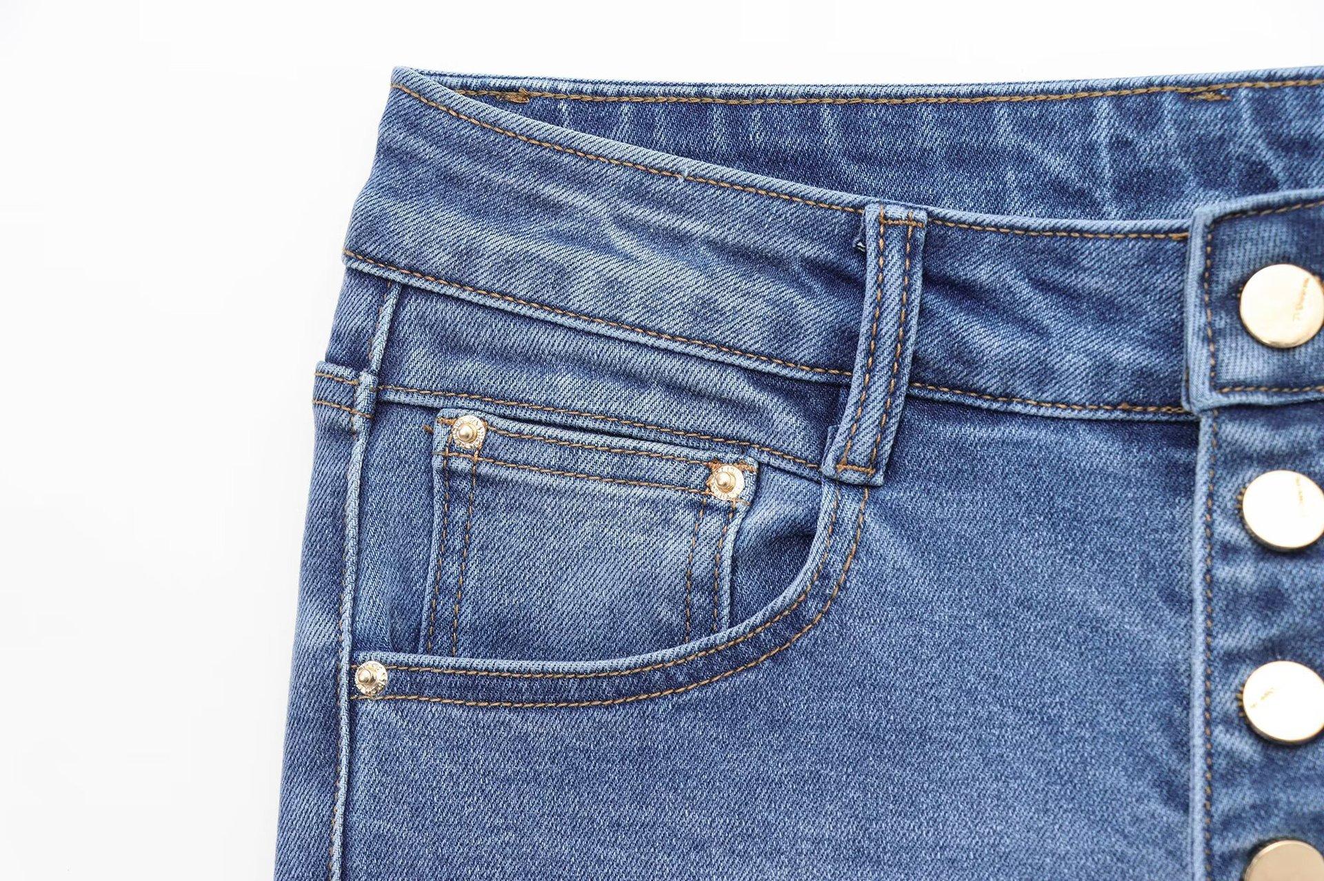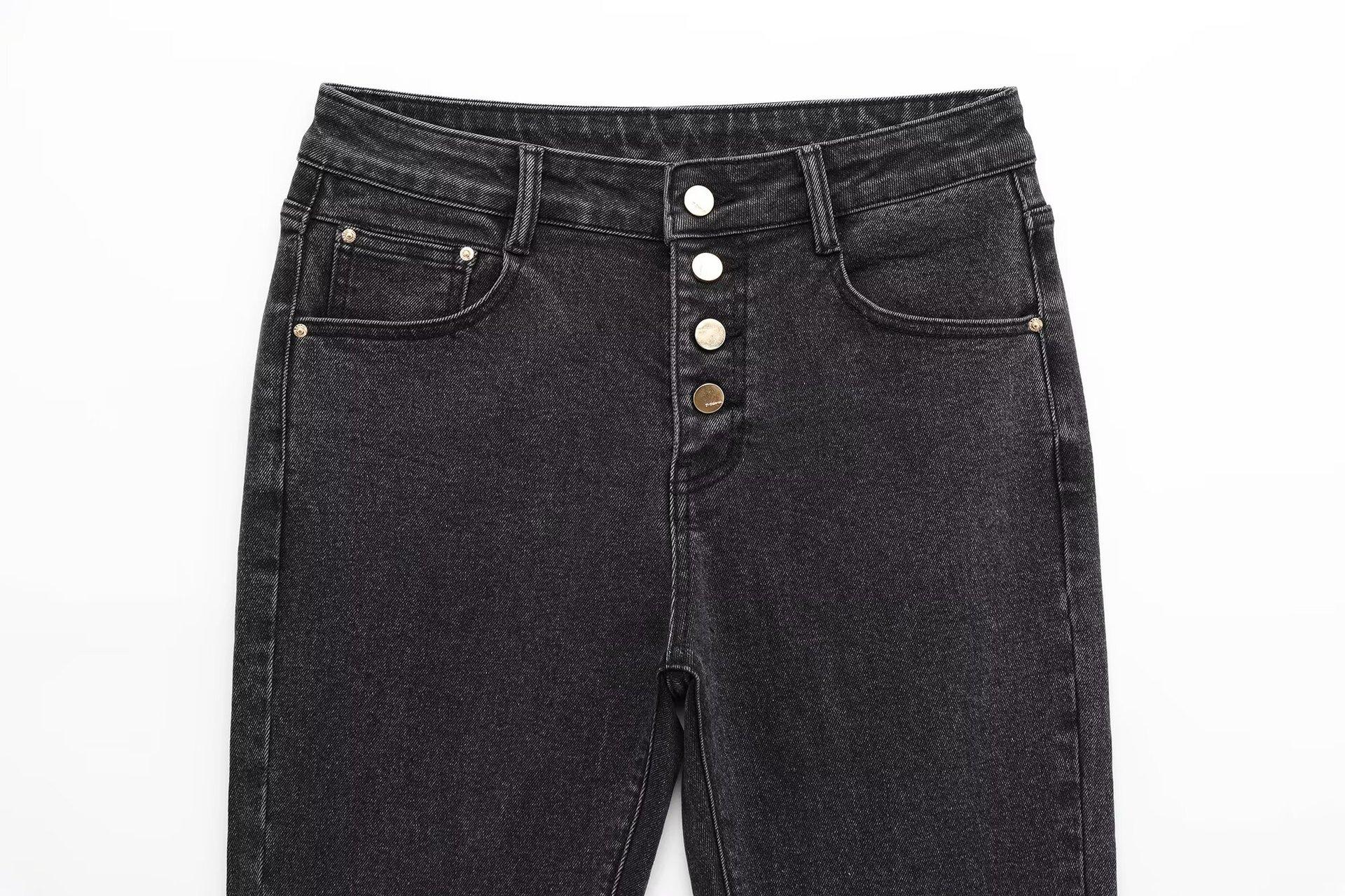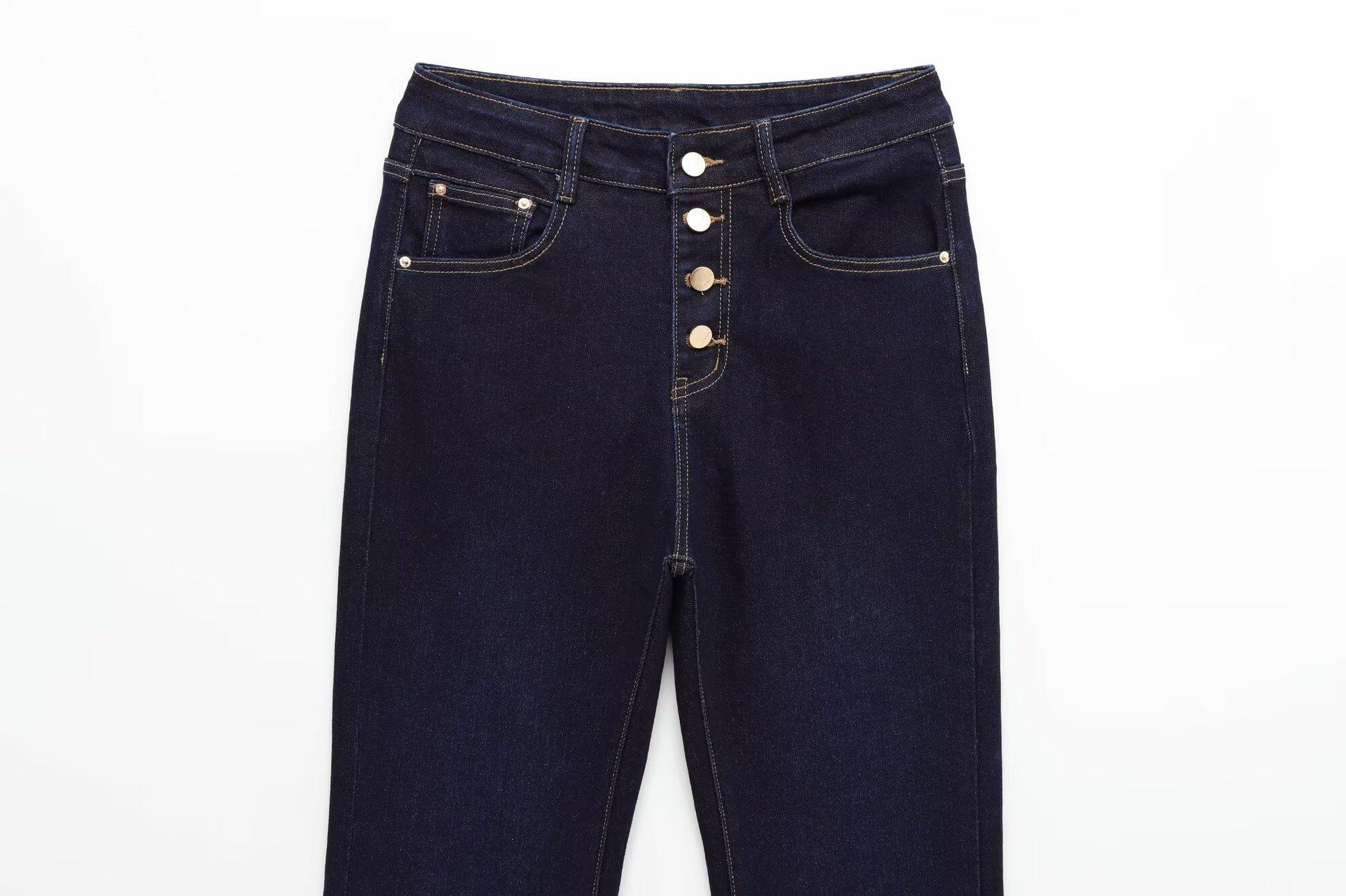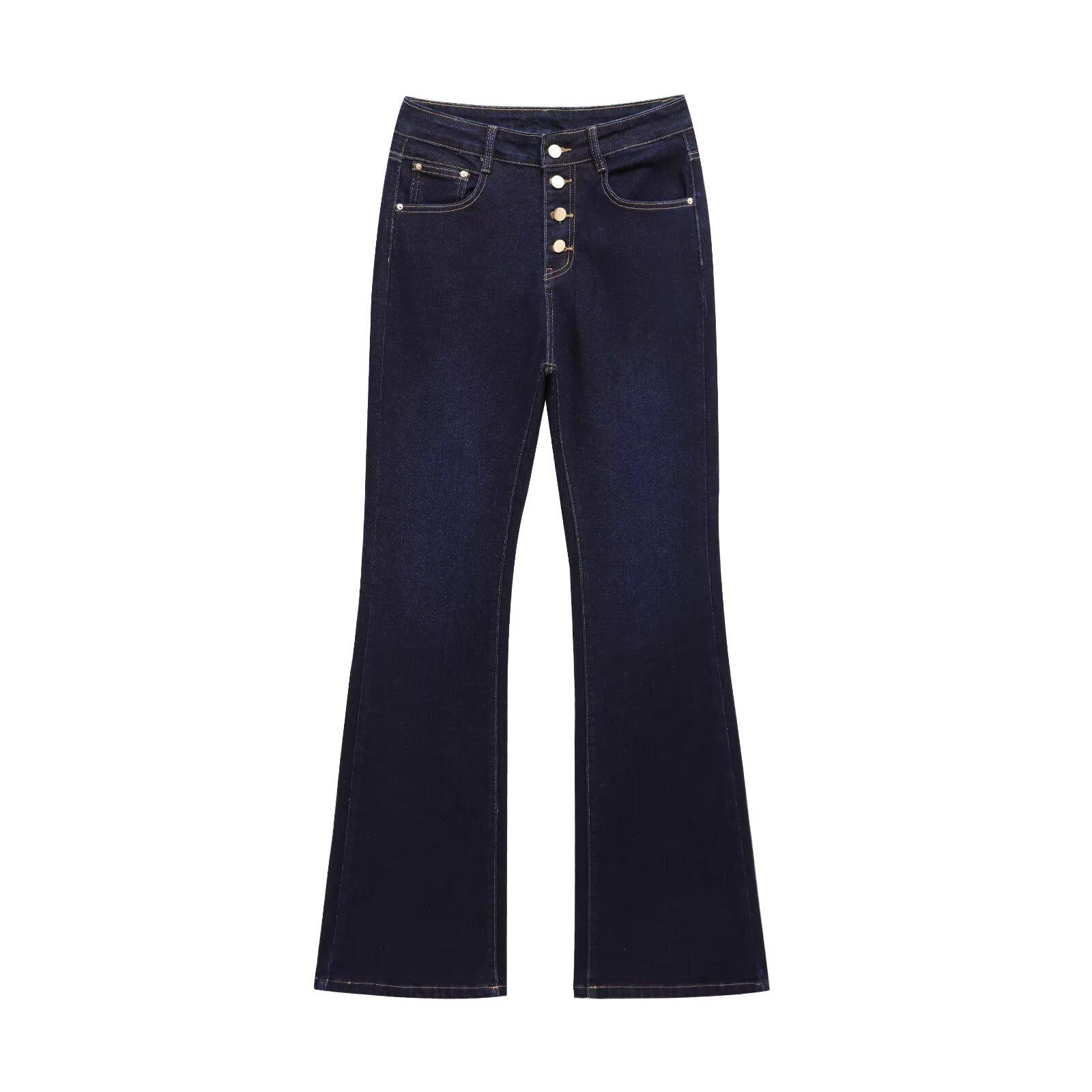 Comercio Exterior Estilo Europeo y Americano Moda Femenina Versátil Jeans Acampanados de Cintura Alta