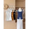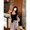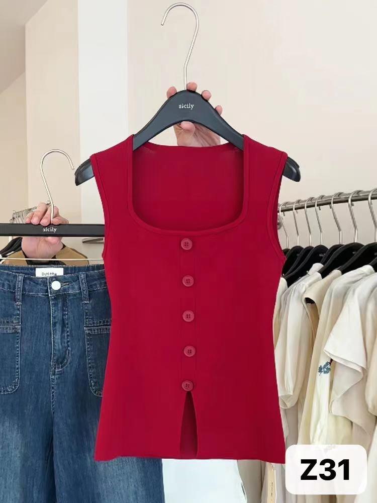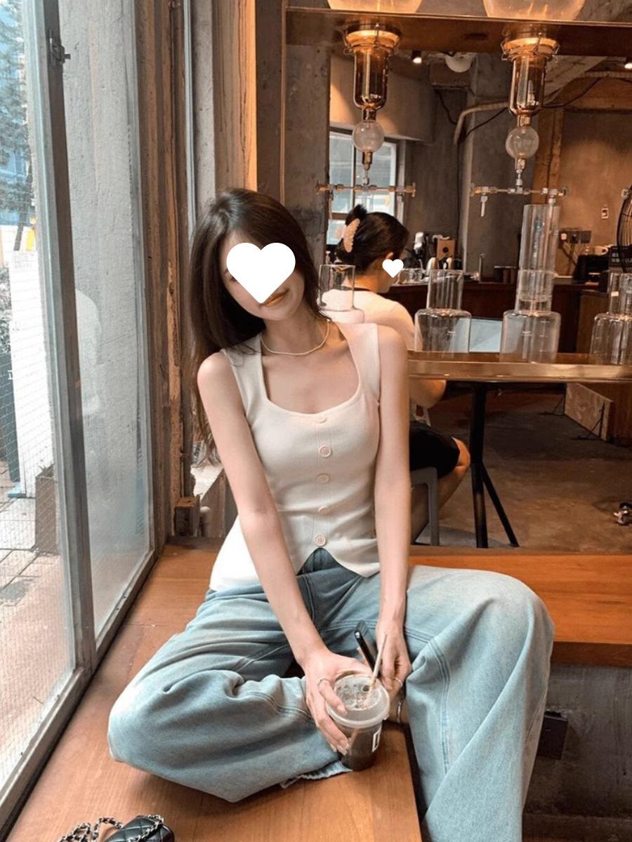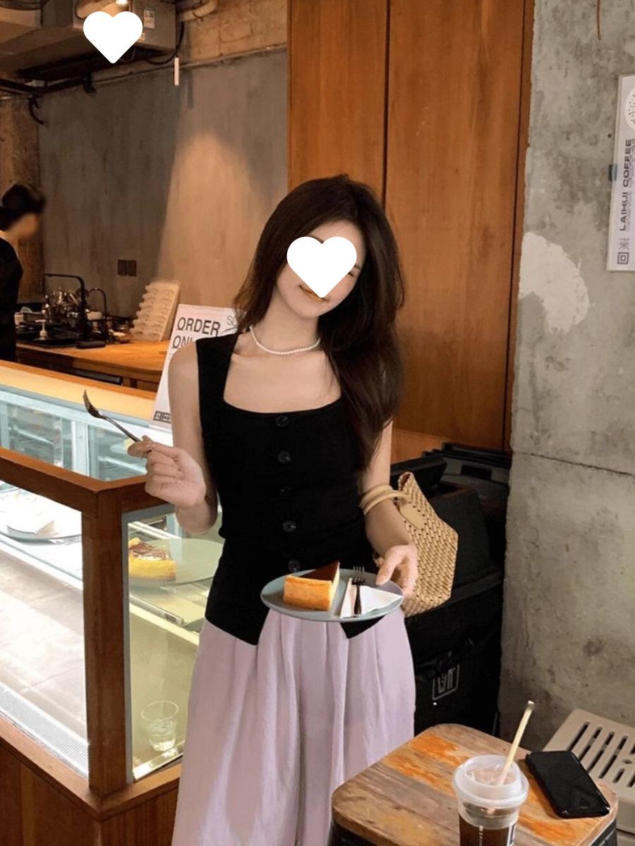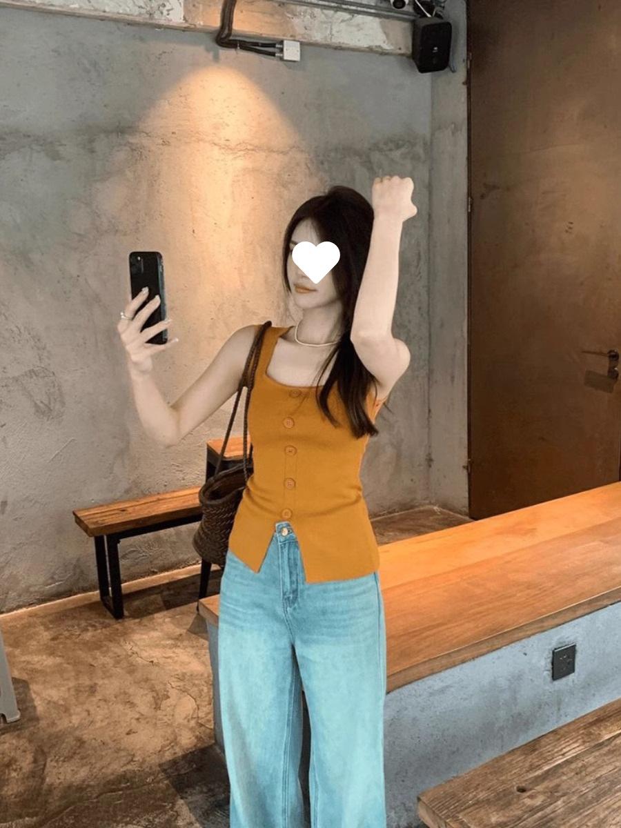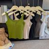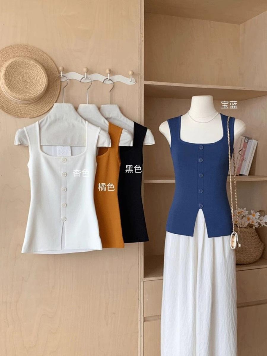Camisola de punto de cuello cuadrado de un solo botón para mujer, diseño de verano, corte ajustado, top sin mangas chic y hermoso