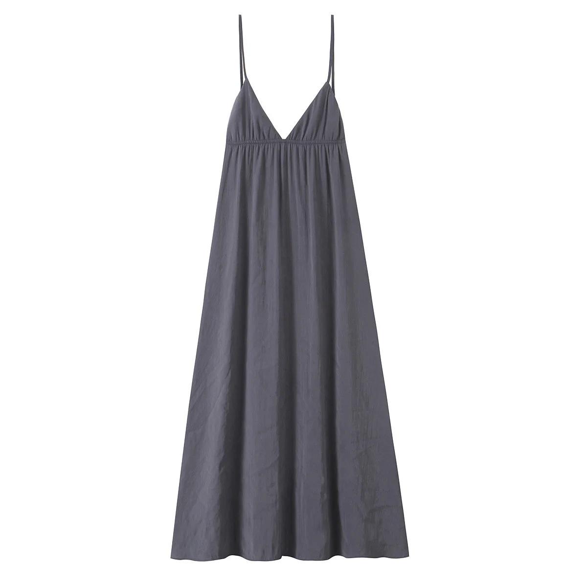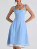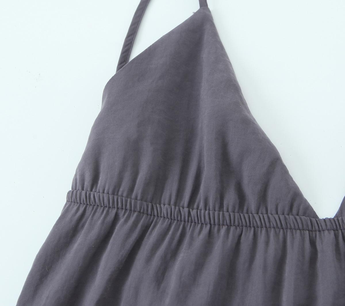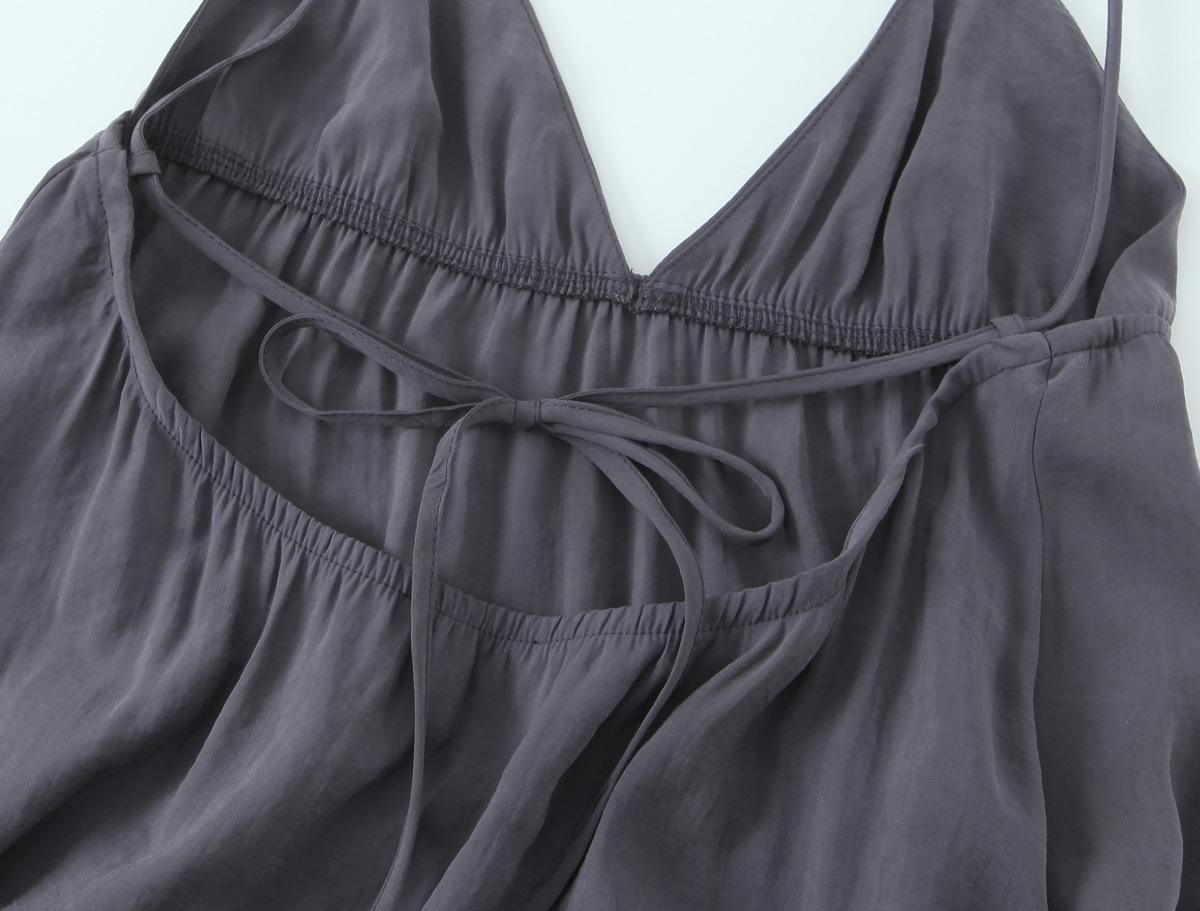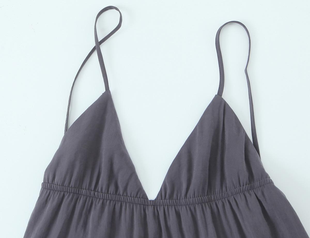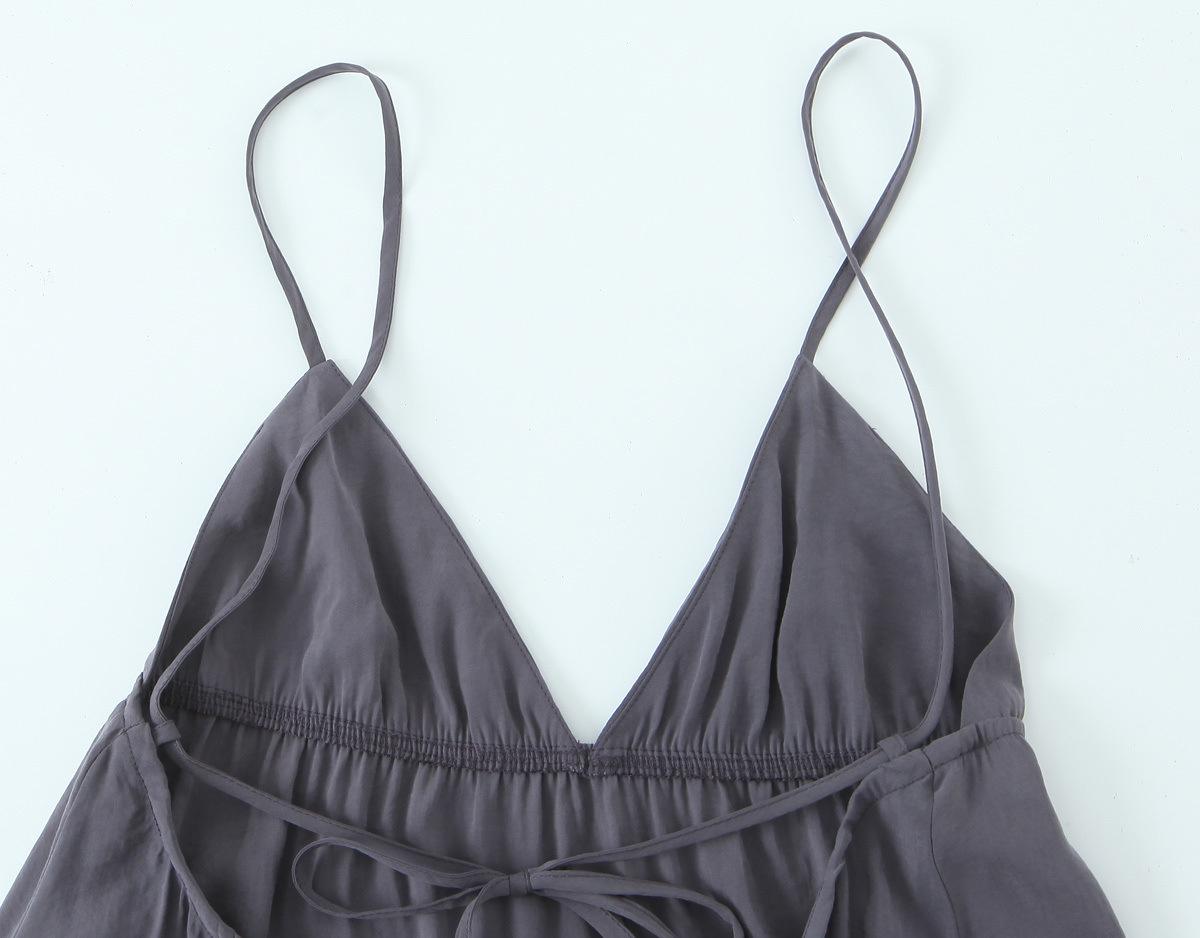 2025 Verano Nuevo Transfronterizo Moda Europea y Americana Tirantes Cuello en V Color Puro Versátil Espalda Descubierta Vestido Sexy Ropa de Mujer