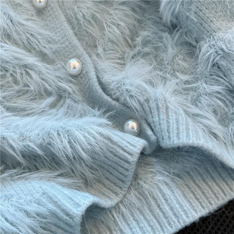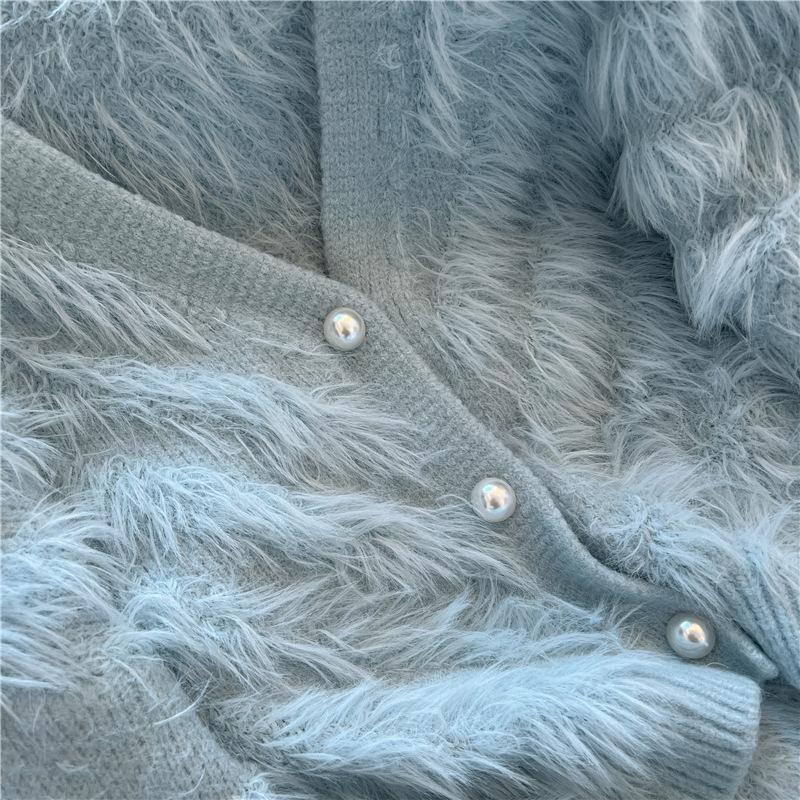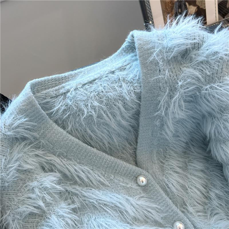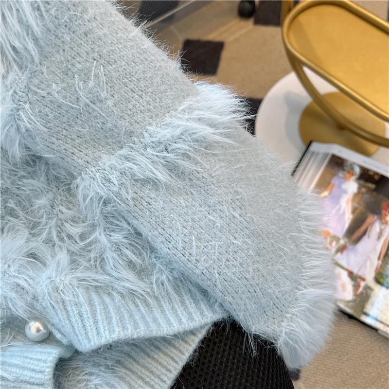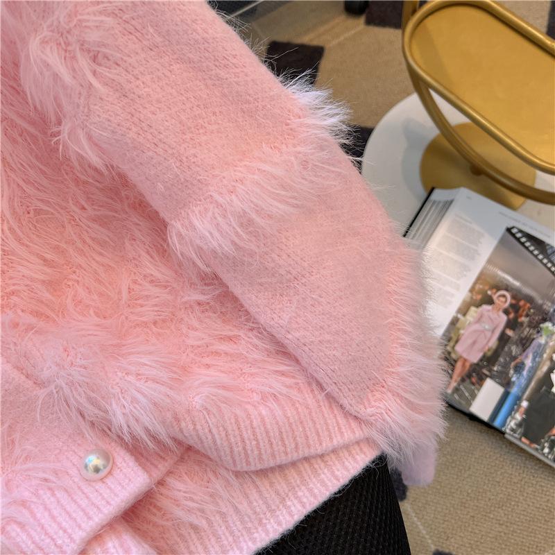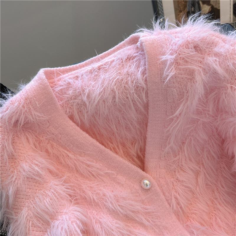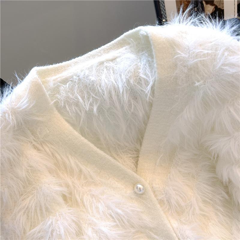 2023 otoño e invierno Nuevo cárdigan de punto suave glutinoso visón de terciopelo sintético de piel sintética corto cuello en V versátil suéter de estilo suave para mujer
